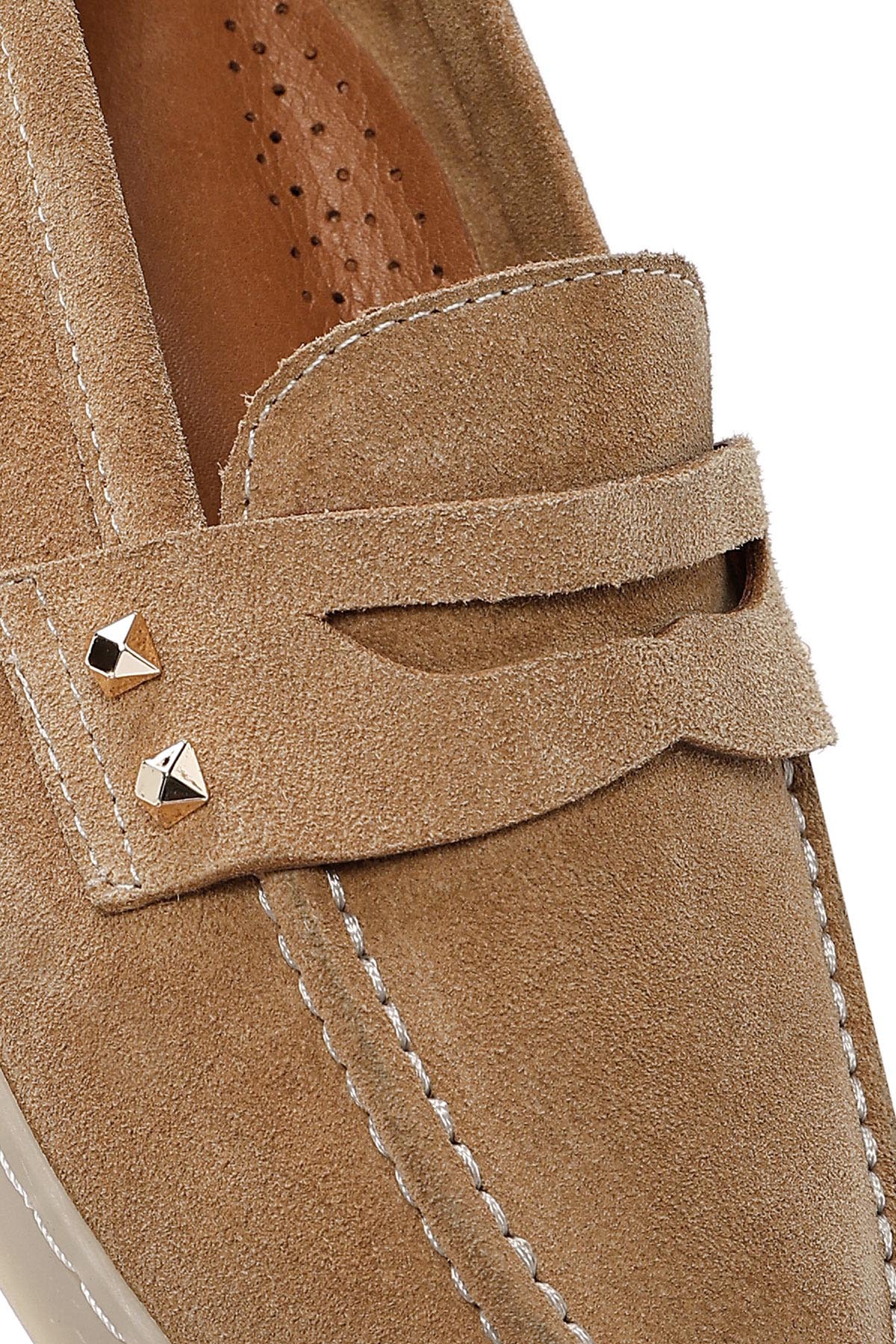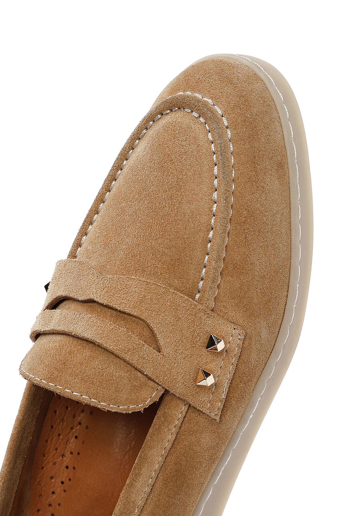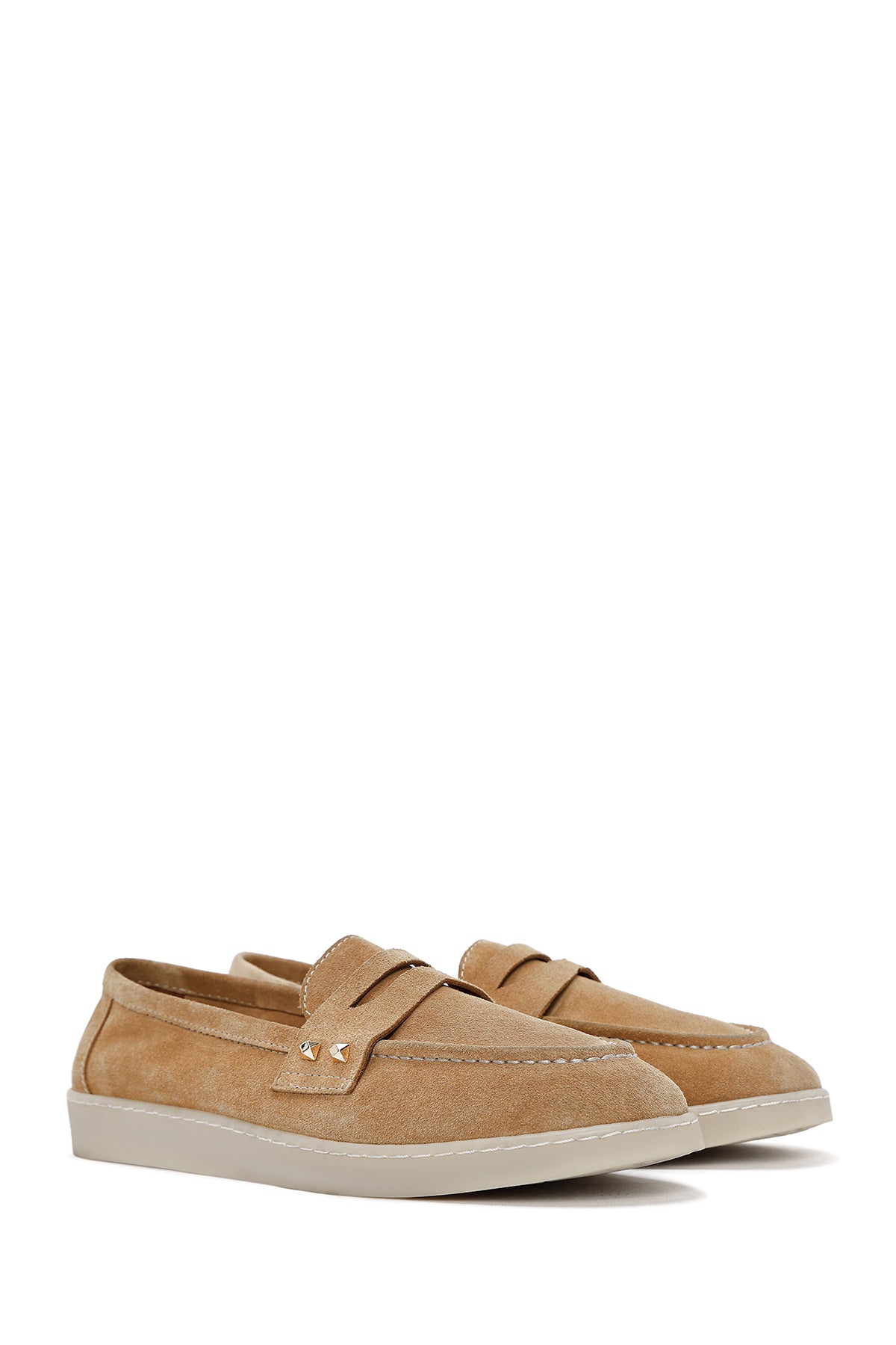 Kadın Bej Taş Detaylı Süet Deri Loafer