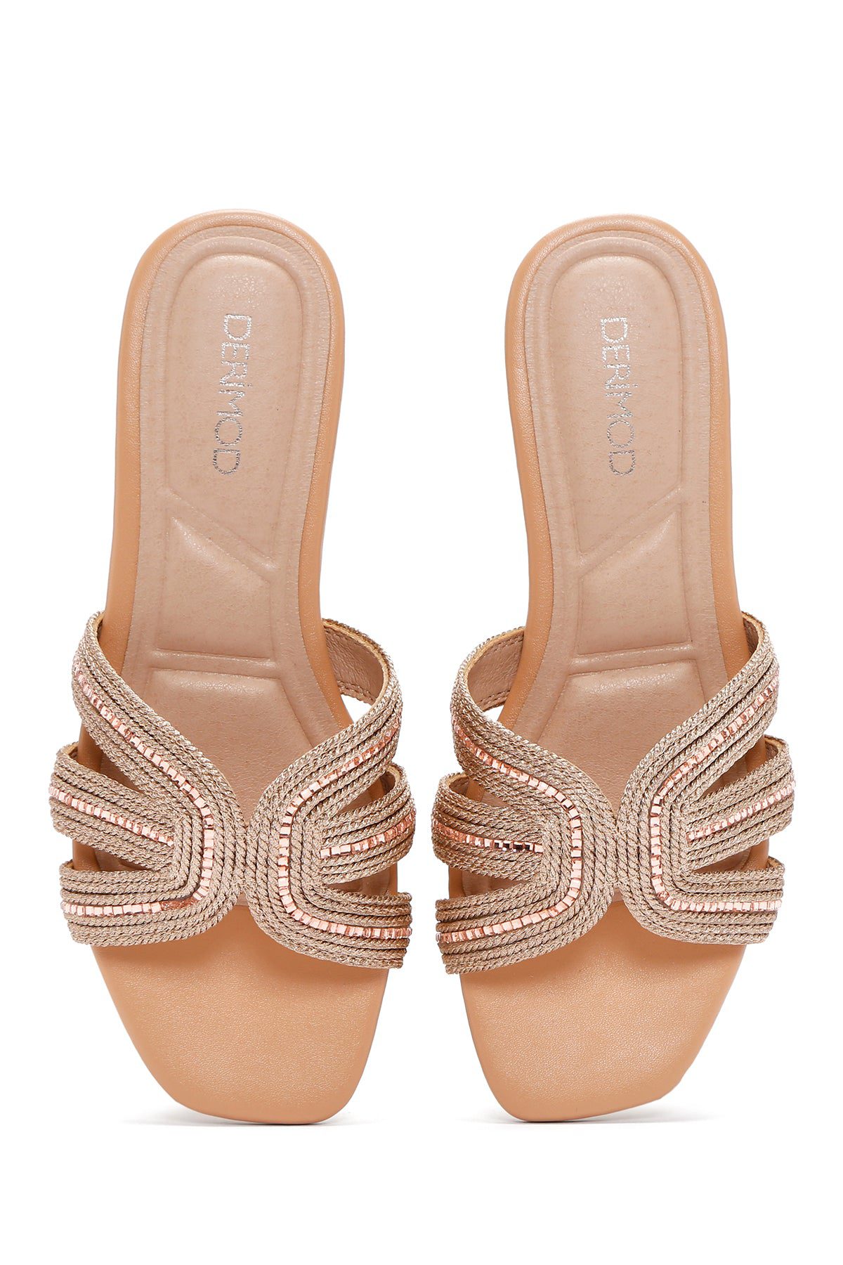 دمپایی زنانه بژ نگیندار دری مد