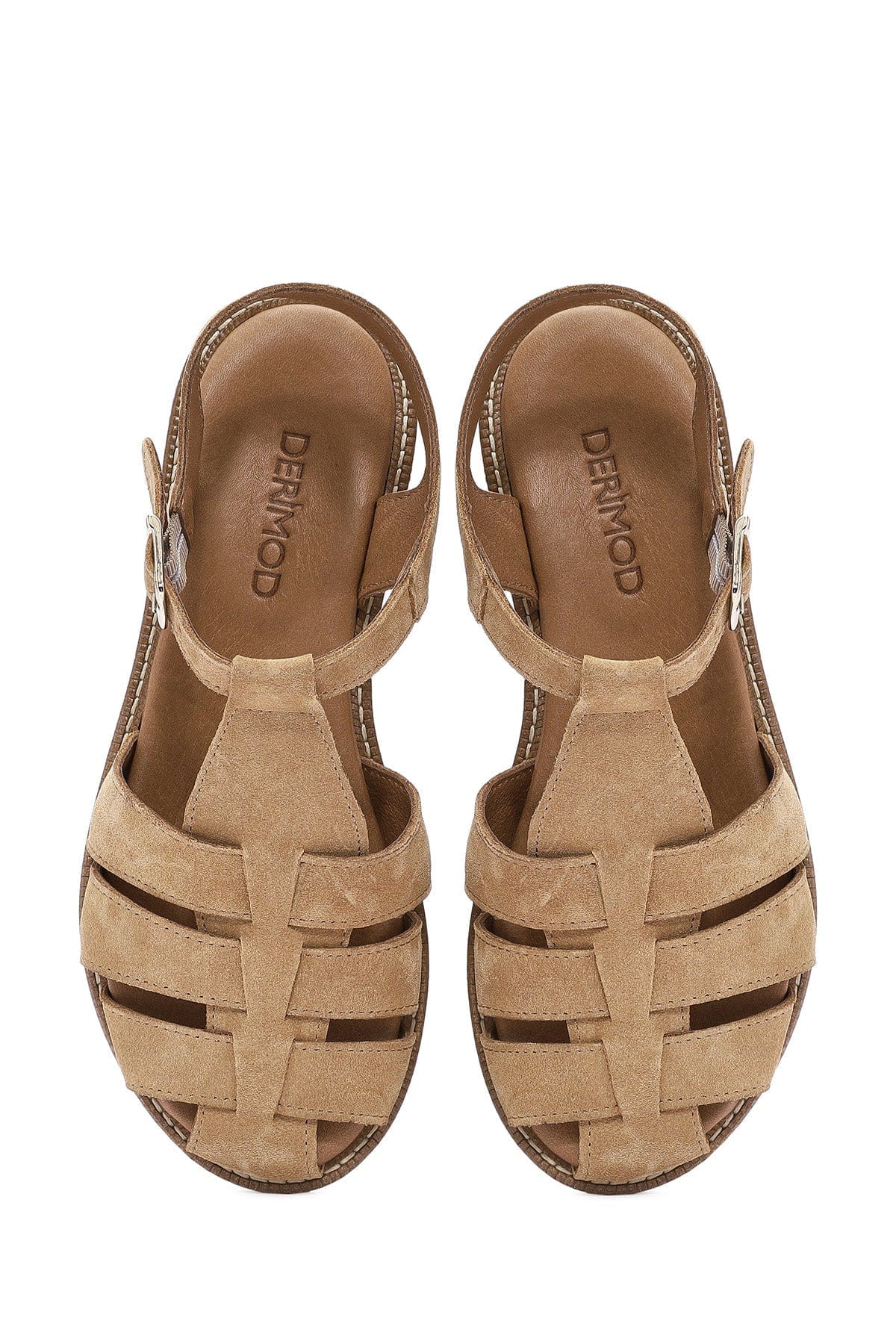 Kadın Bej Bilekten Tokalı Süet Deri Sandalet