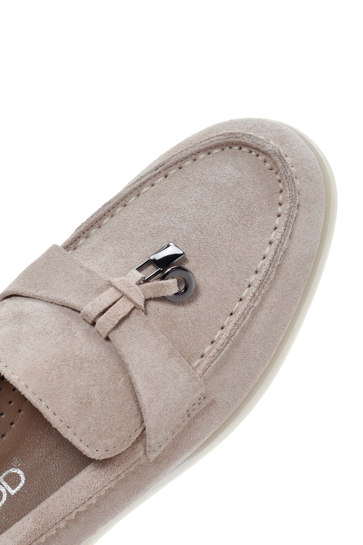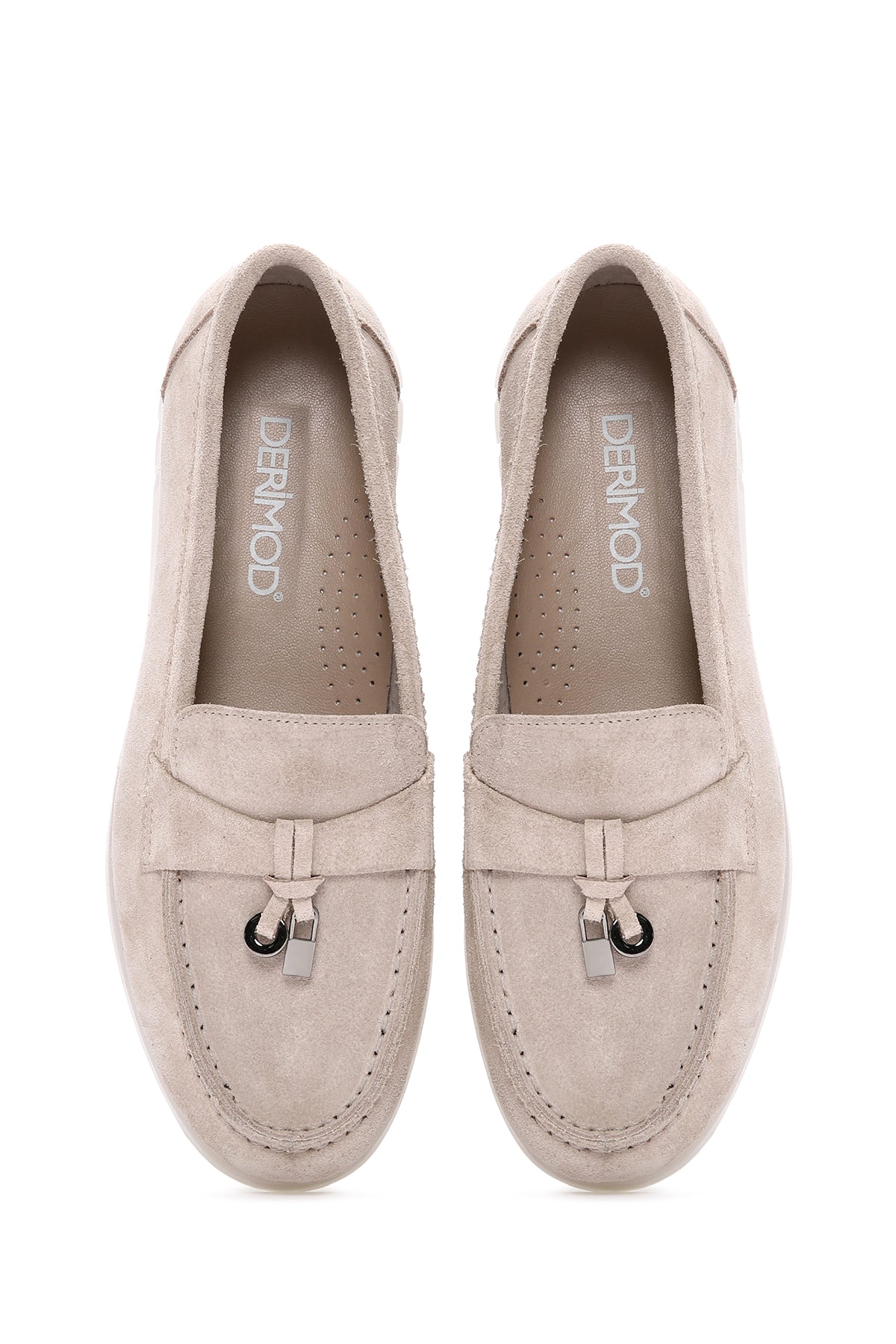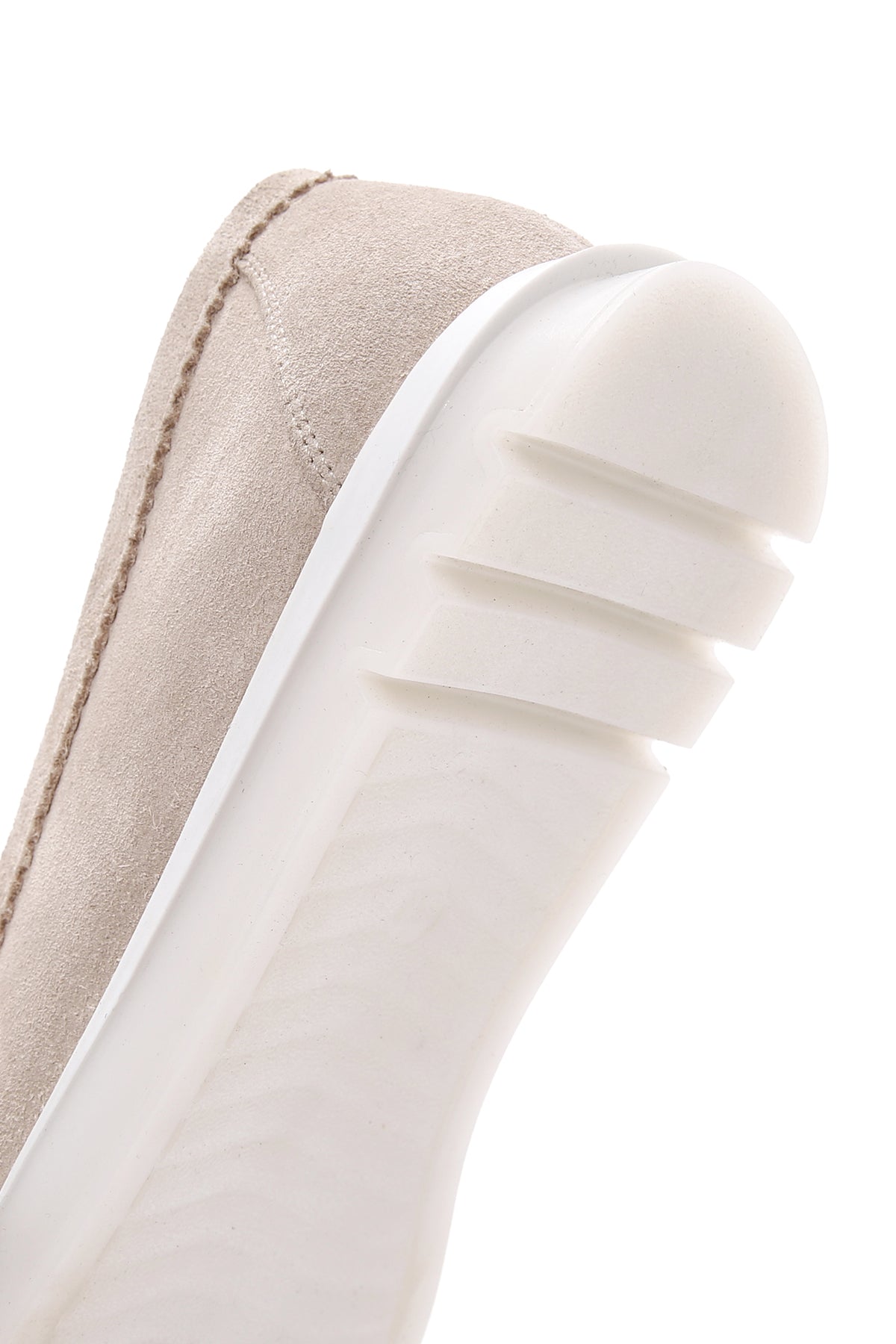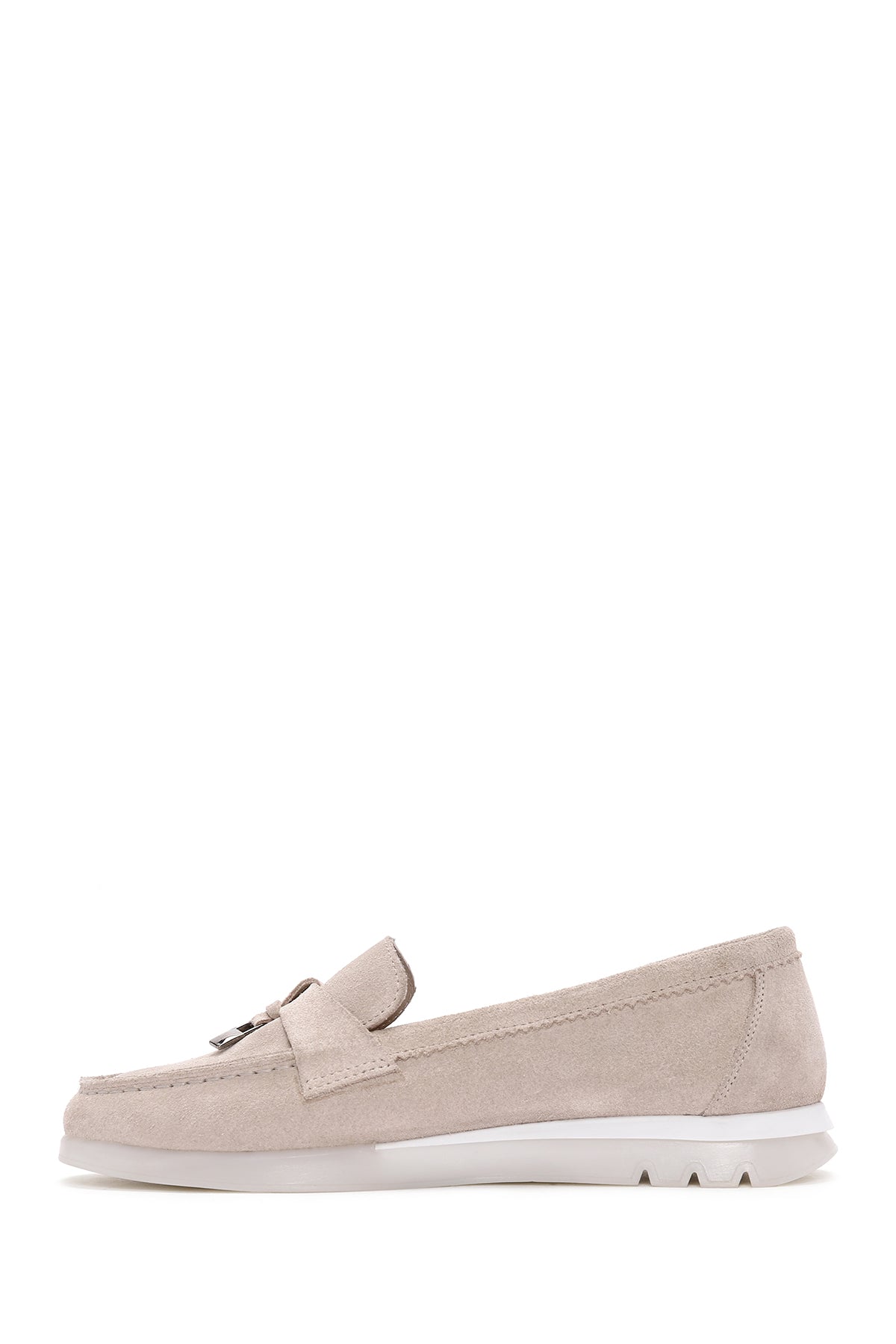 Kadın Bej Tokalı Süet Deri Comfort Loafer