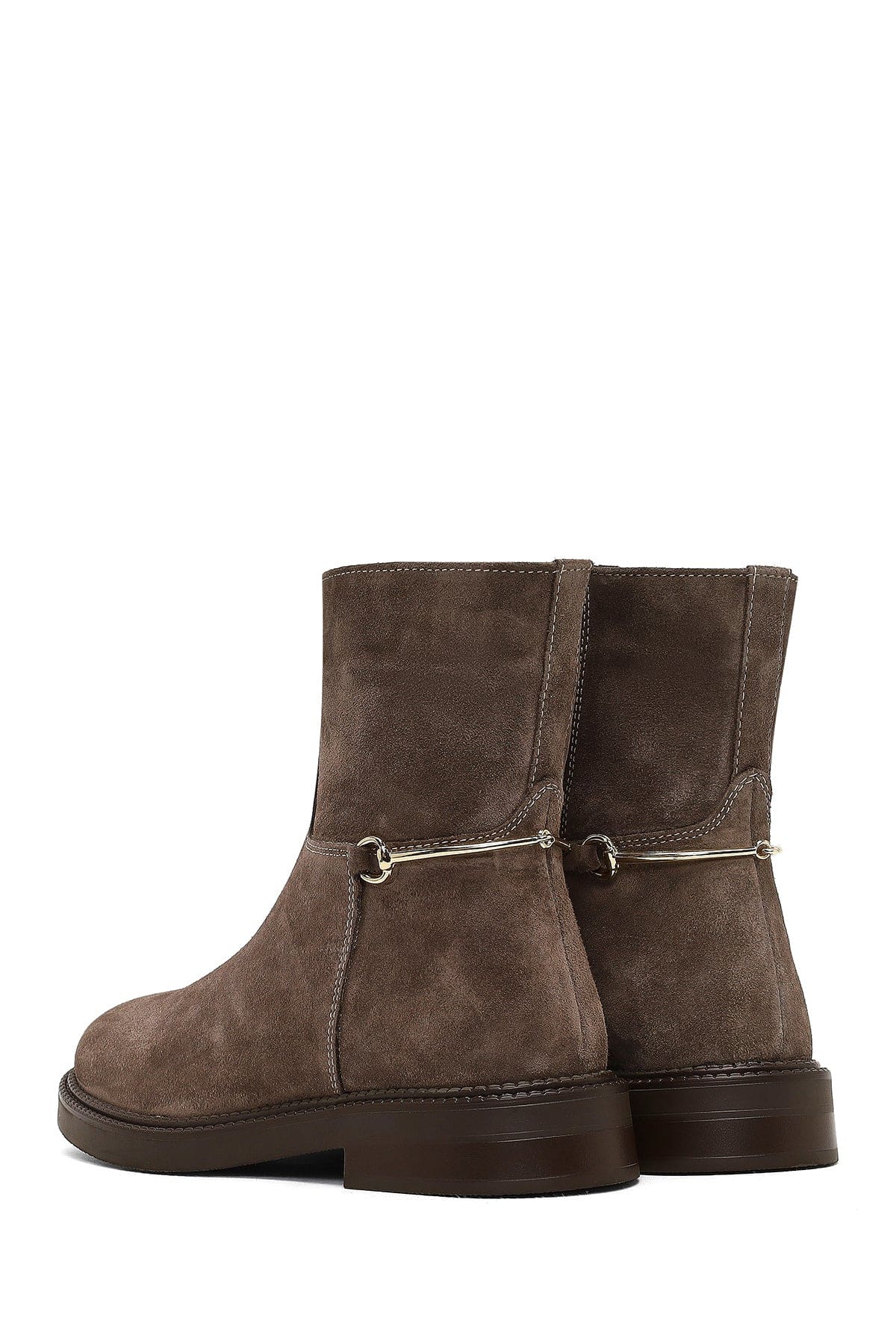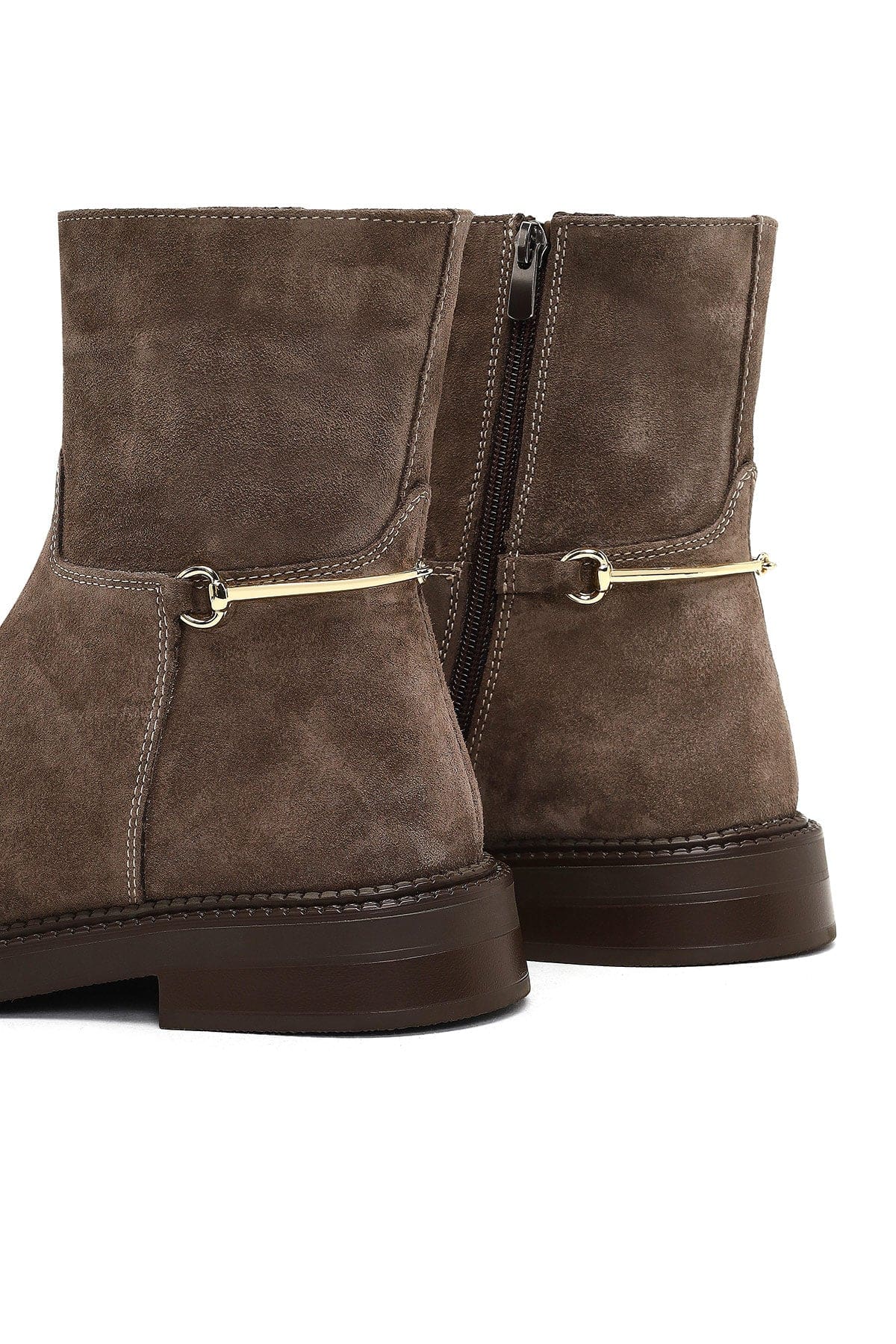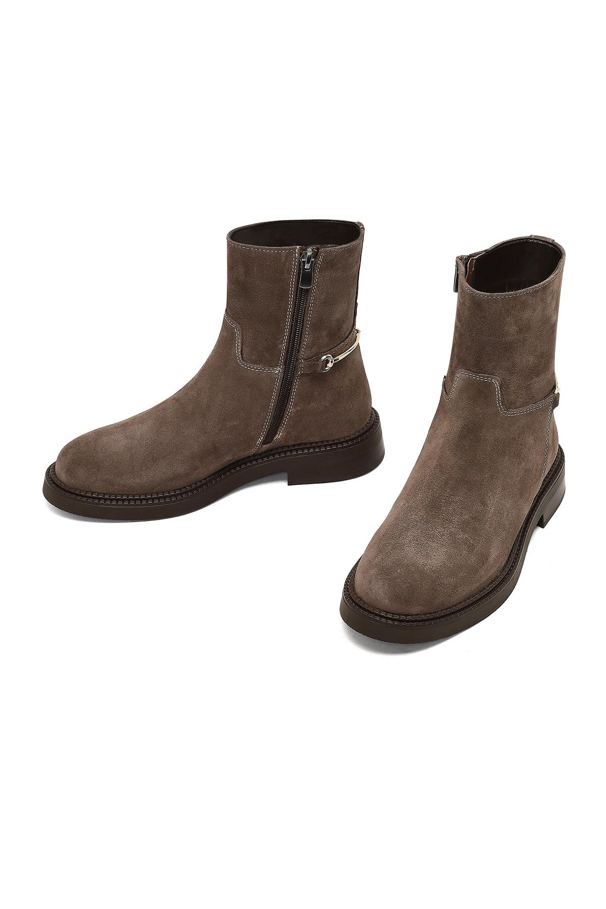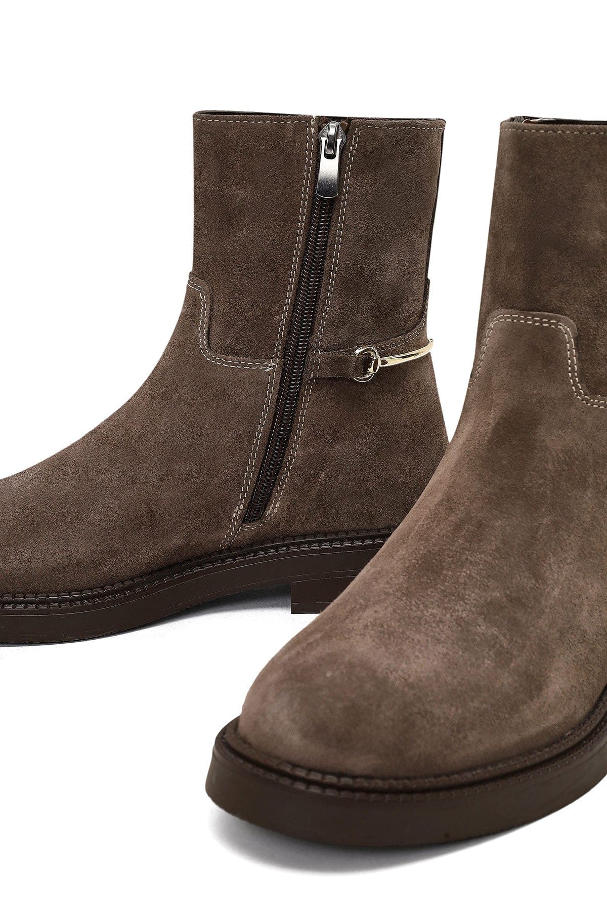 Kadın Vizon Fermuarlı Tokalı Süet Deri Bot