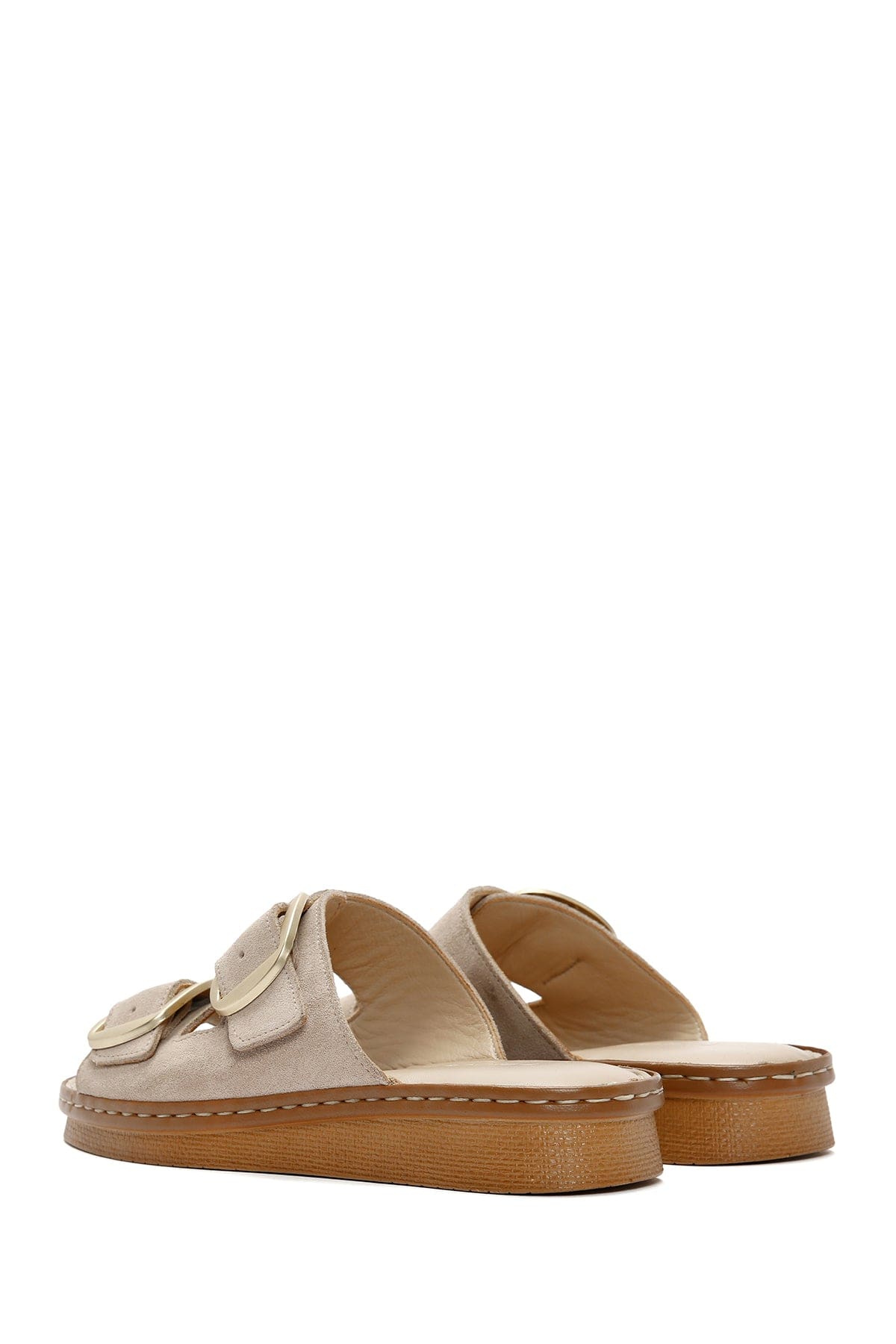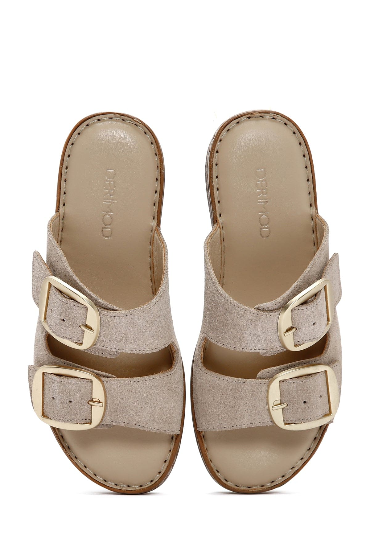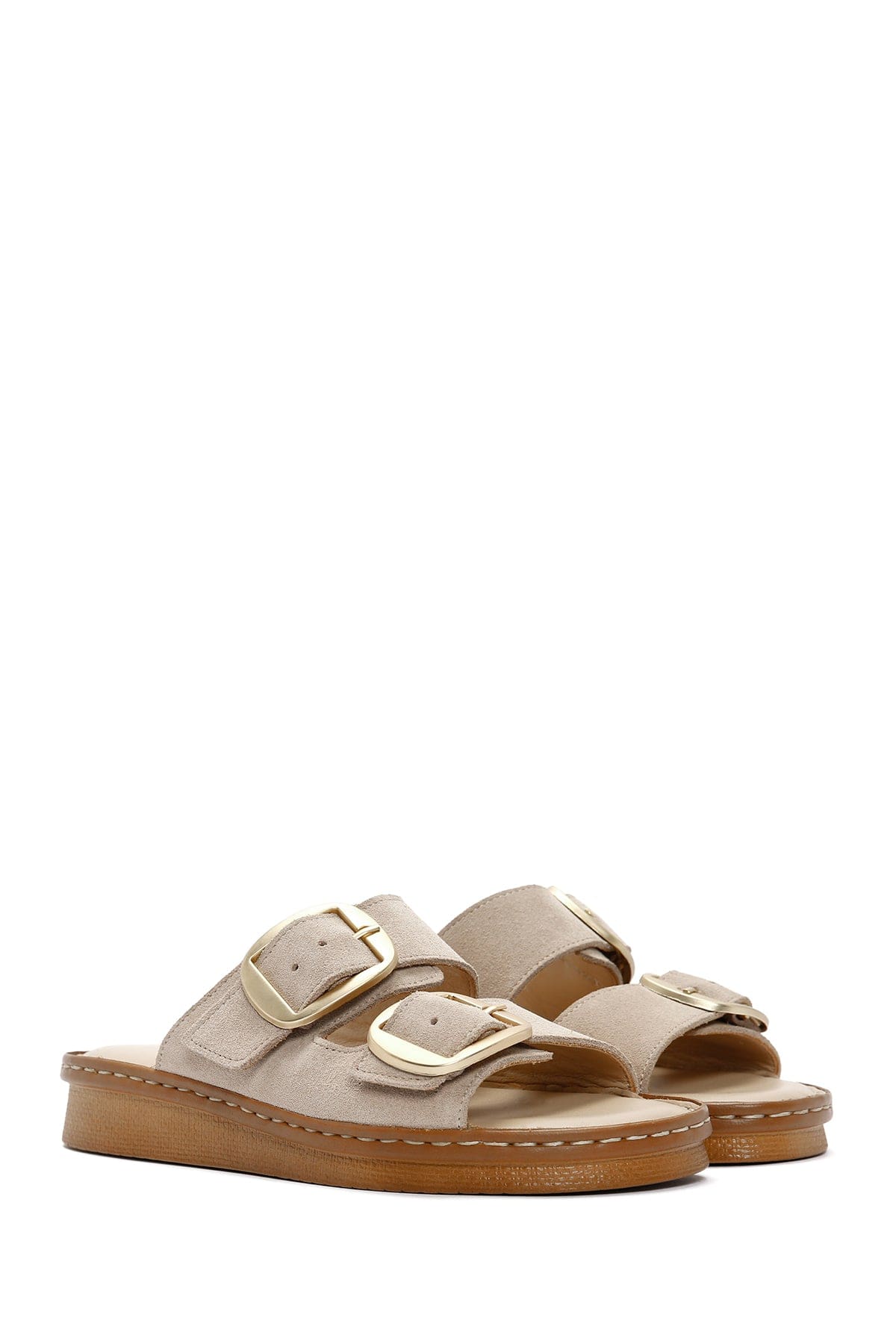 Kadın Bej Tokalı Süet Deri Comfort Terlik