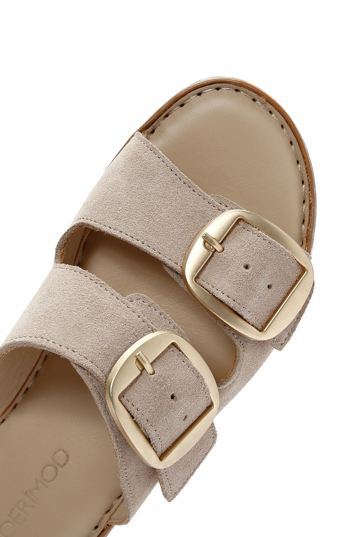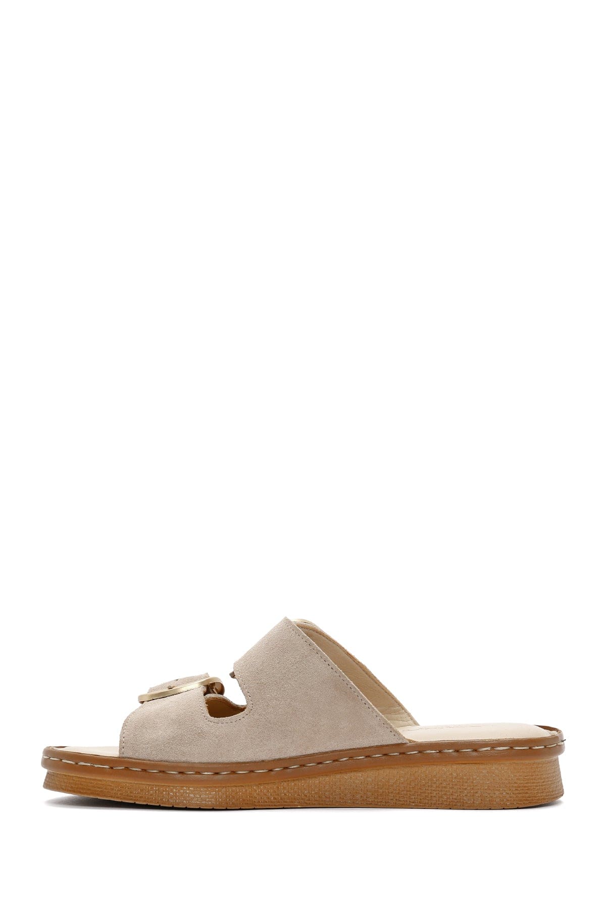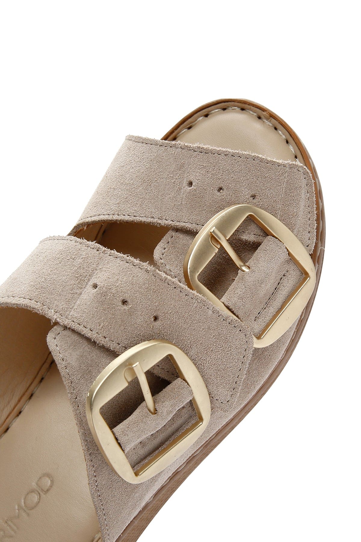 Kadın Bej Tokalı Süet Deri Comfort Terlik