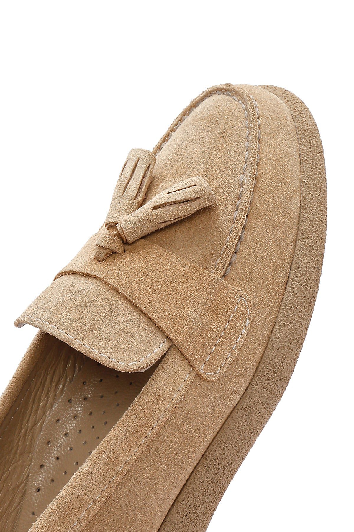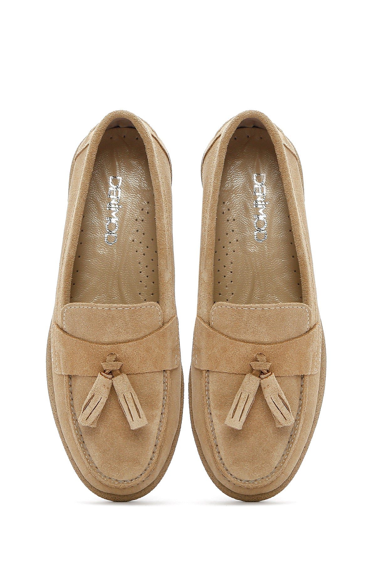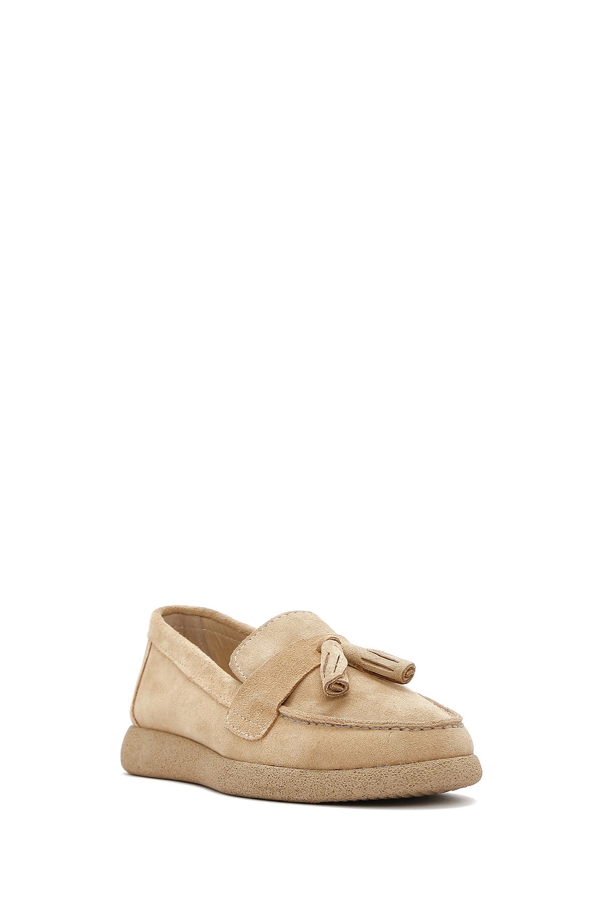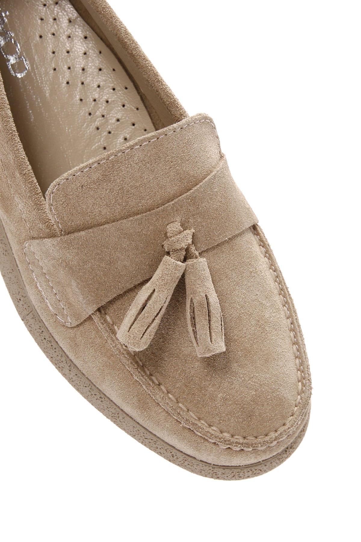Kadın Bej Süet Deri Konfor Loafer