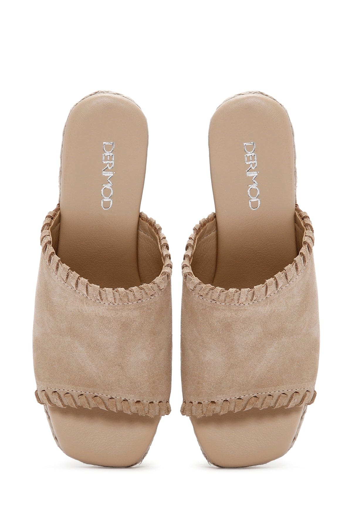 Kadın Bej Dolgu Topuklu Süet Deri Espadril Terlik