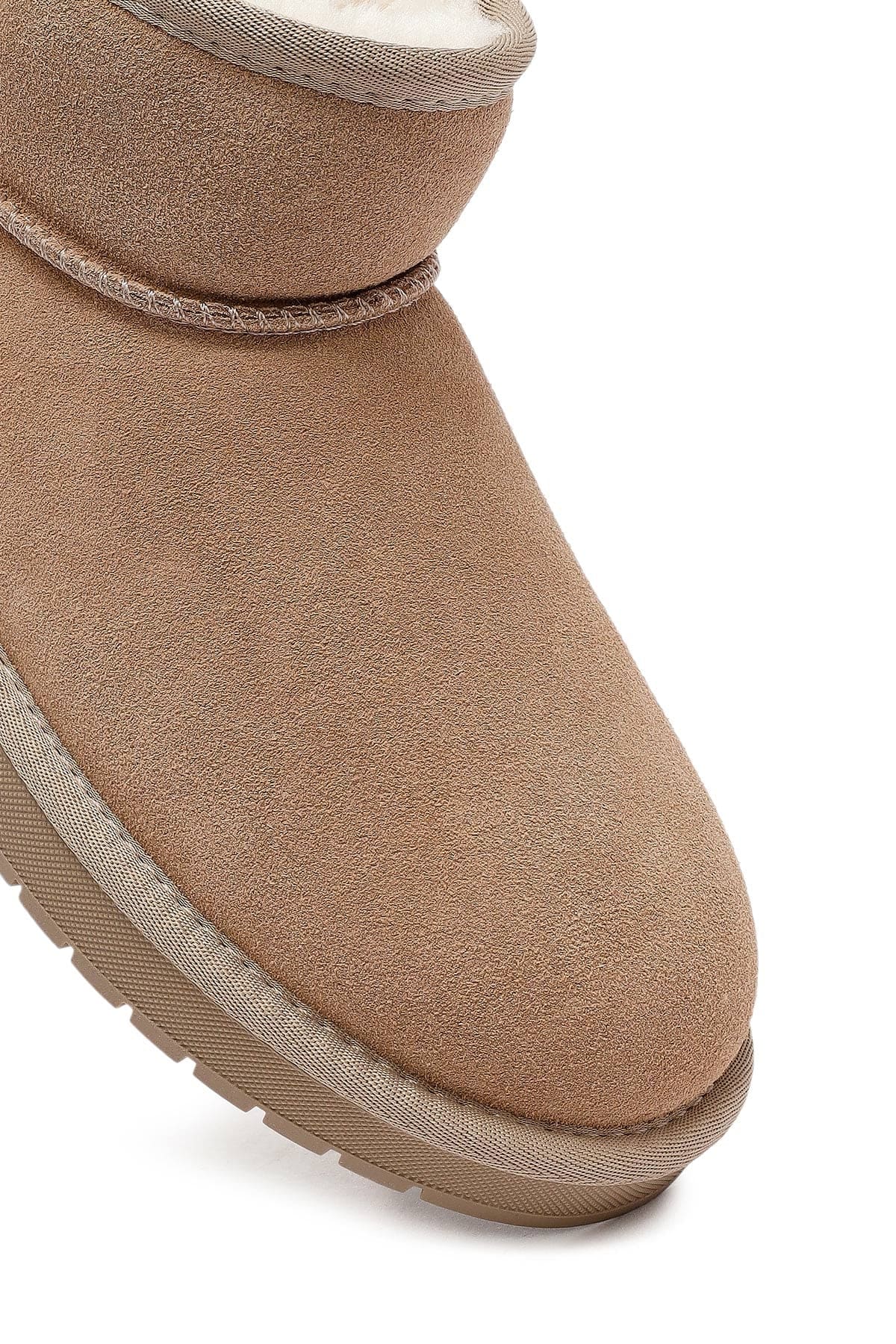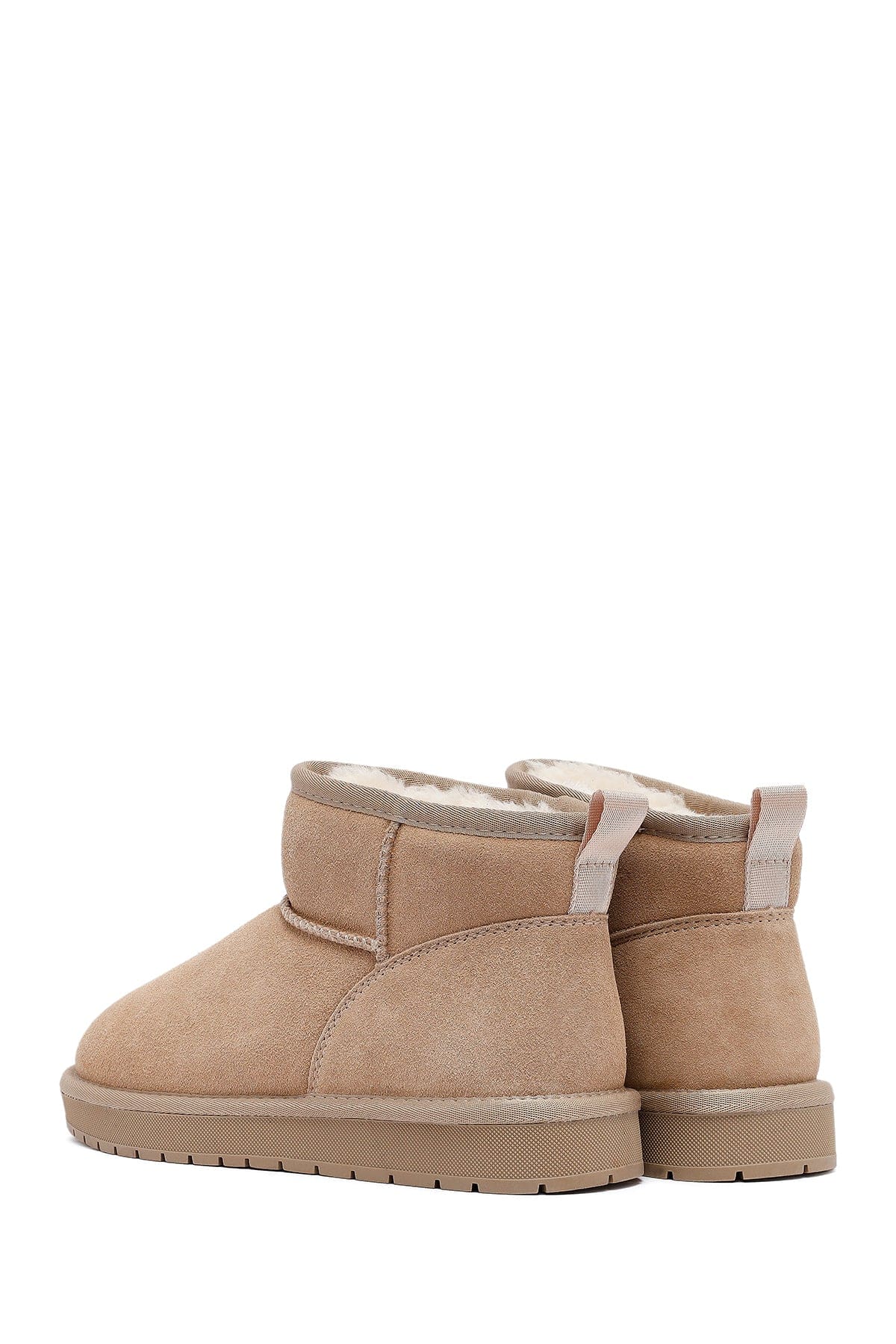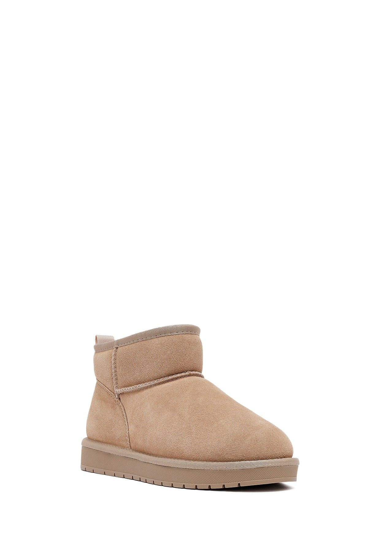 Kadın Bej Kürklü Süet Deri Teddy Bot