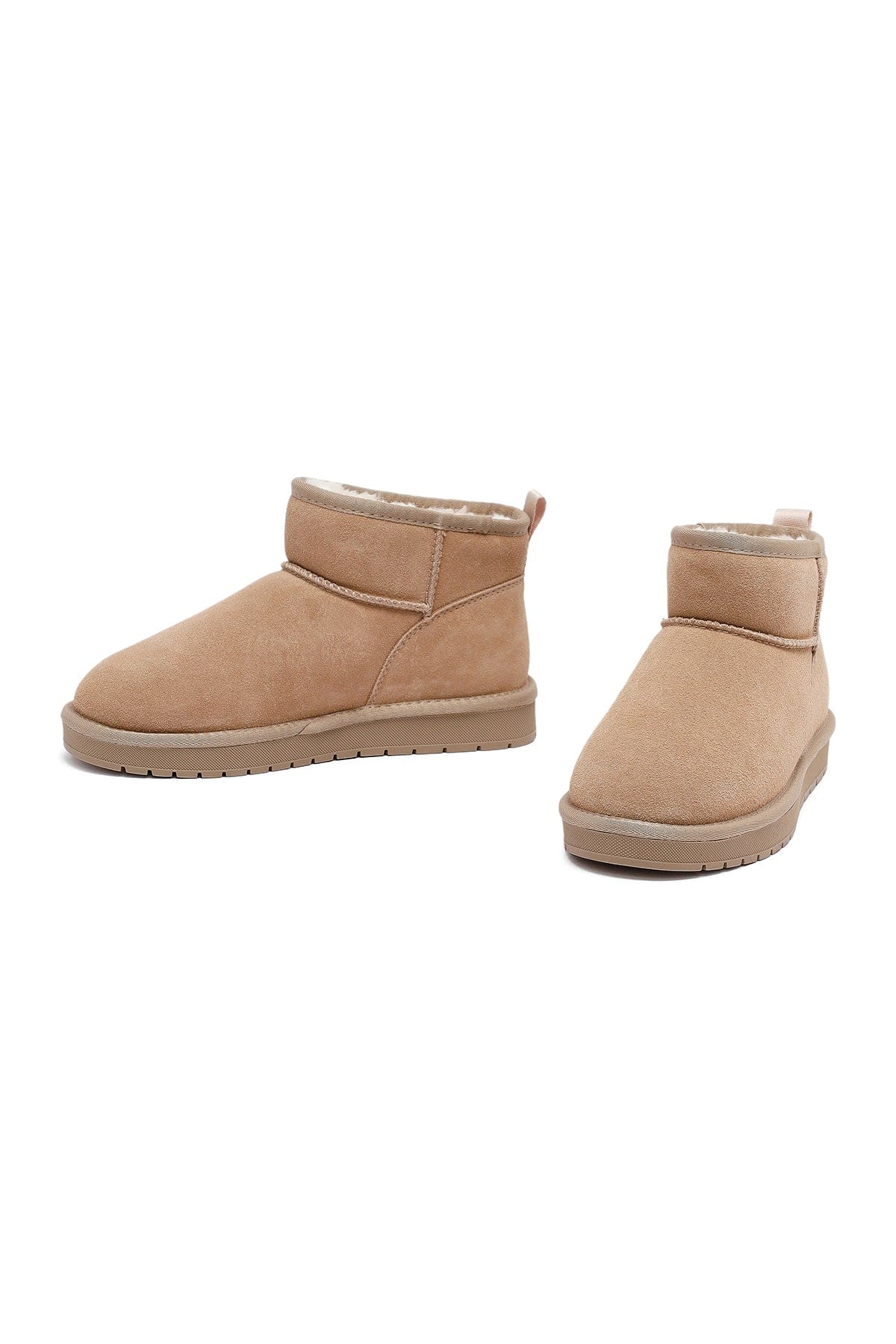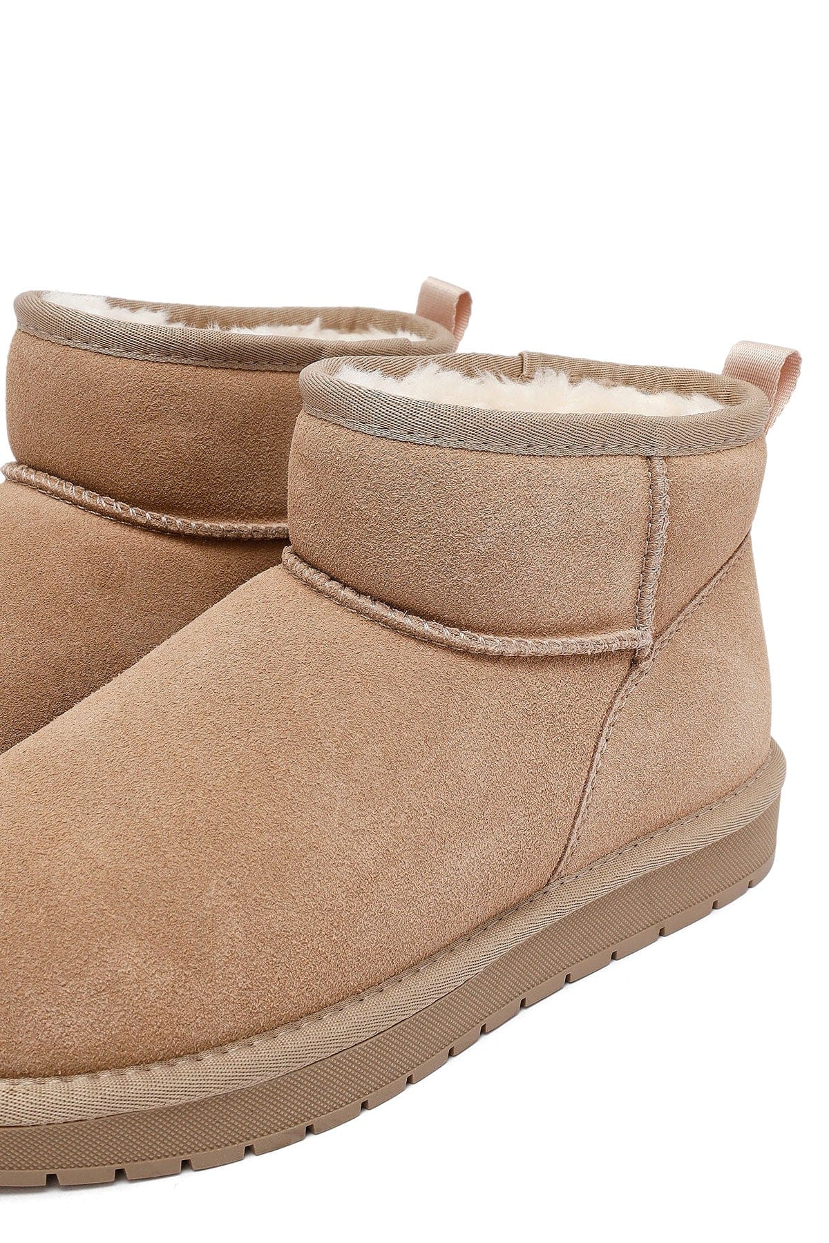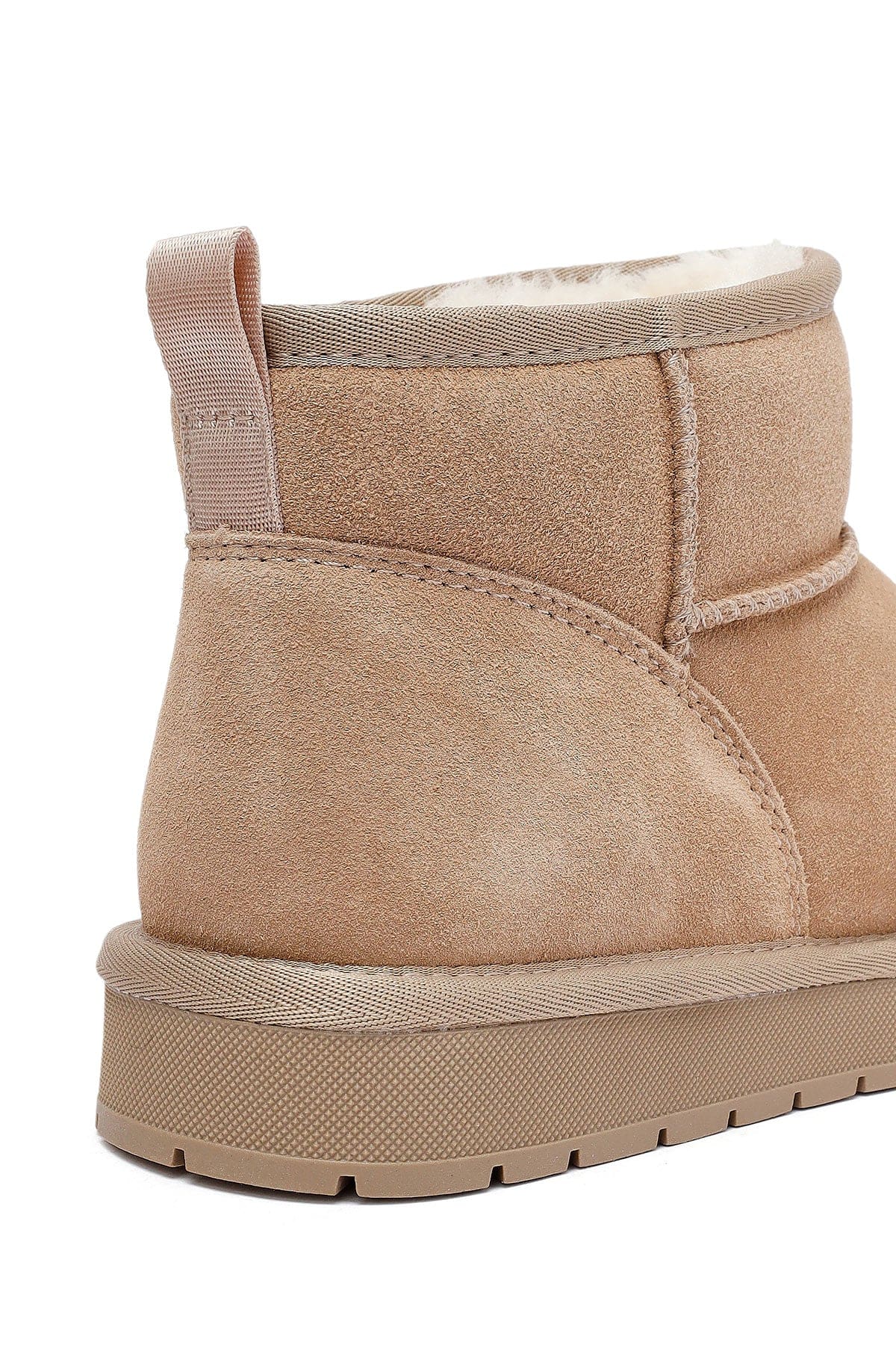 Kadın Bej Kürklü Süet Deri Teddy Bot
