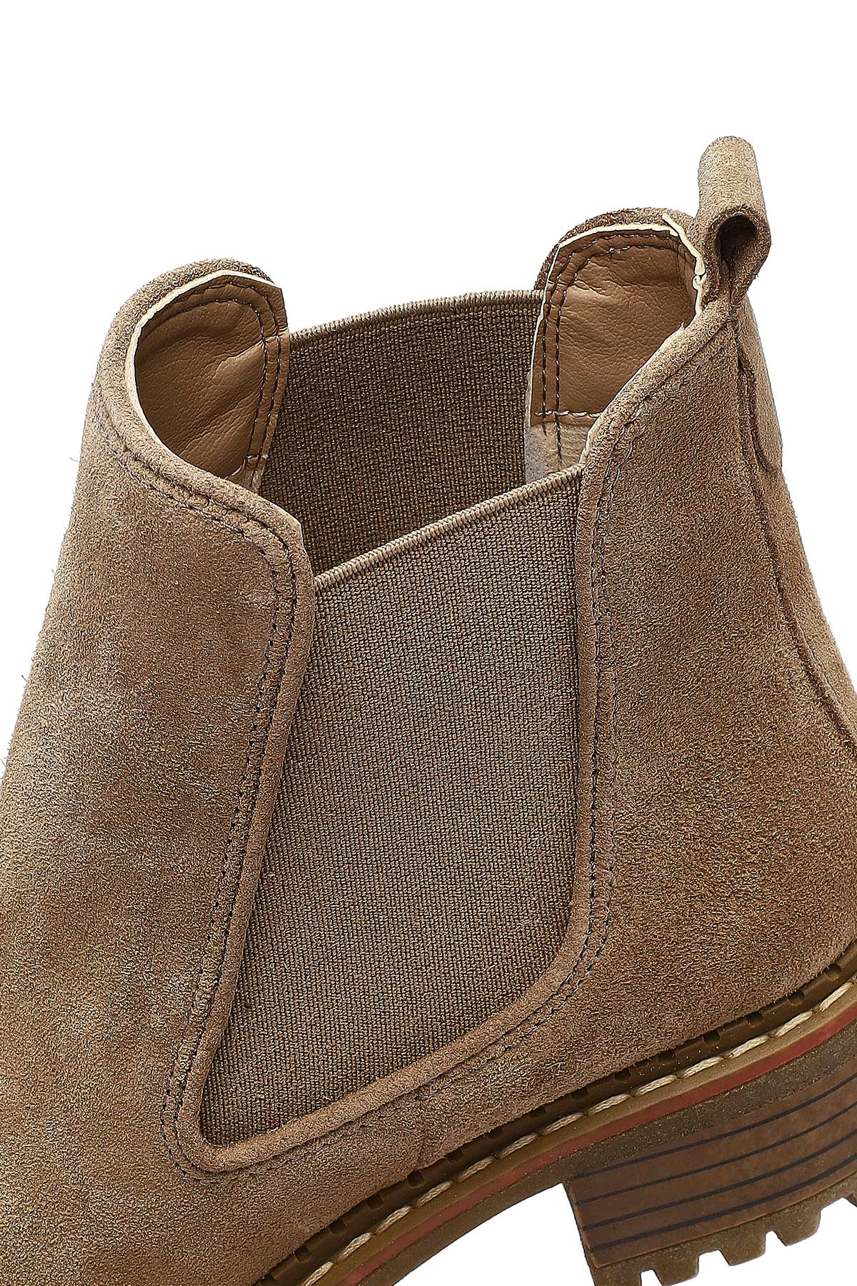 Kadın Bej Kısa Kalın Topuklu Süet Deri Chelsea Bot