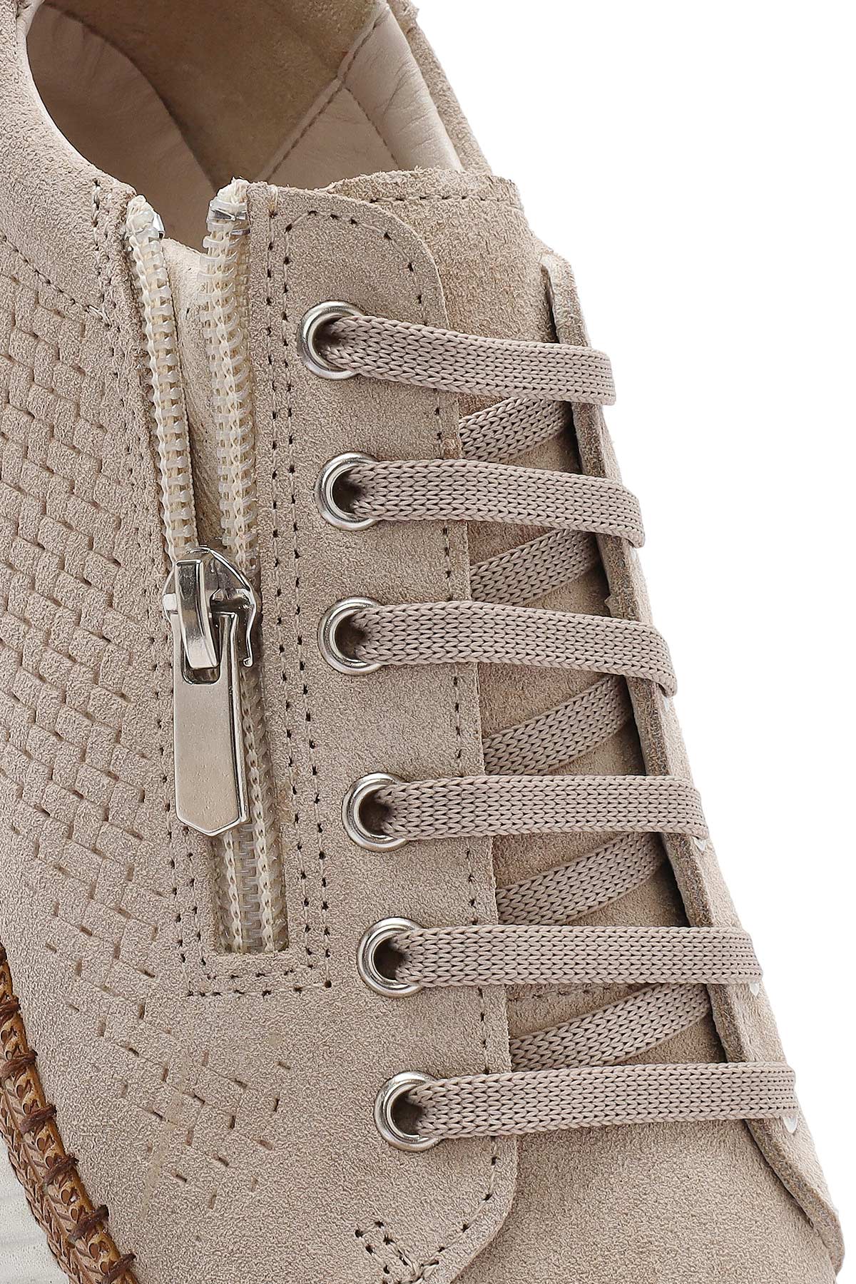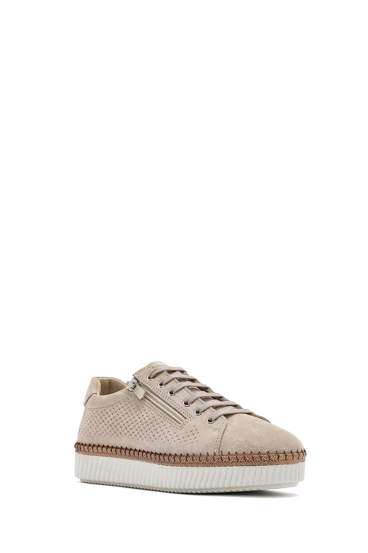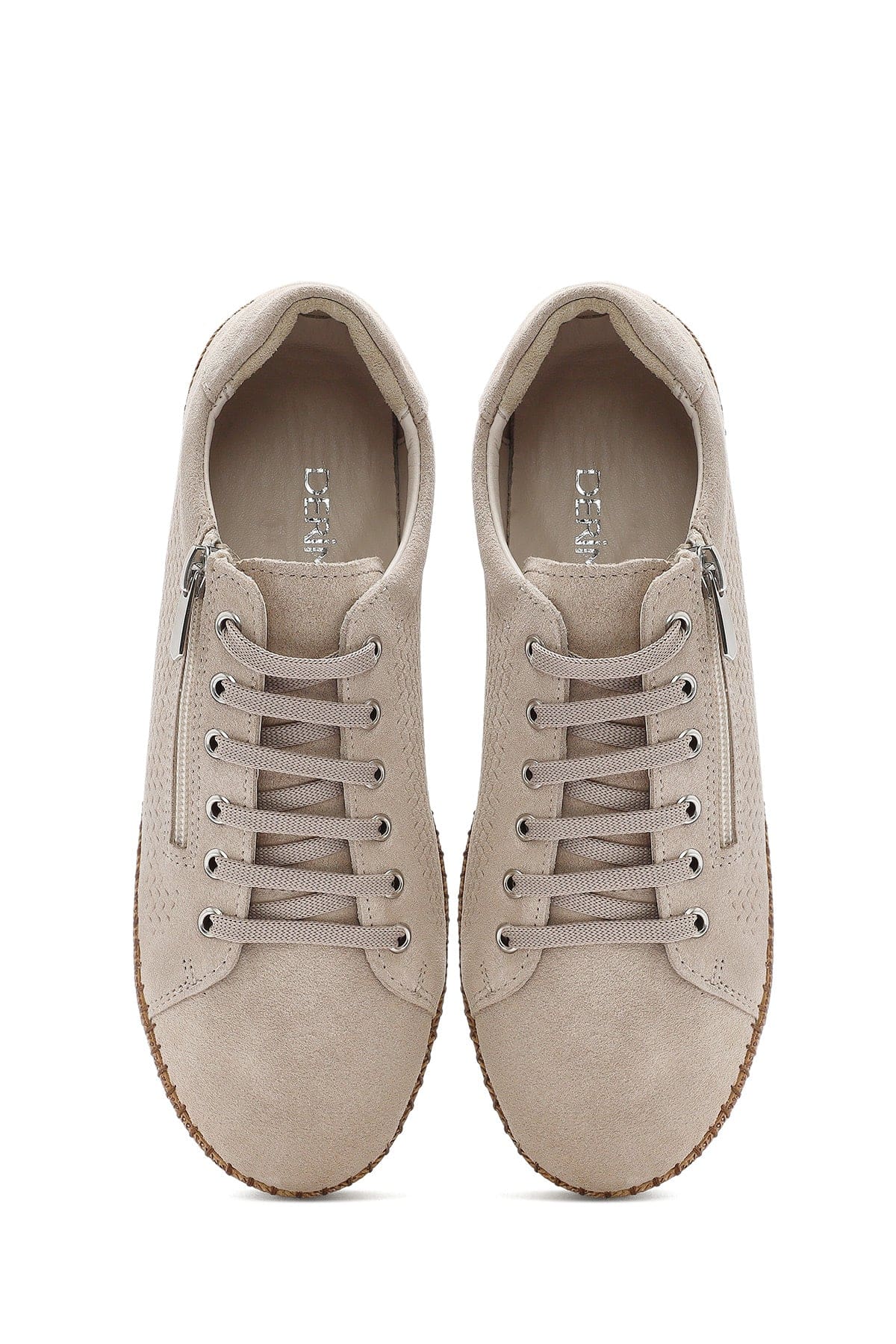 Kadın Bej Bağcıklı Kalın Tabanlı Süet Deri Sneaker