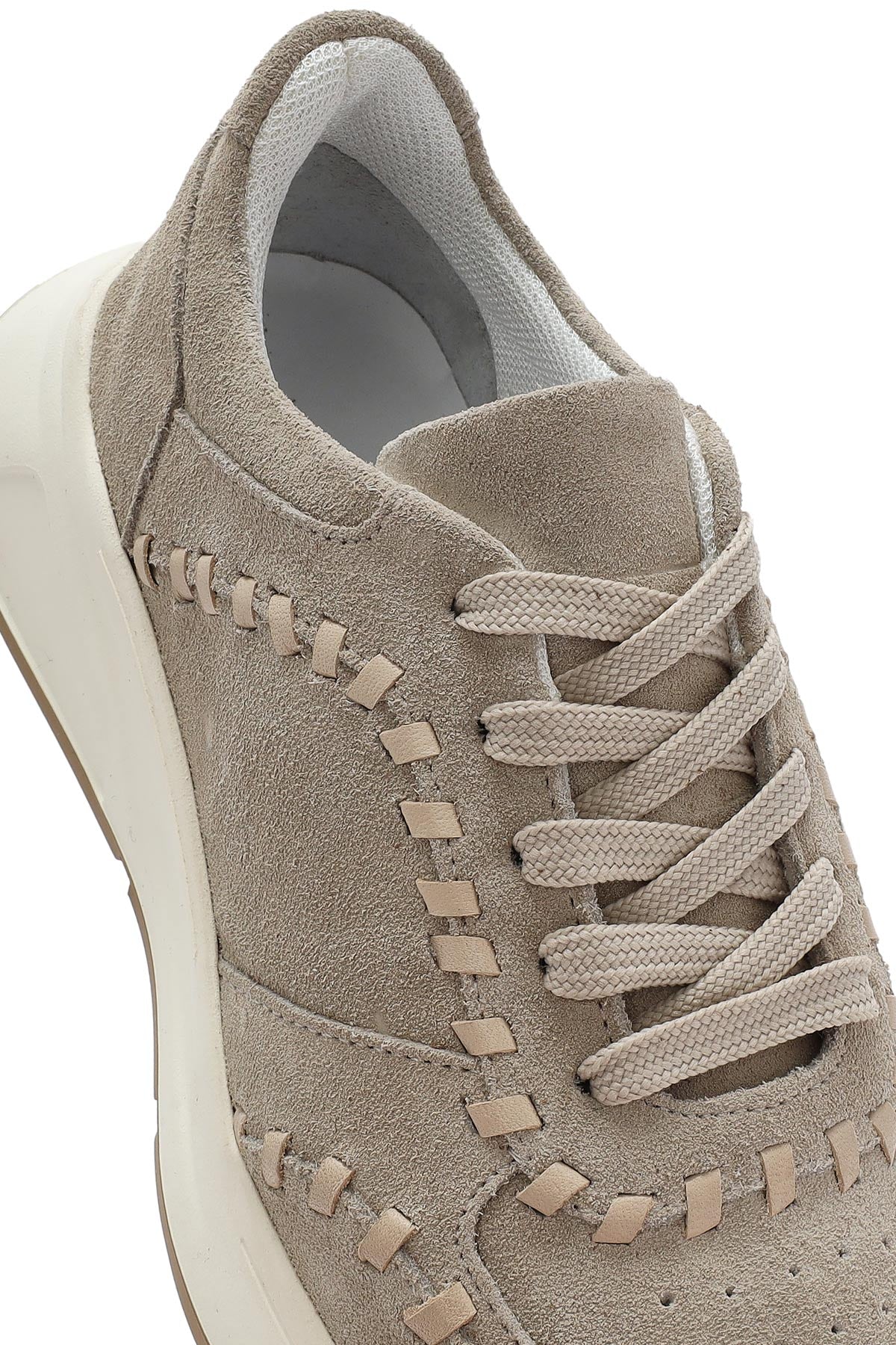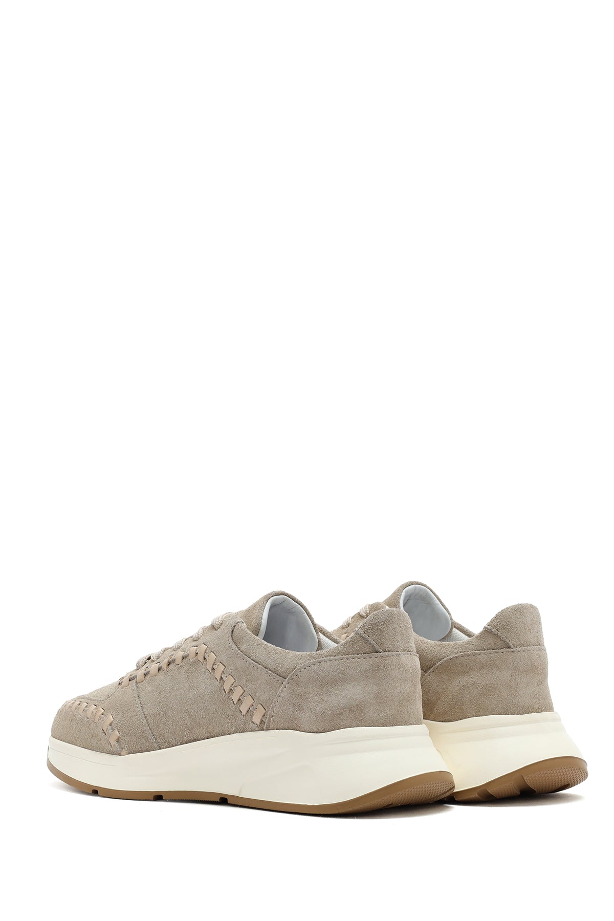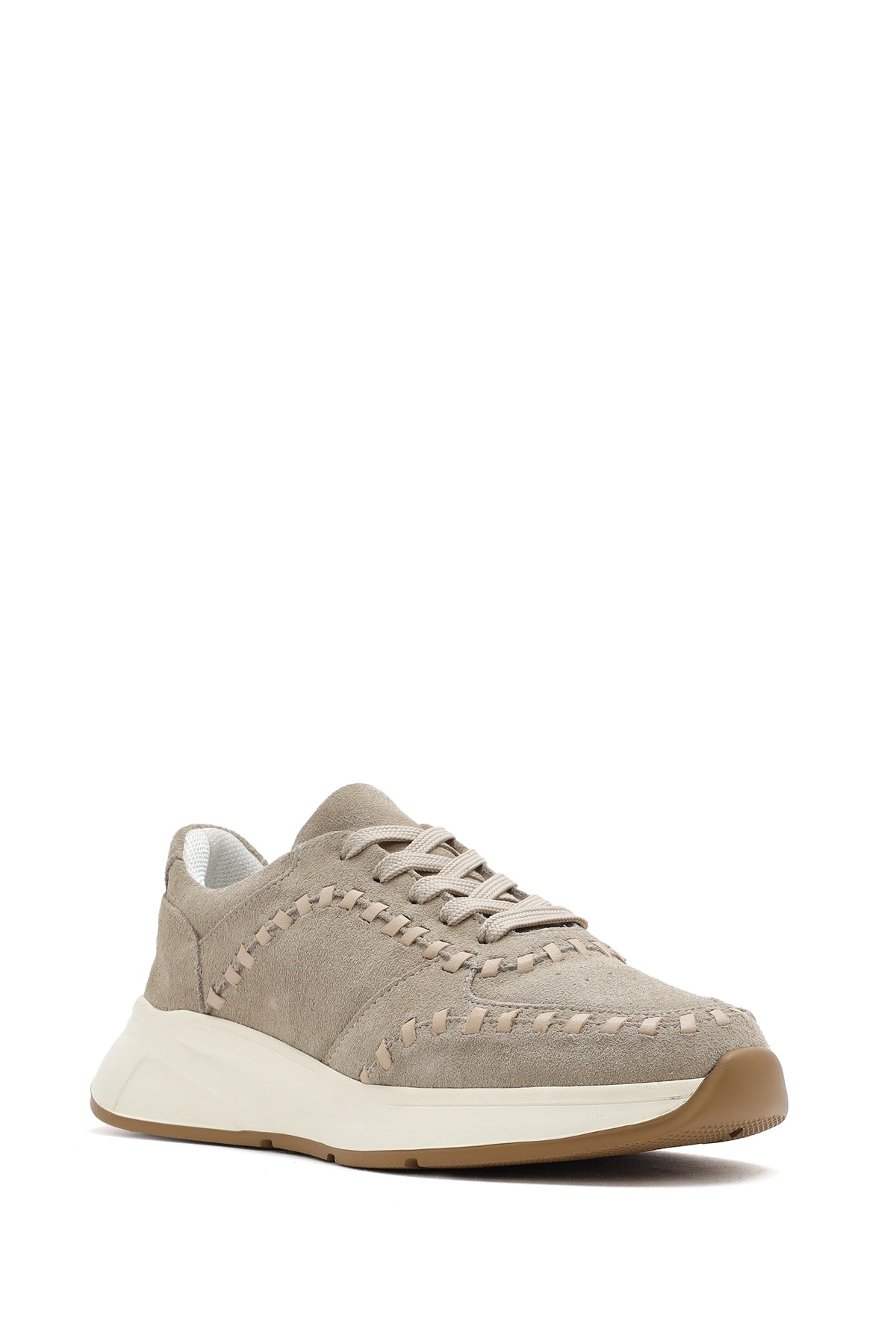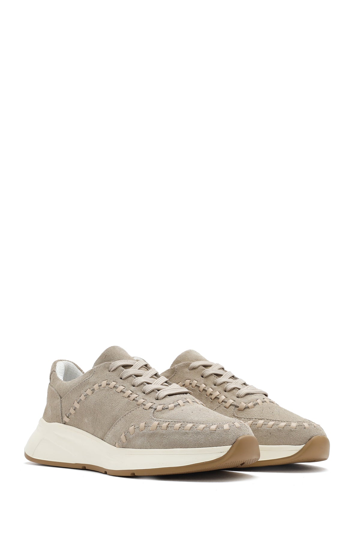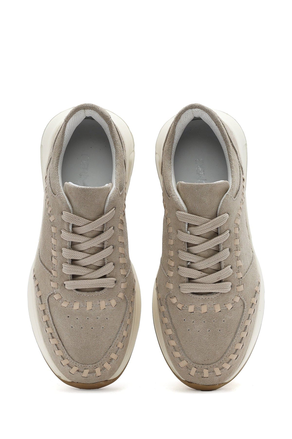 Kadın Bej Bağcıklı Kalın Tabanlı Süet Deri Sneaker