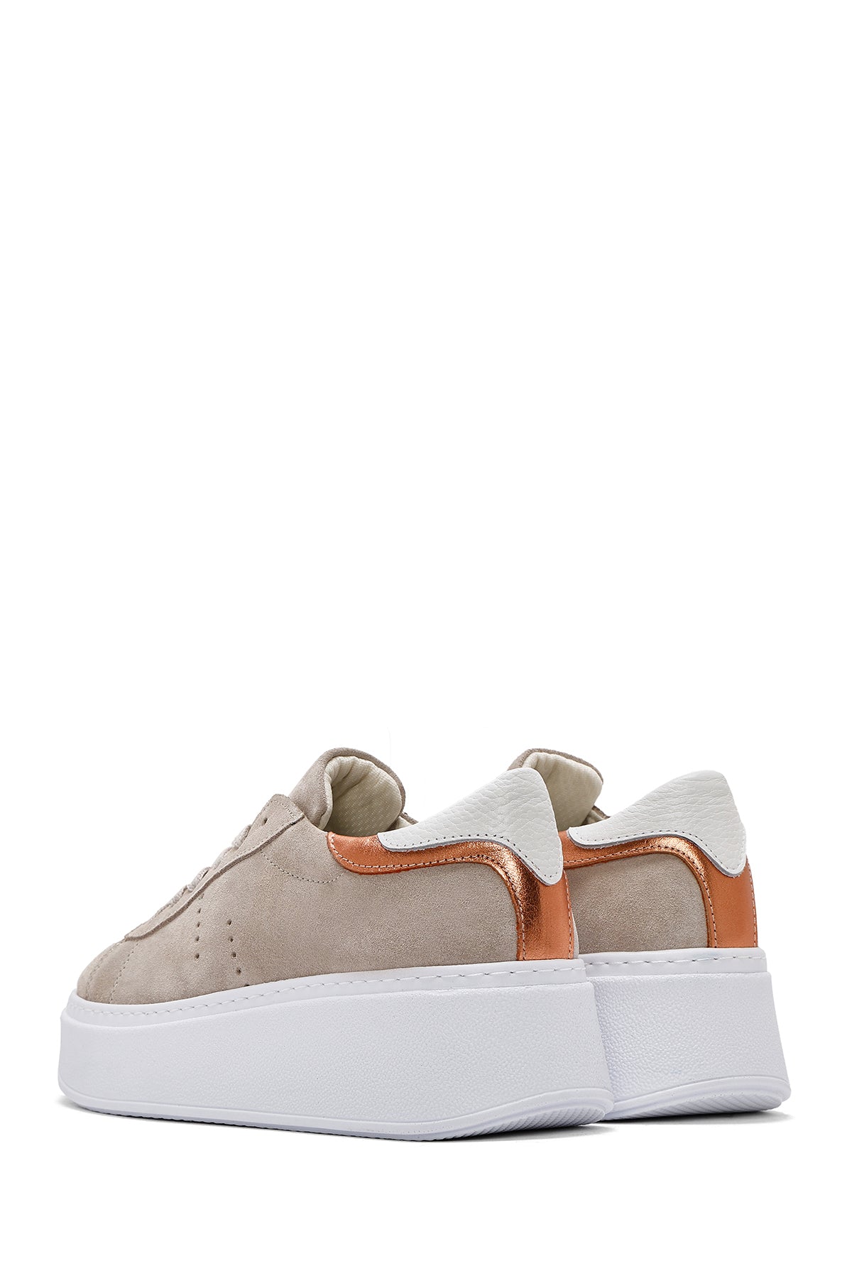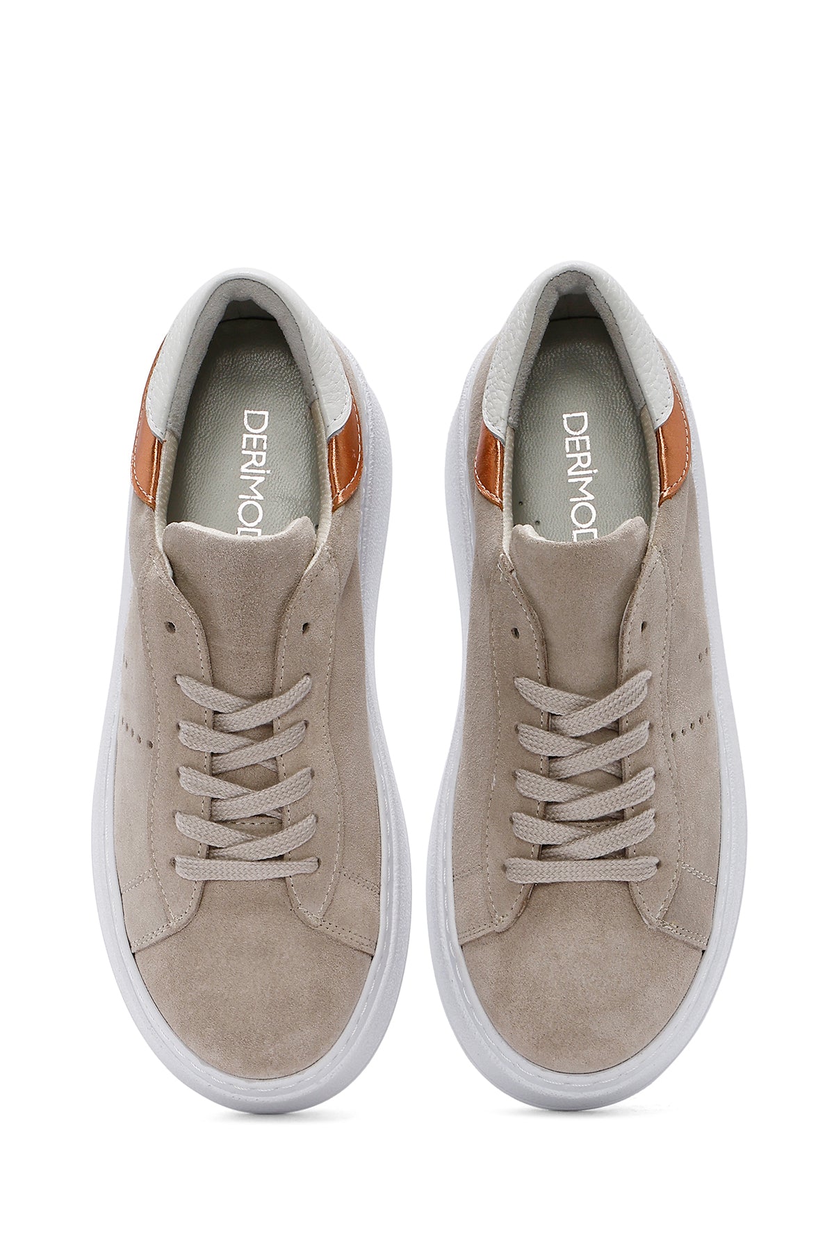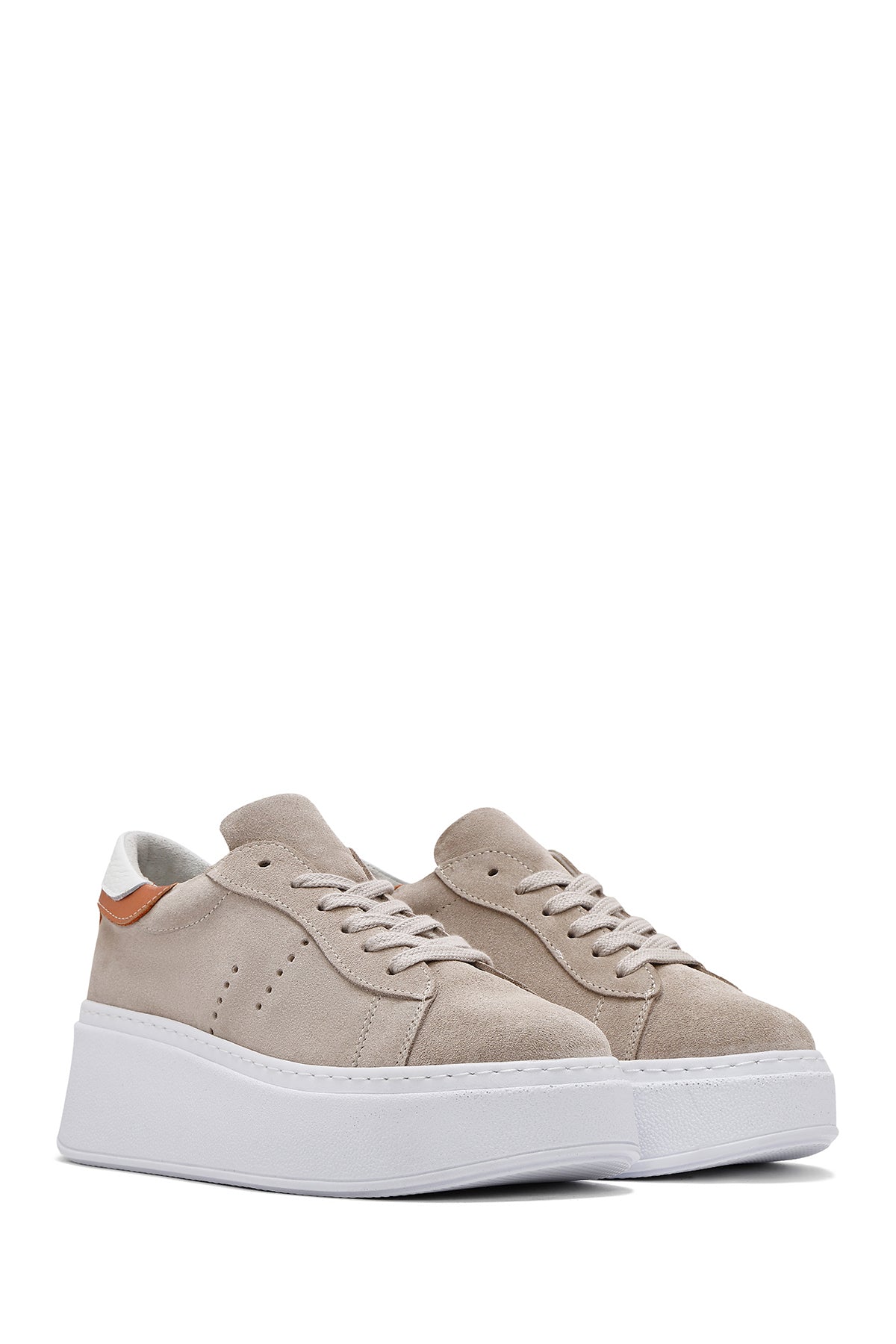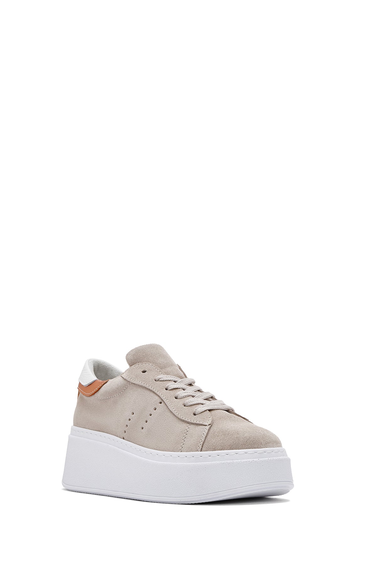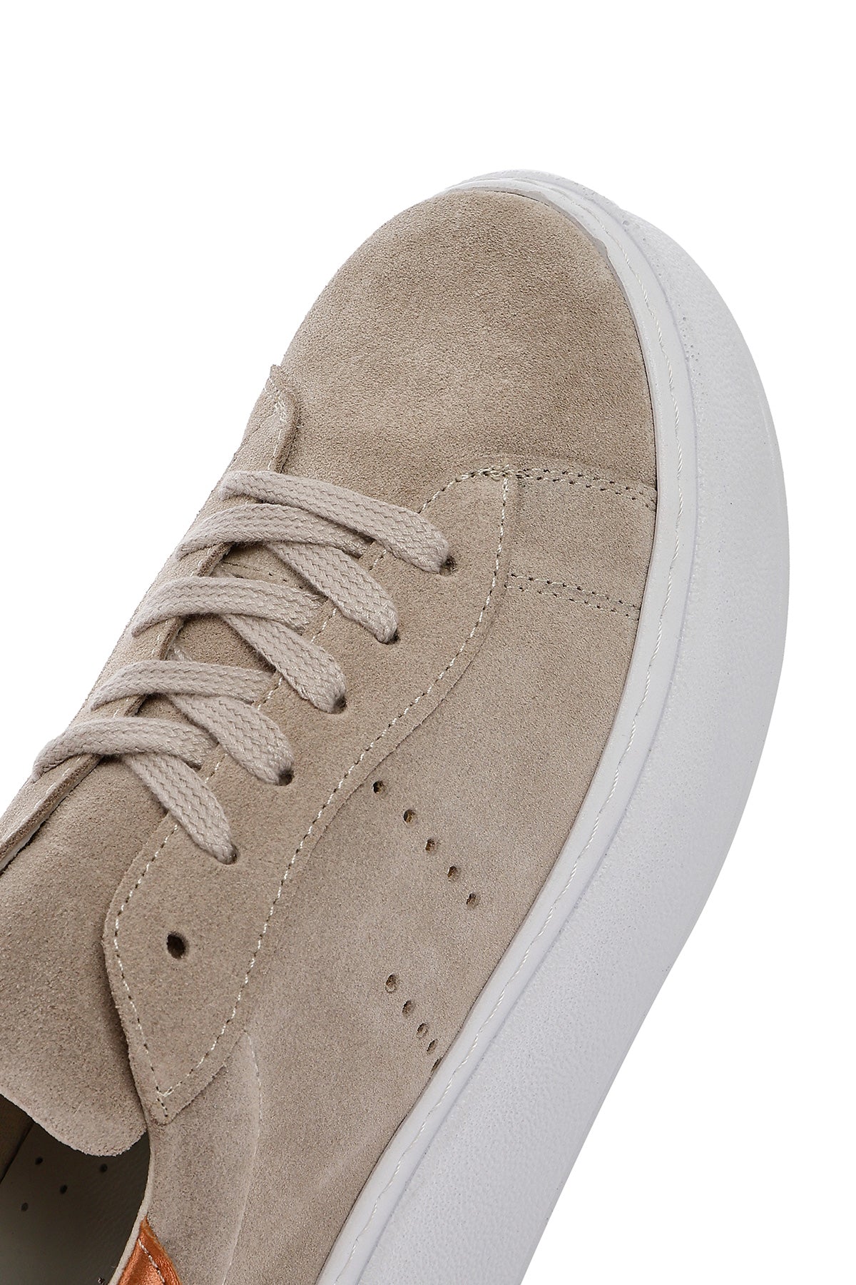 Kadın Bej Bağcıklı Kalın Tabanlı Süet Deri Sneaker