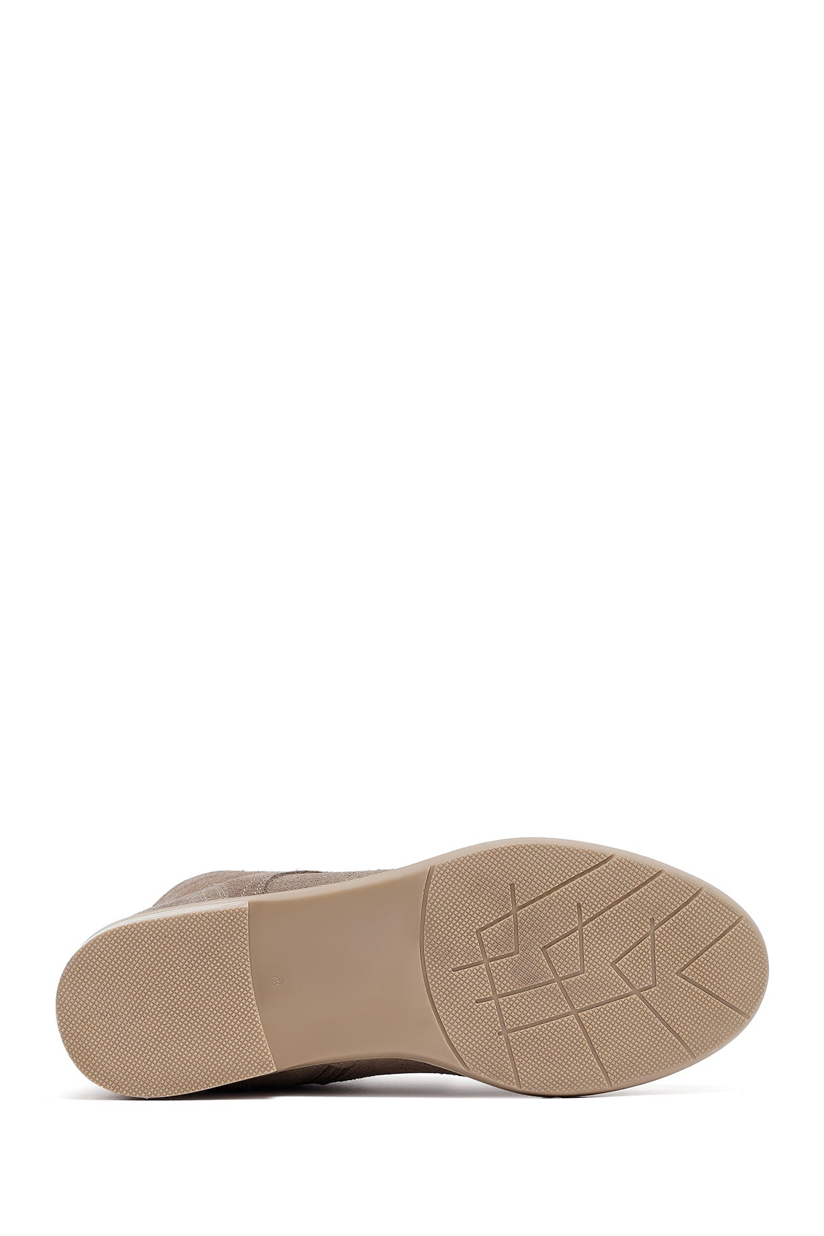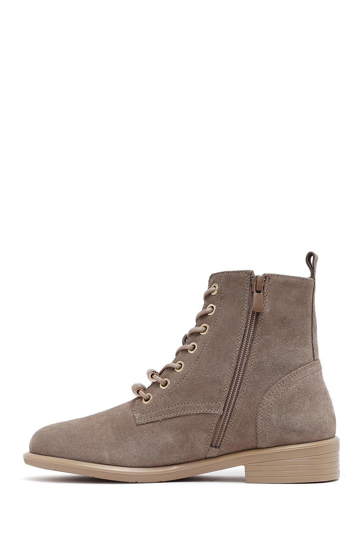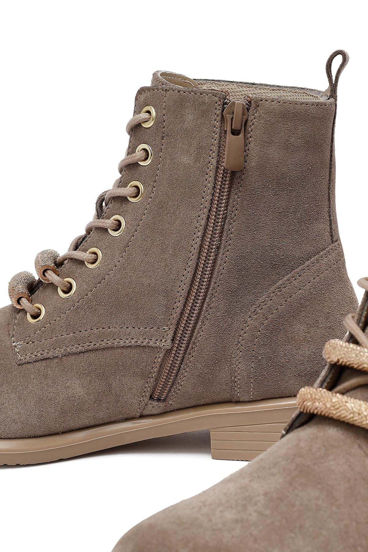 Kadın Bej Bağcıklı Fermuarlı Süet Deri Bot