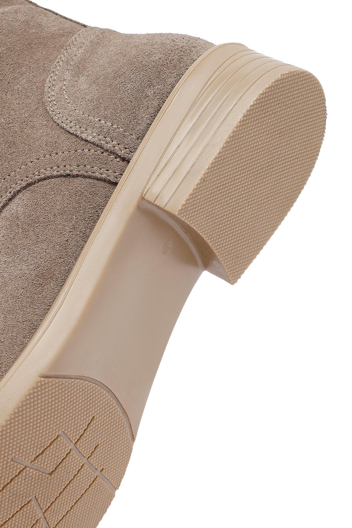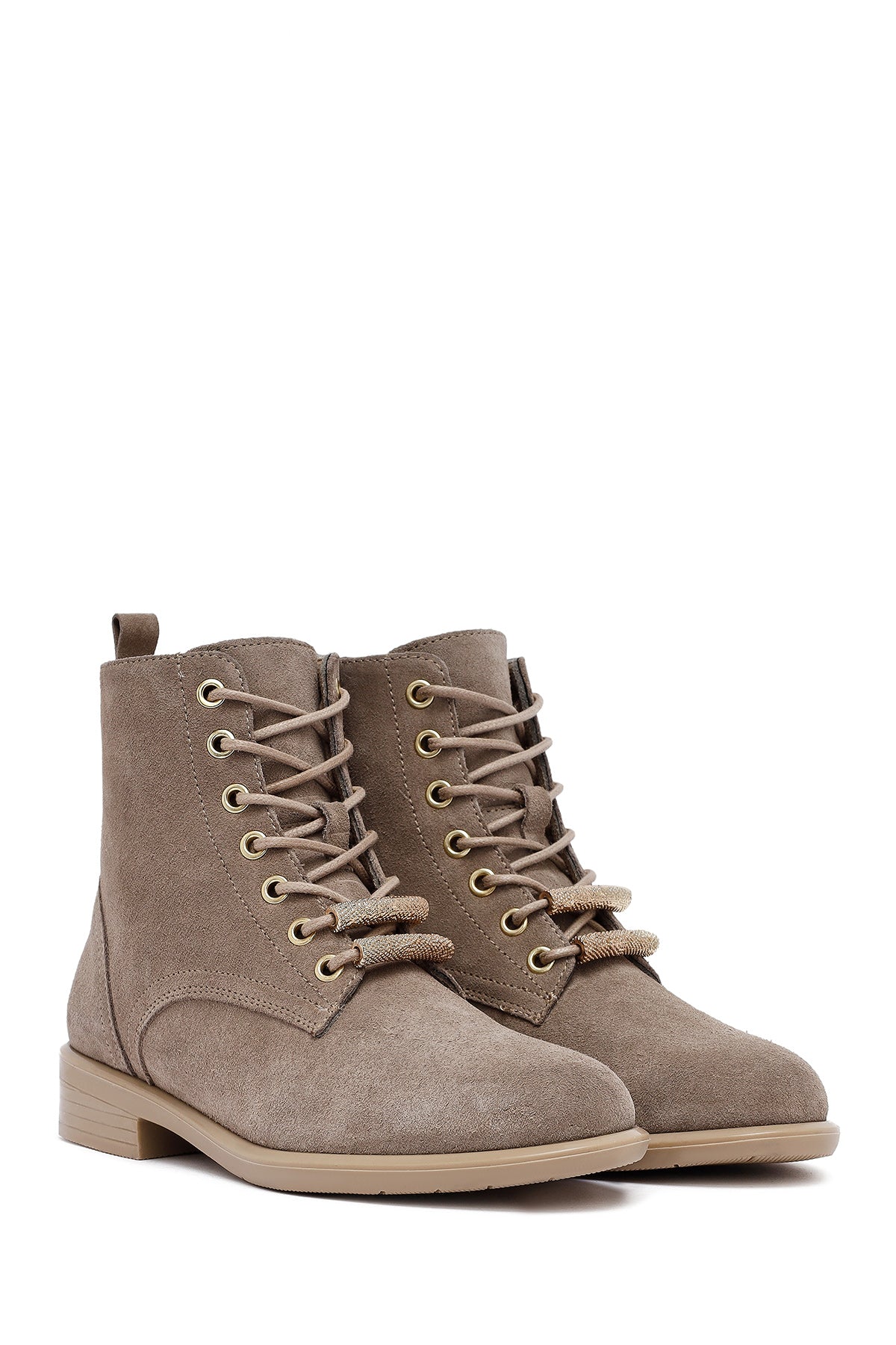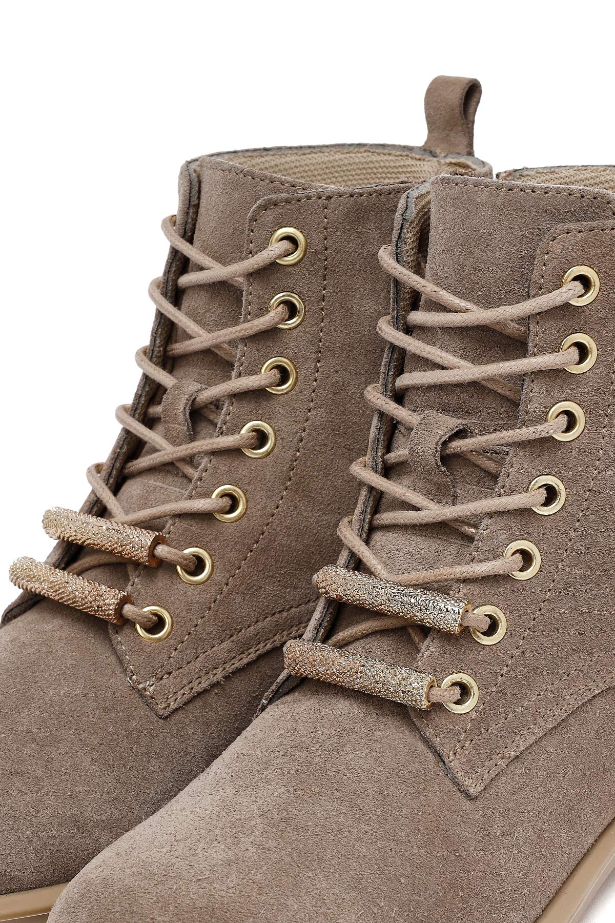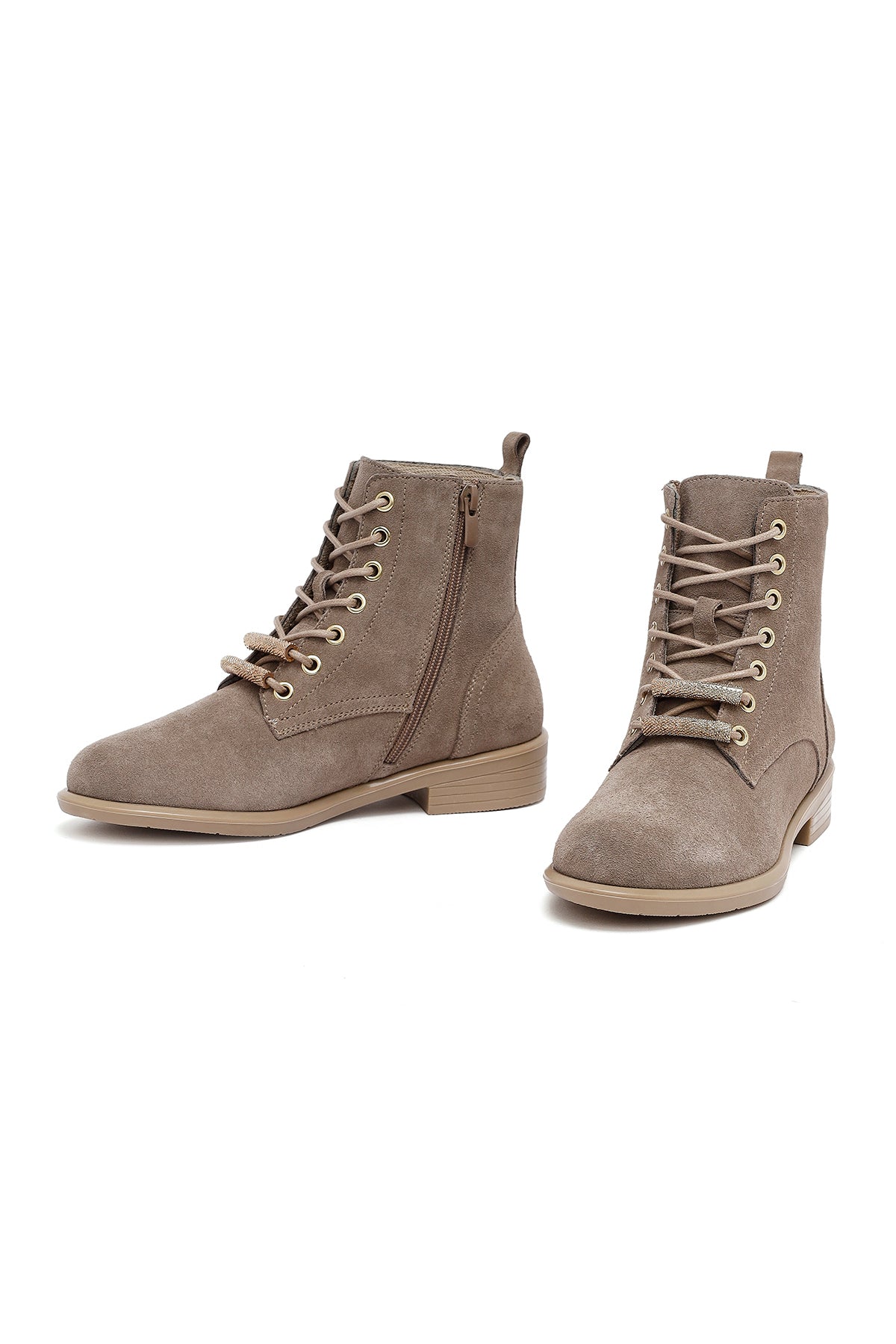 Kadın Bej Bağcıklı Fermuarlı Süet Deri Bot