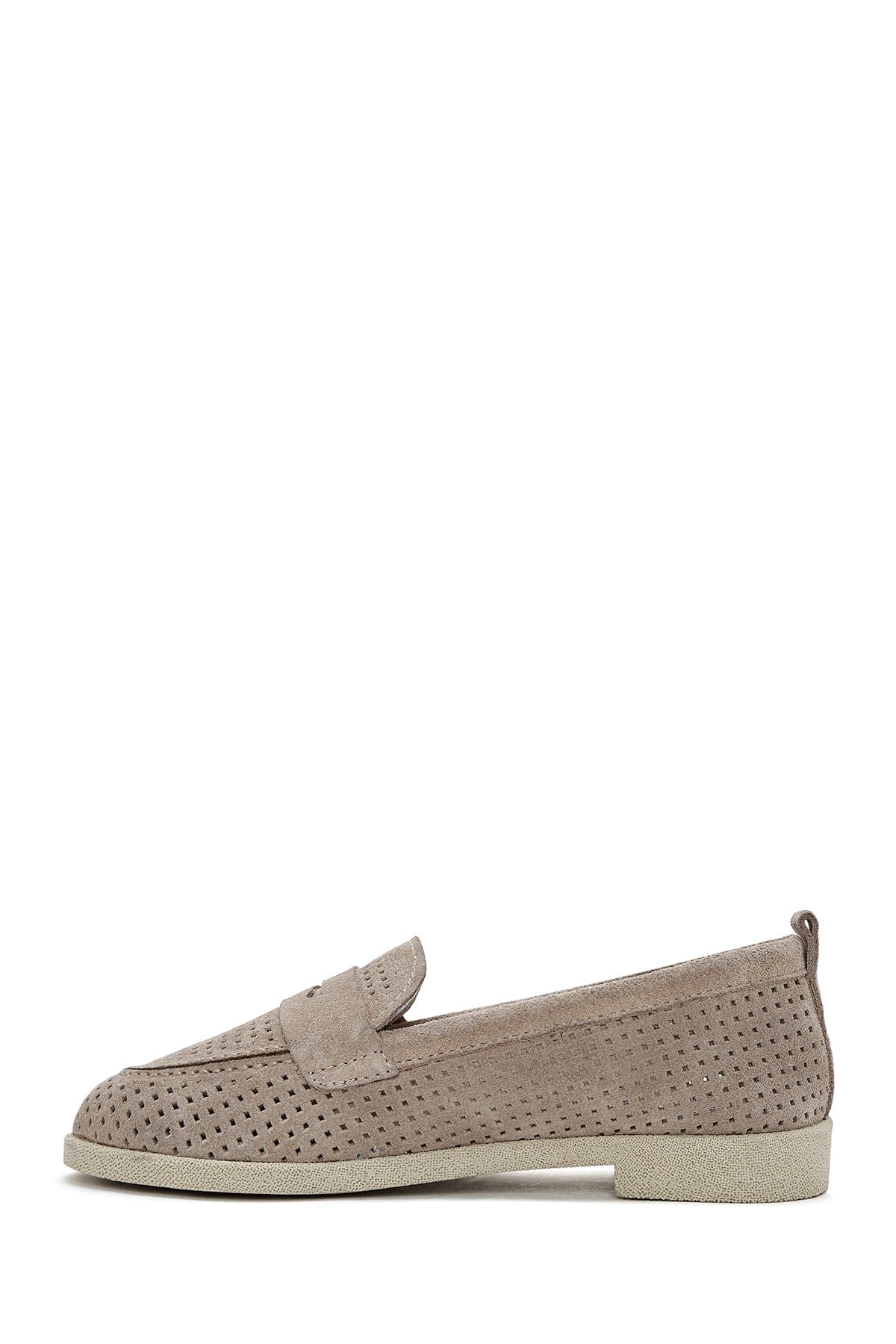 کفش لوفر زنانه چرم جیر بژ دری مد