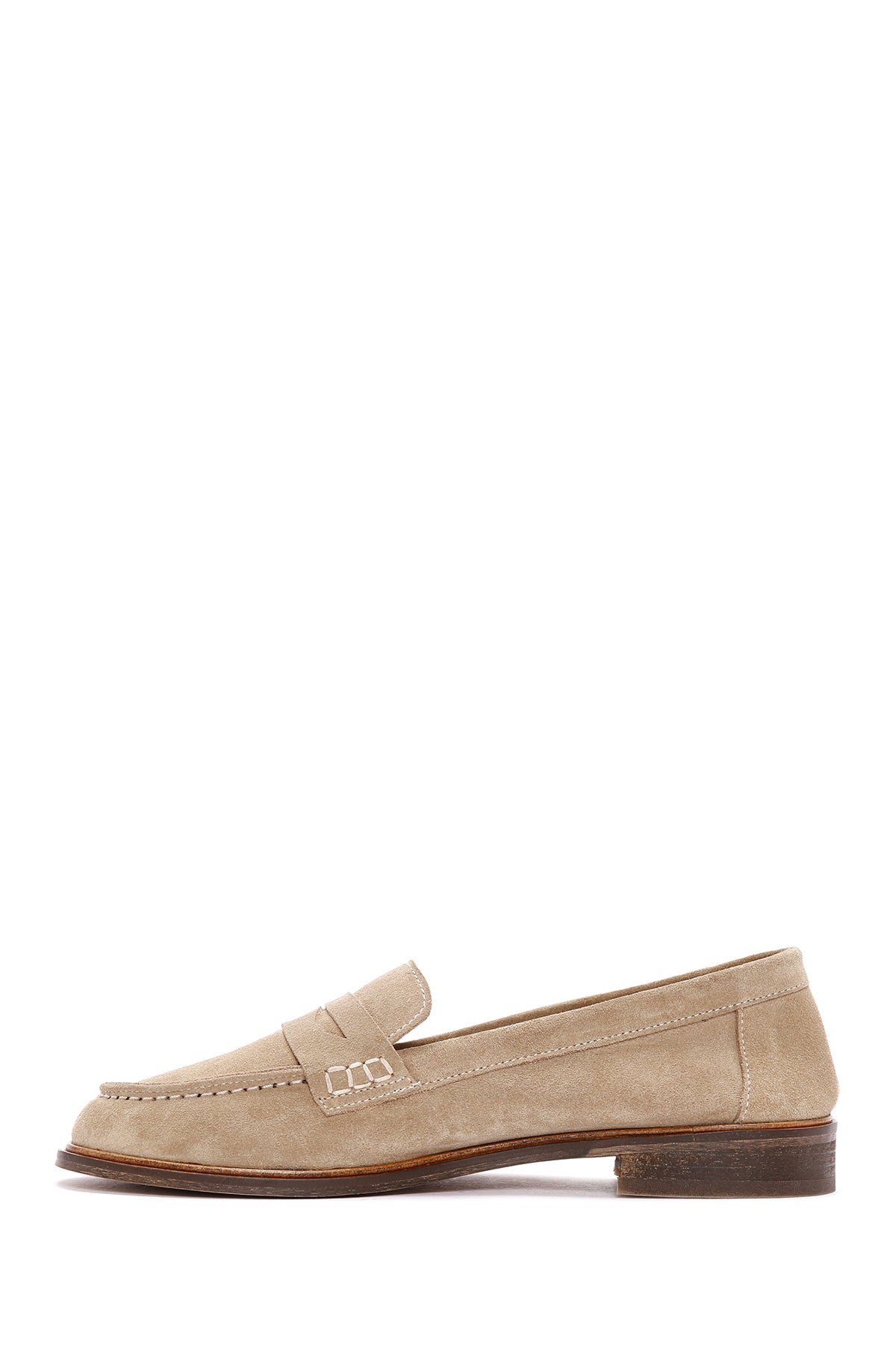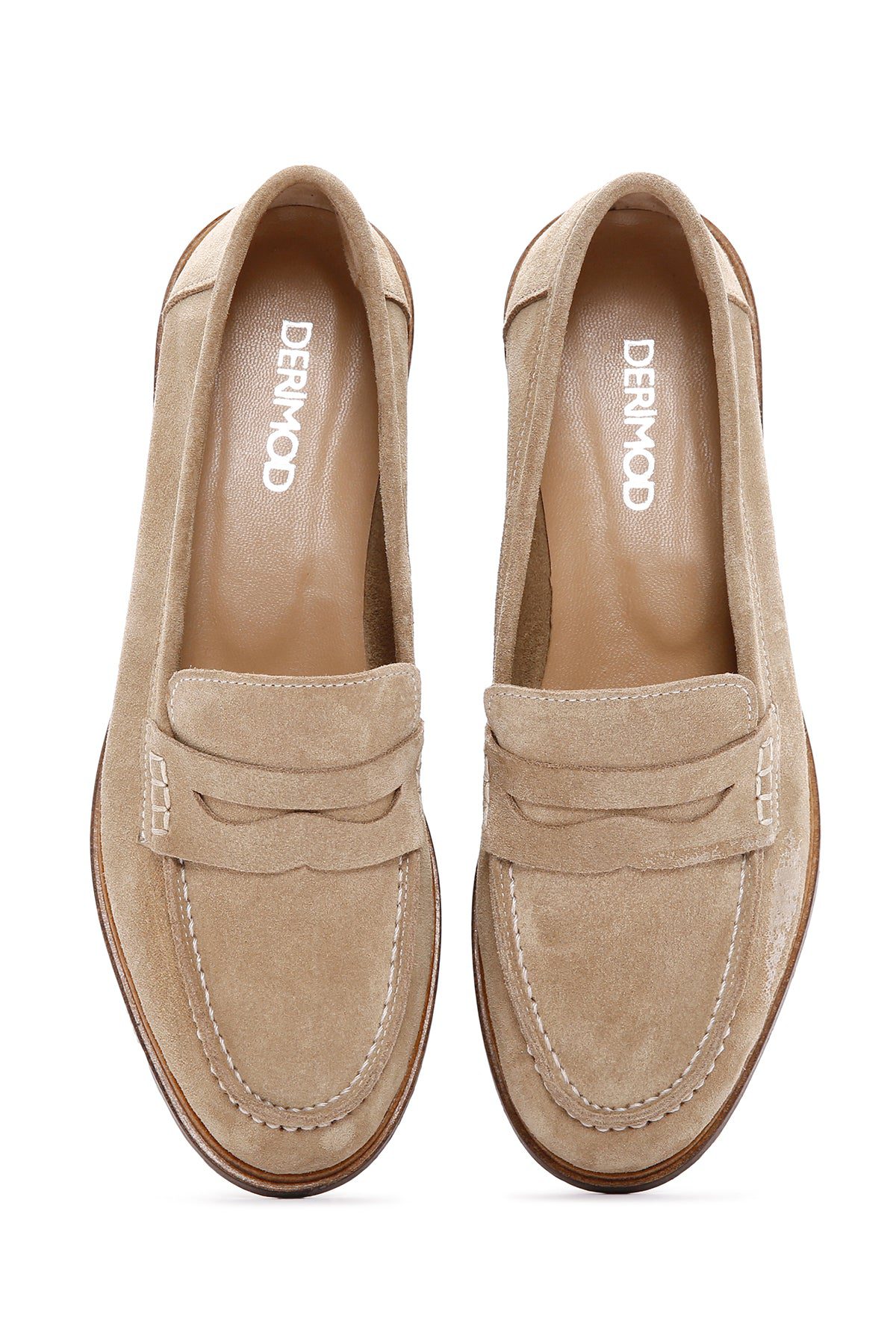 کفش لوفر زنانه چرم جیر بژ با استایل مردانه دری مد