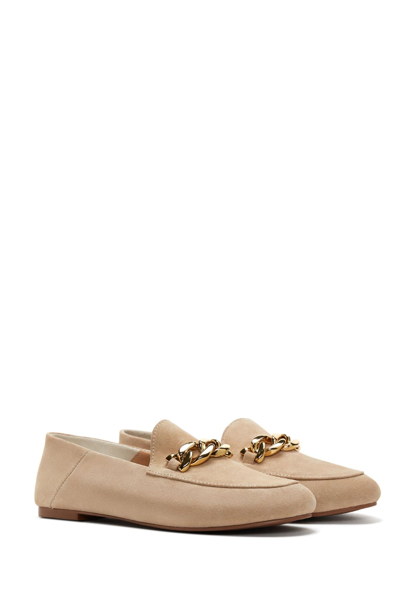 کفش لوفر زنانه چرم جیر بژ دری مد