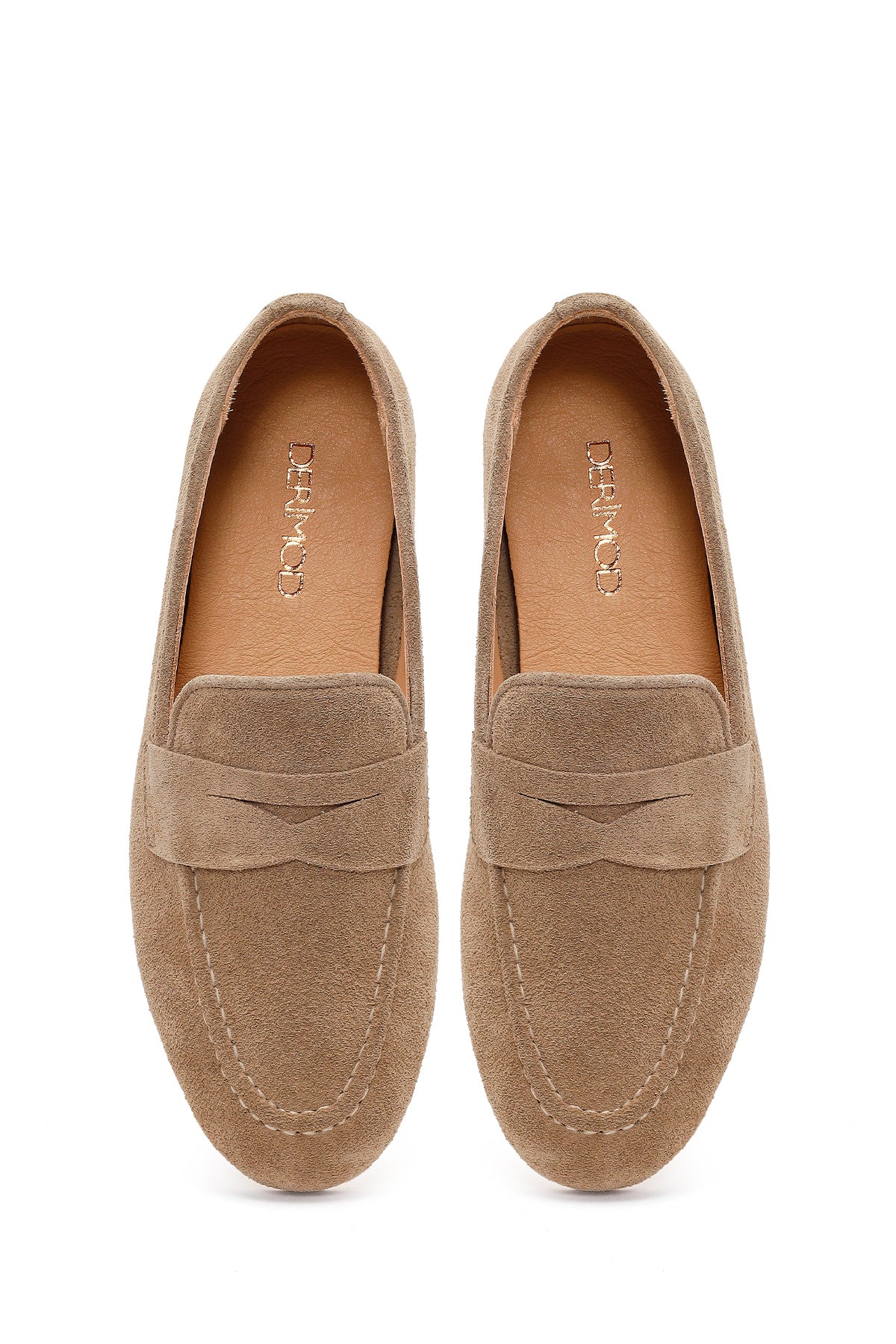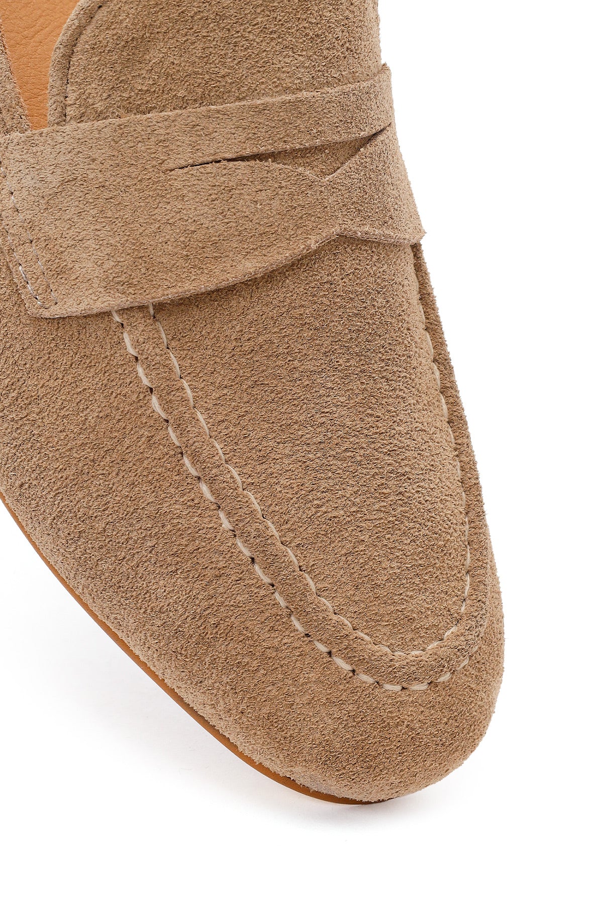 Kadın Bej Süet Deri Maskülen Loafer