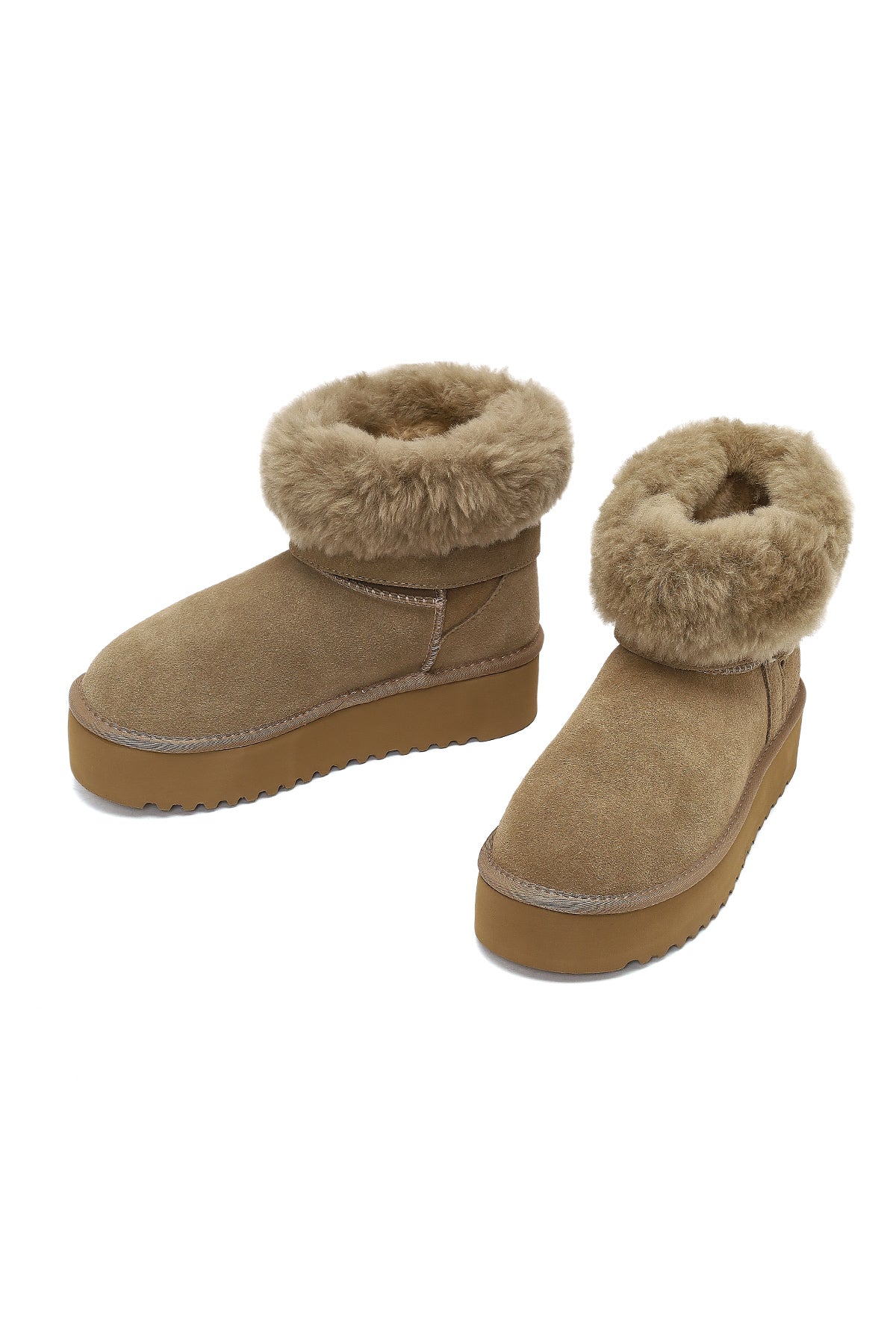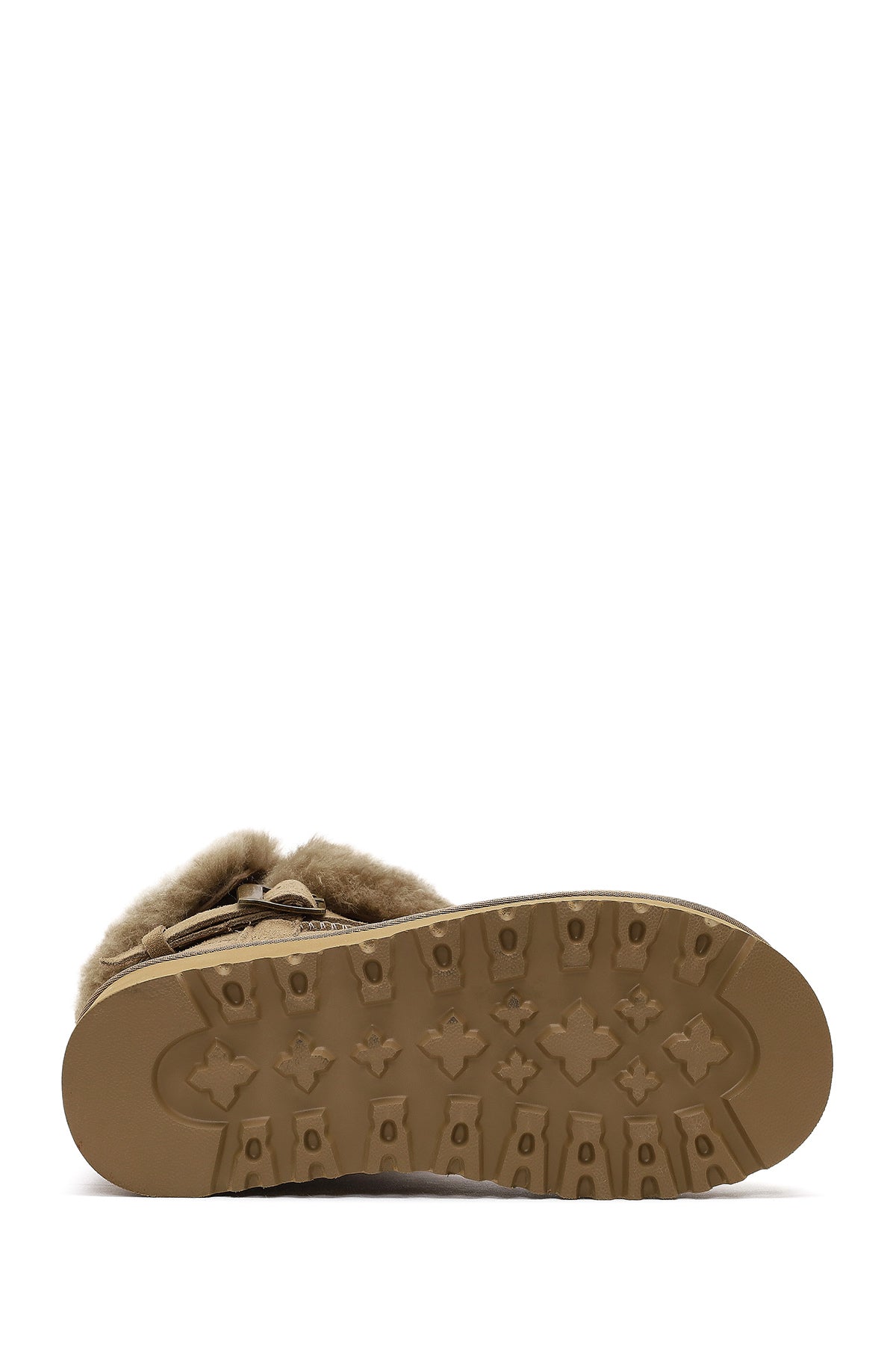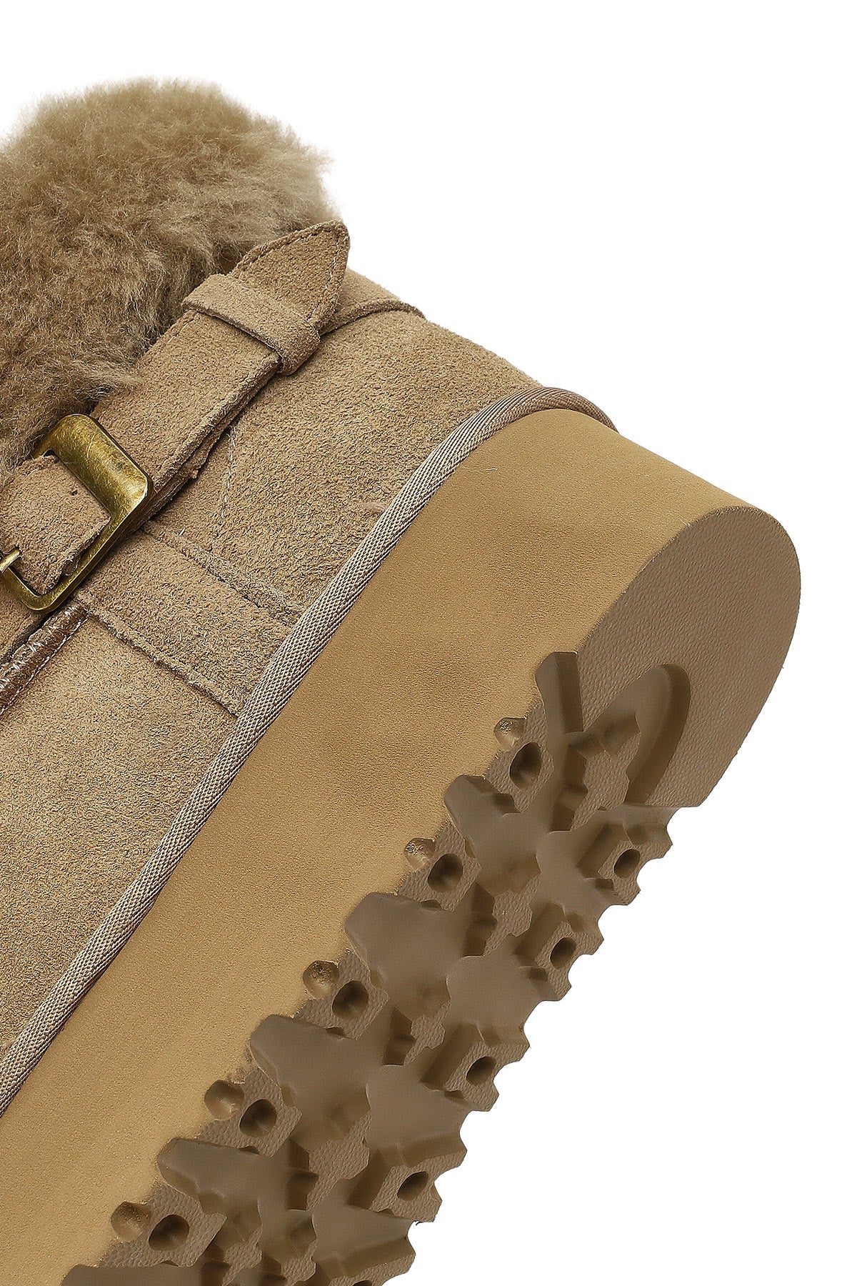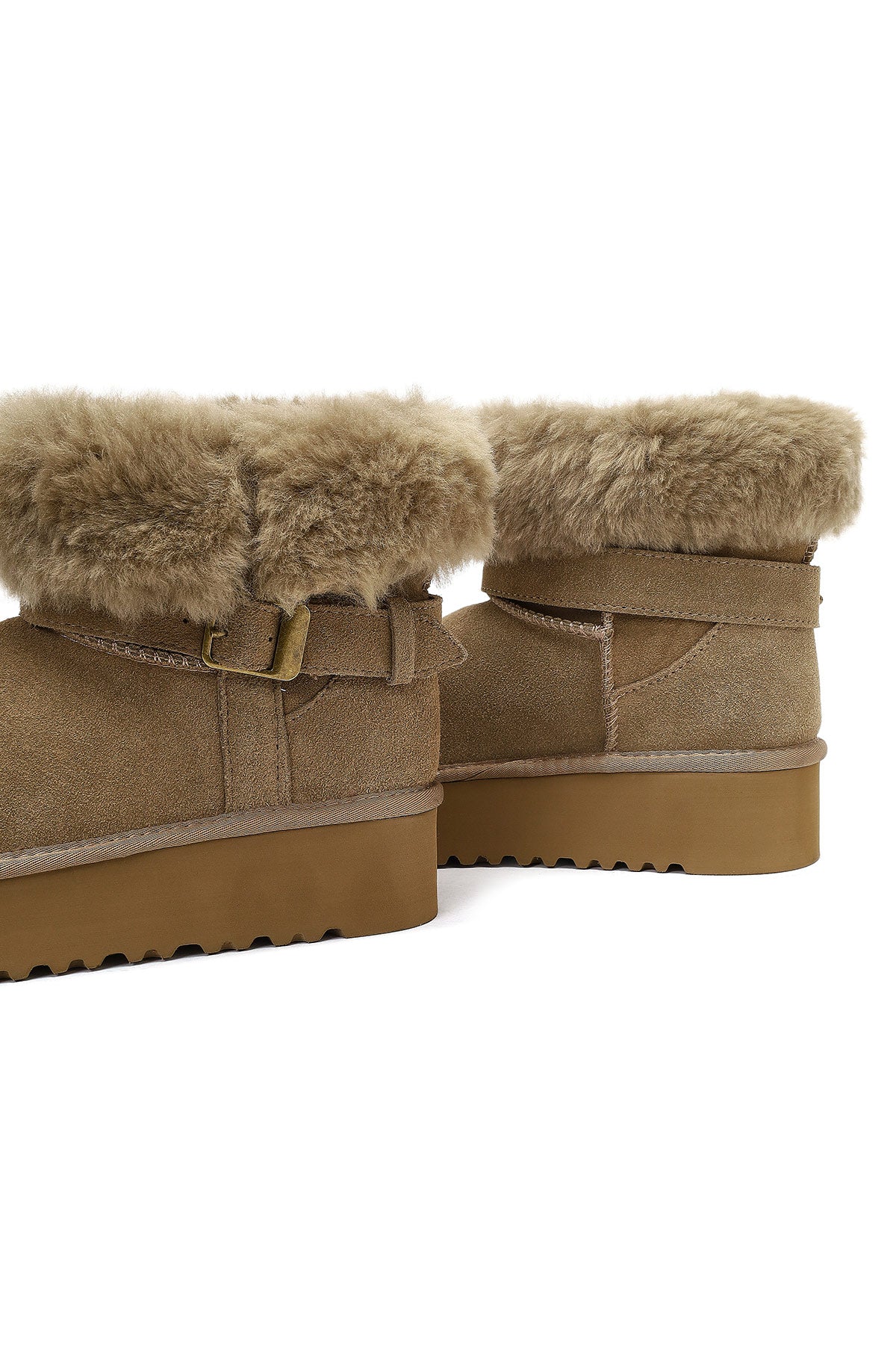 Kadın Bej Kalın Tabanlı Kürk Detaylı Süet Deri Teddy Bot