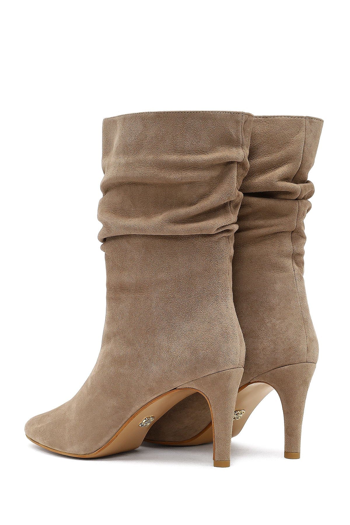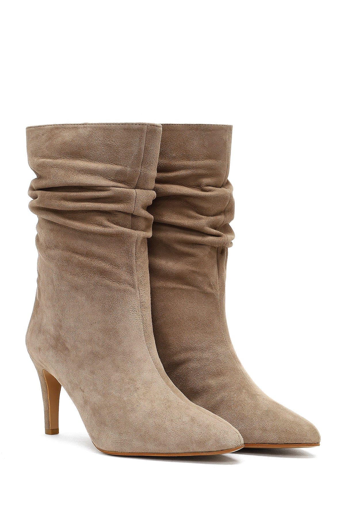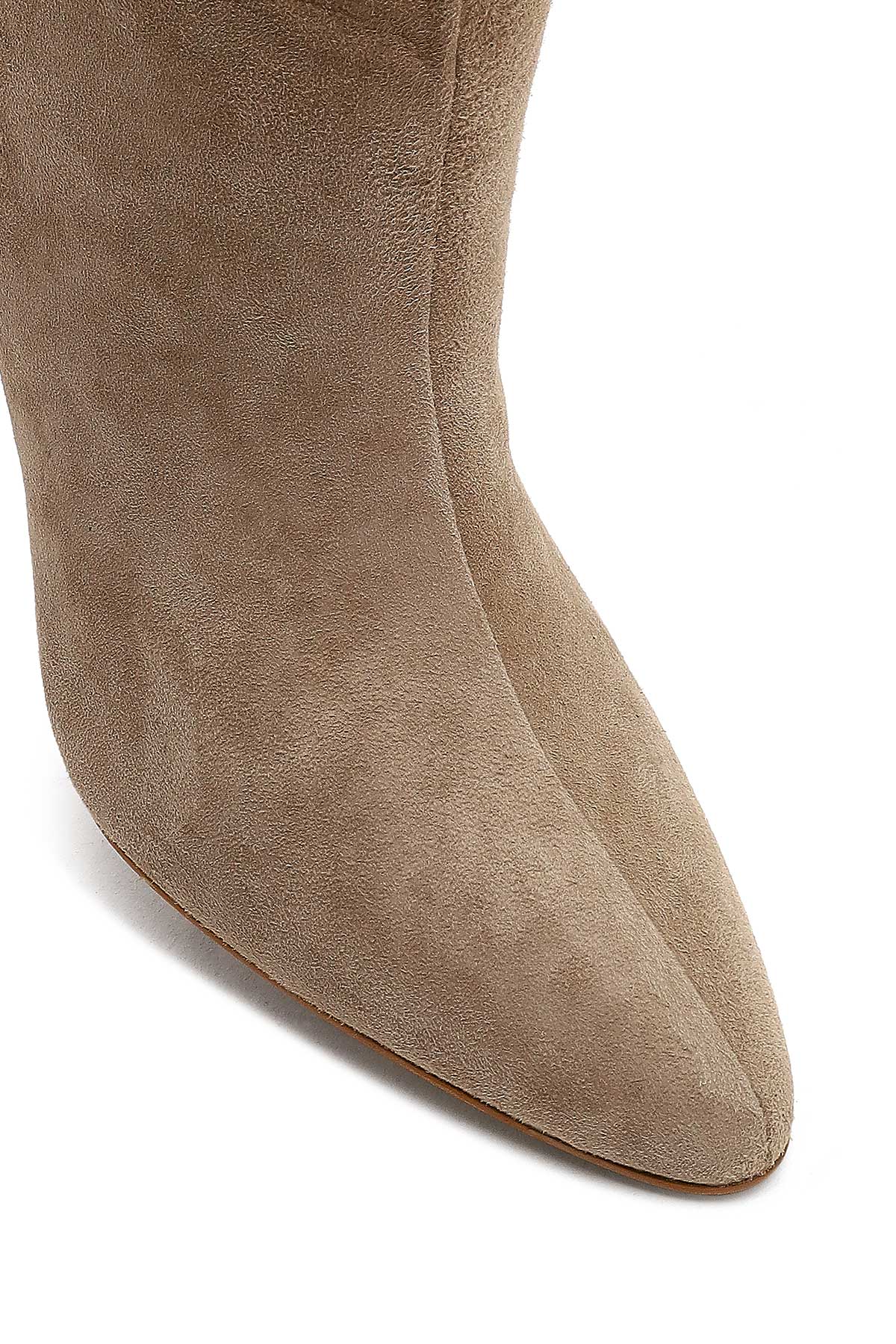 Kadın Bej İnce Topuklu Süet Deri Bot