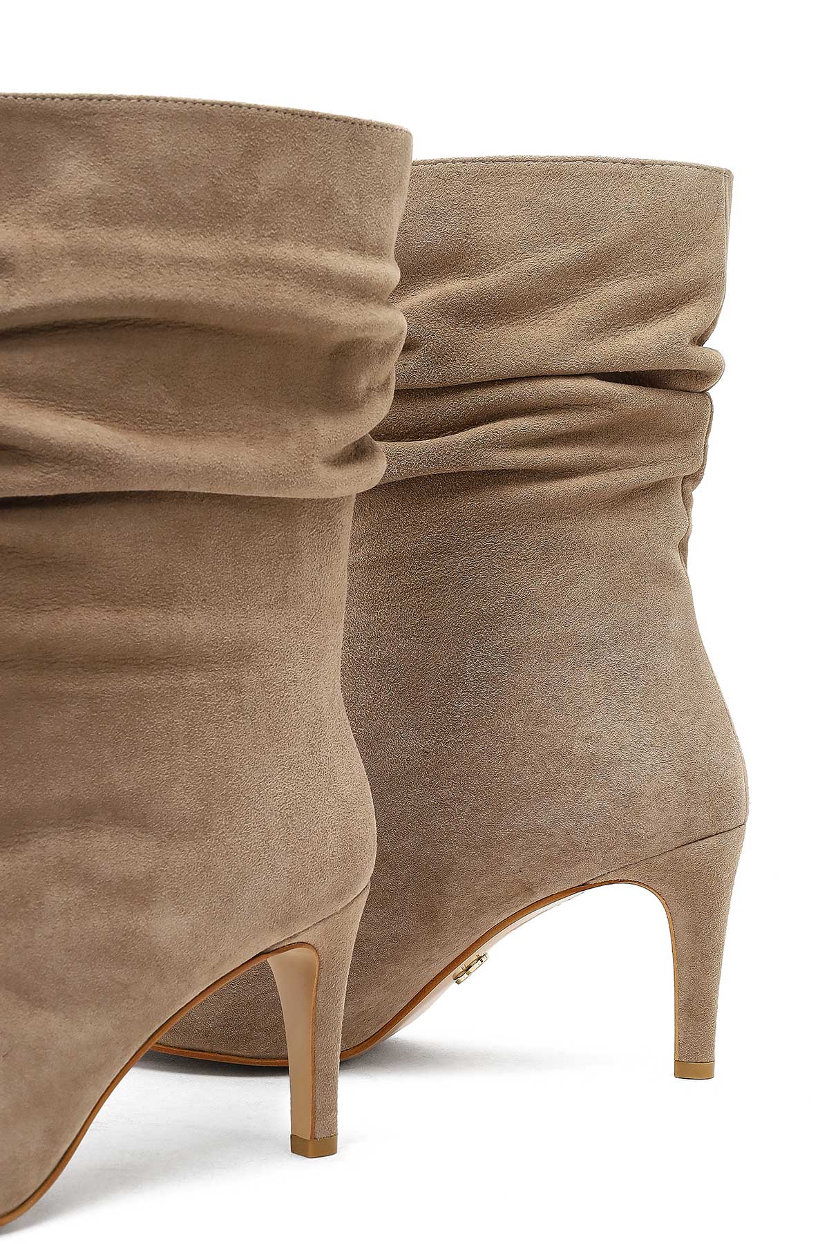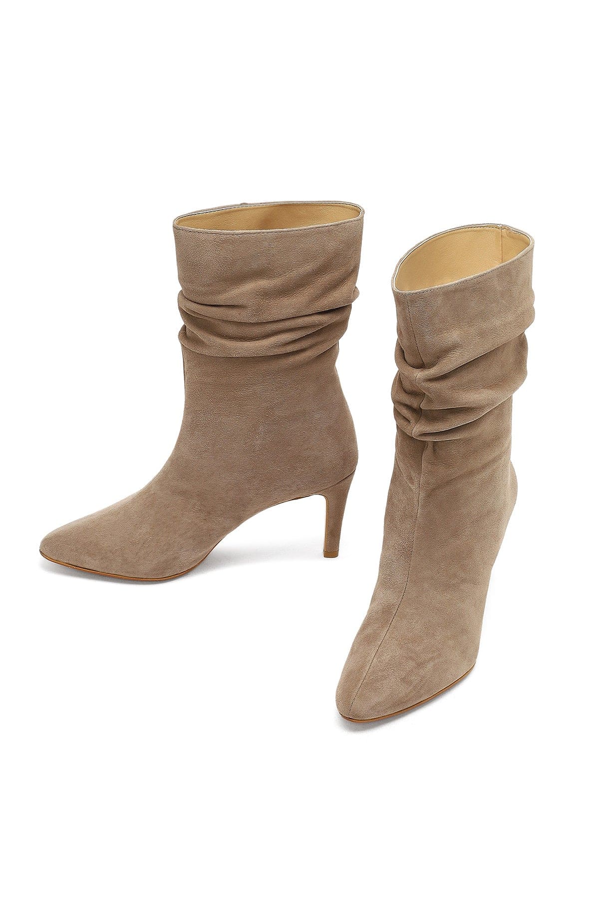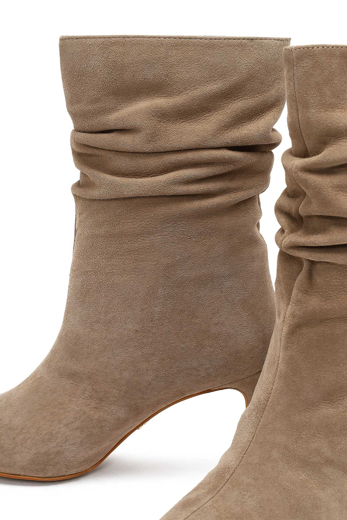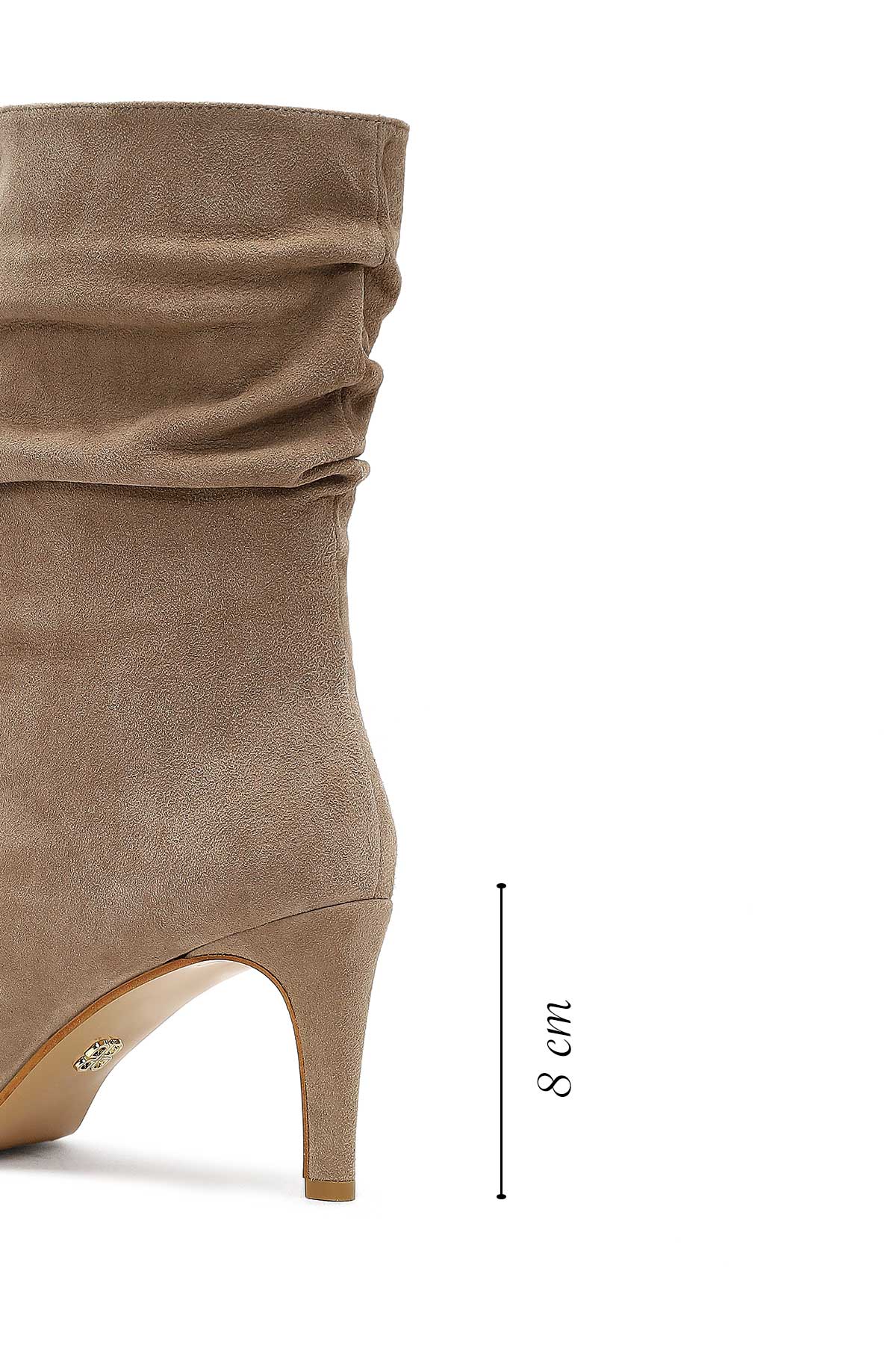 Kadın Bej İnce Topuklu Süet Deri Bot