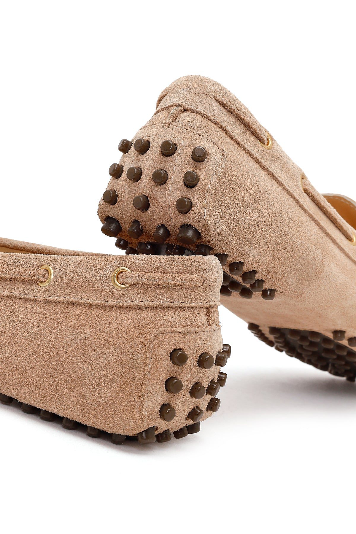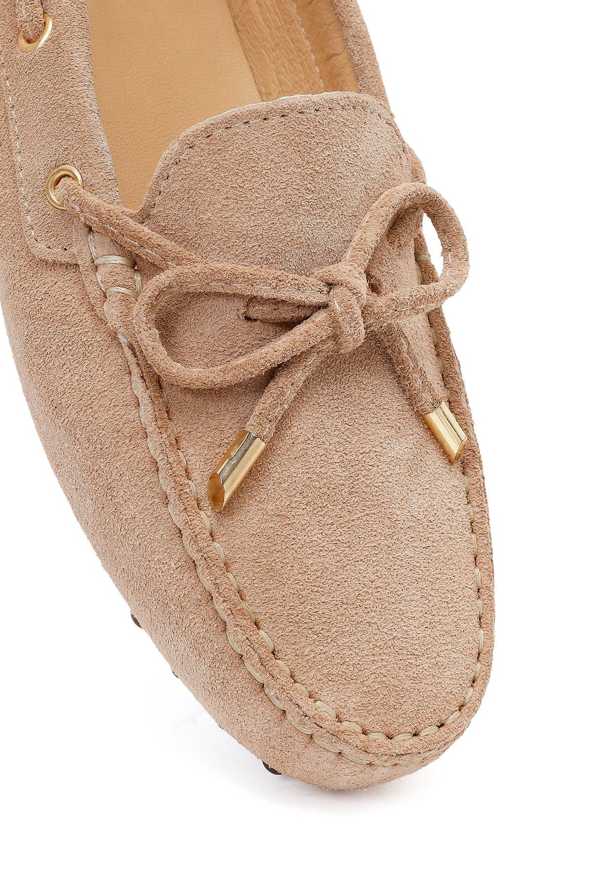 Kadın Bej Püsküllü Süet Deri Loafer