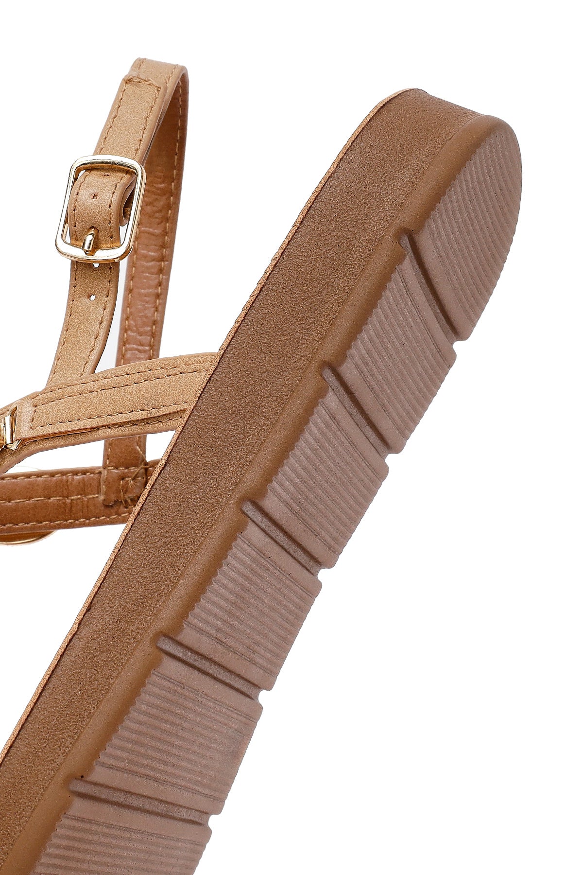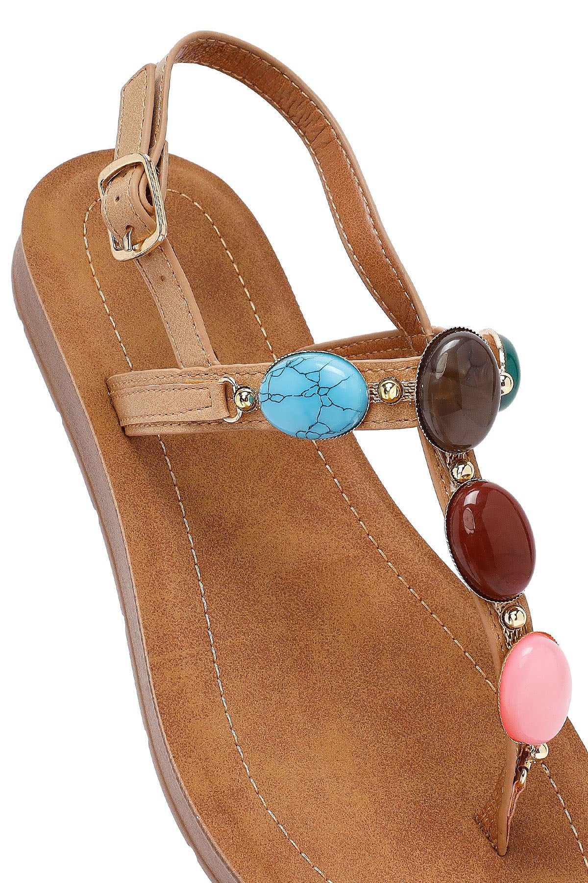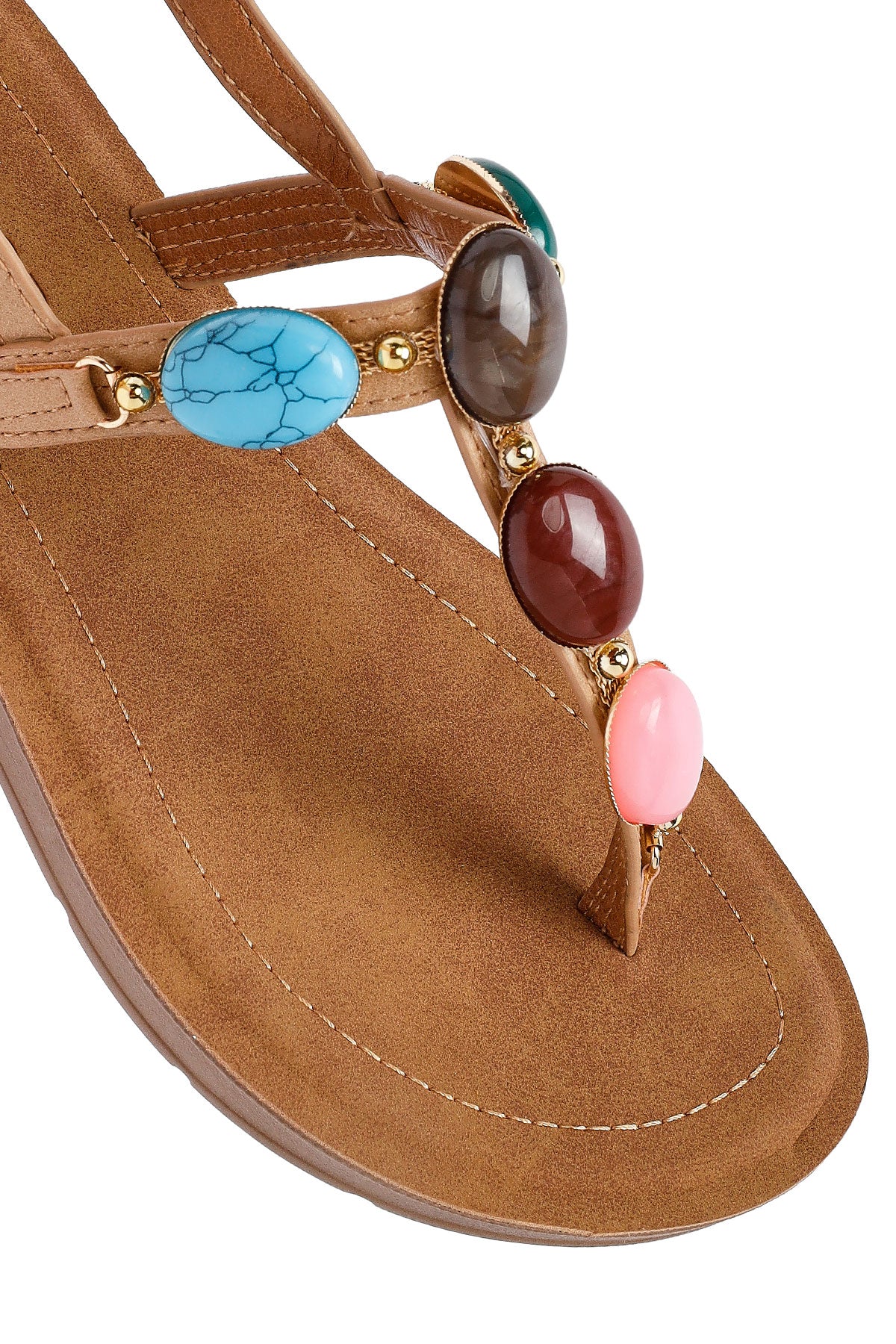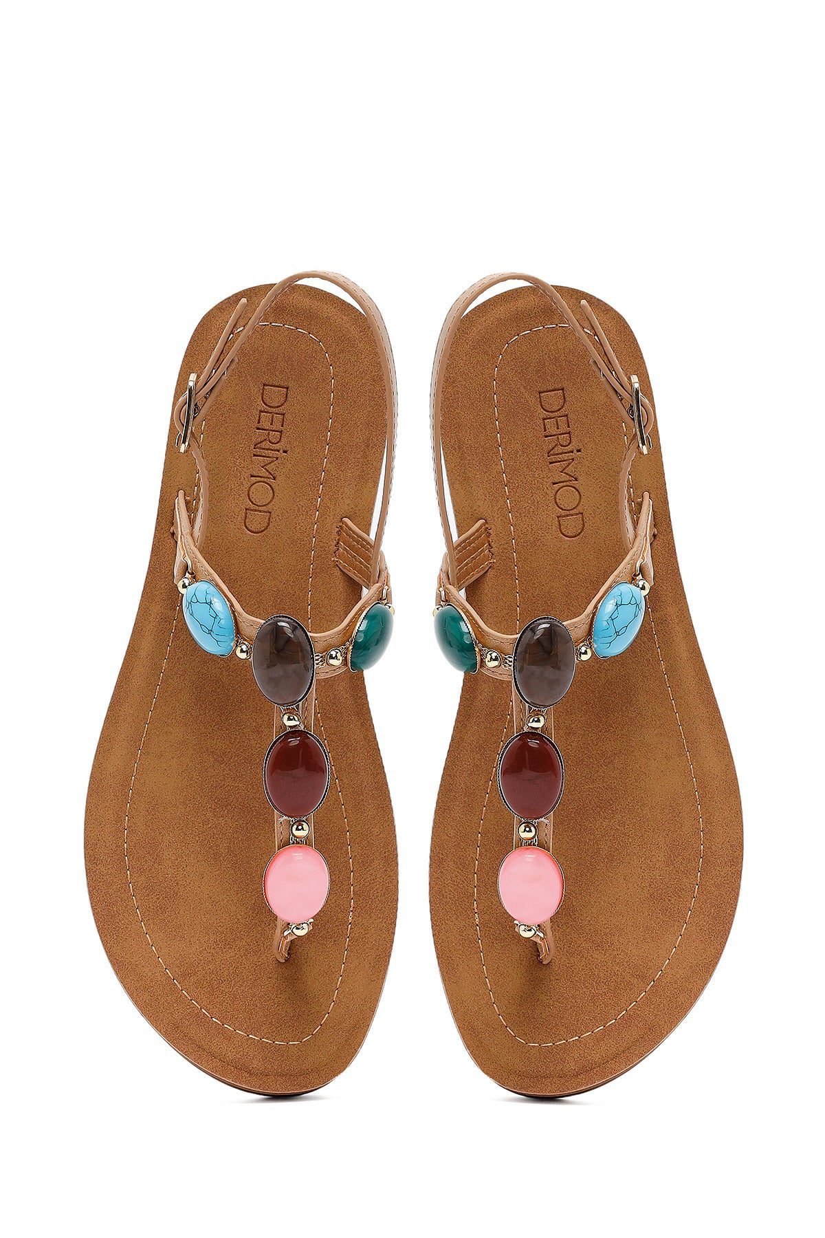Kadın Bej Parmak Arası Taşlı Sandalet