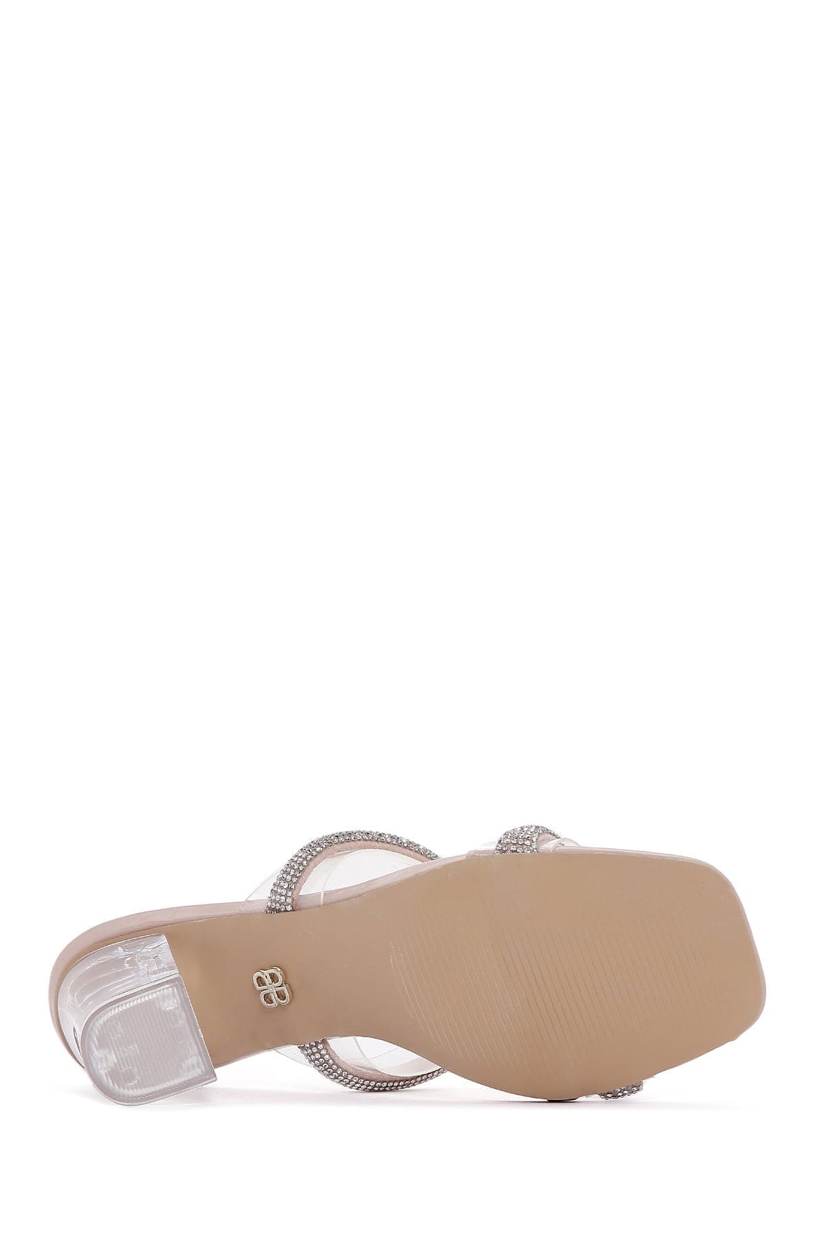 Kadın Bej Taşlı Şeffaf Kalın Topuklu Terlik