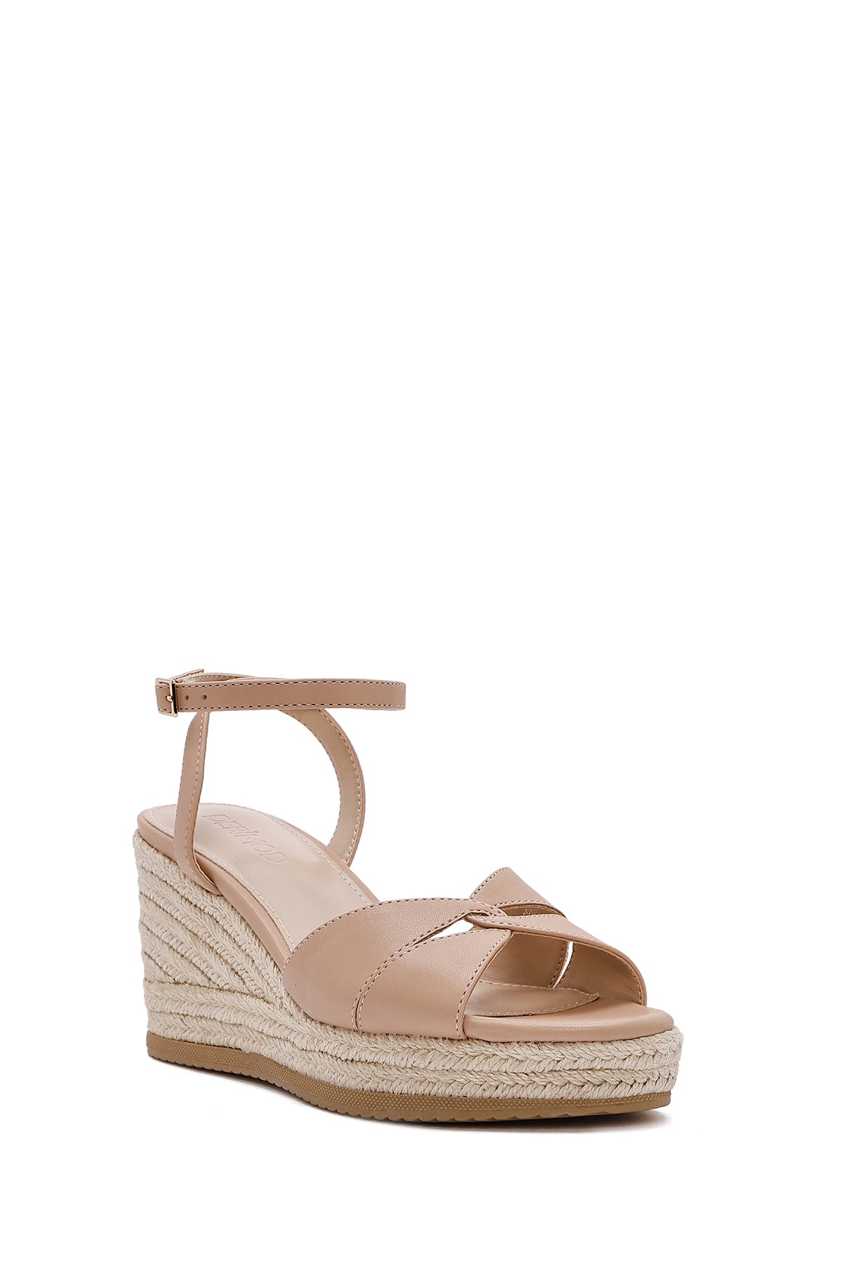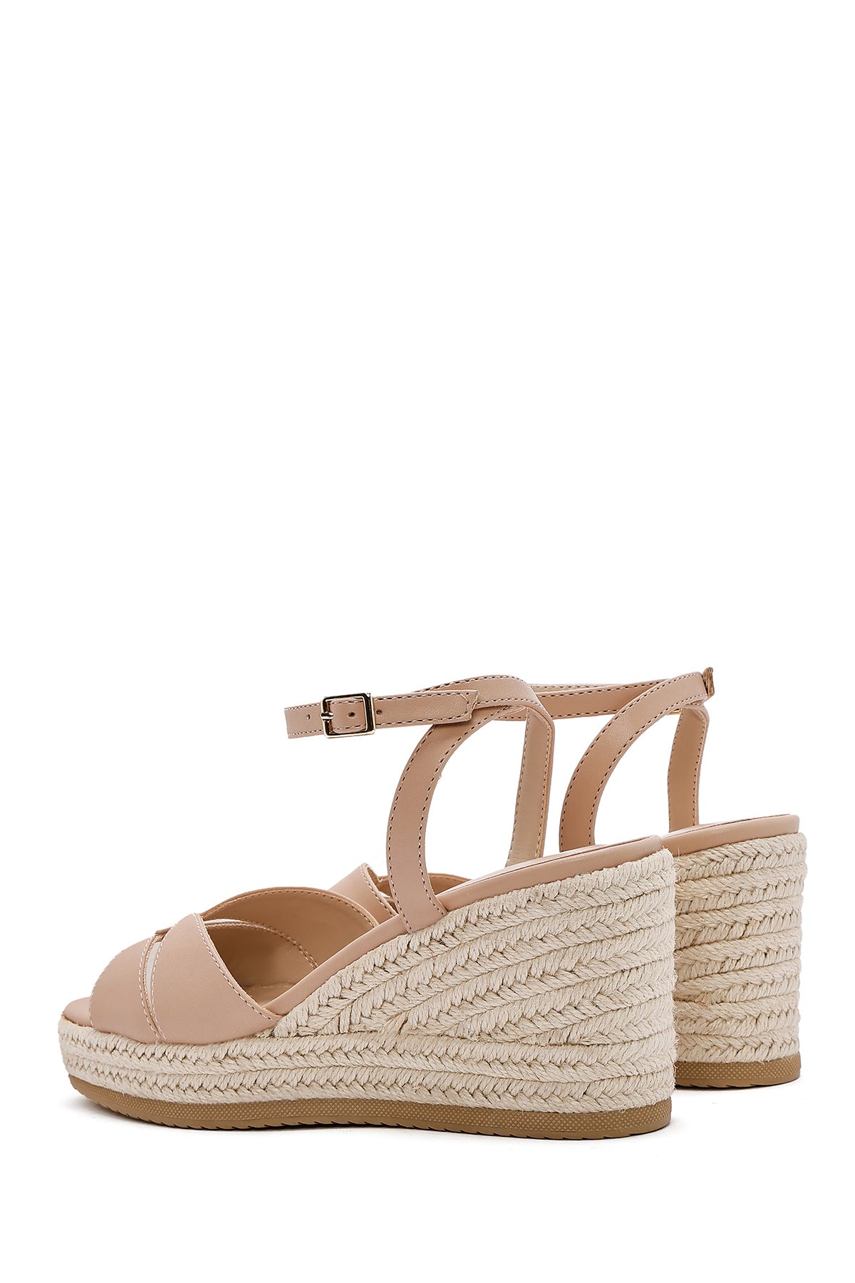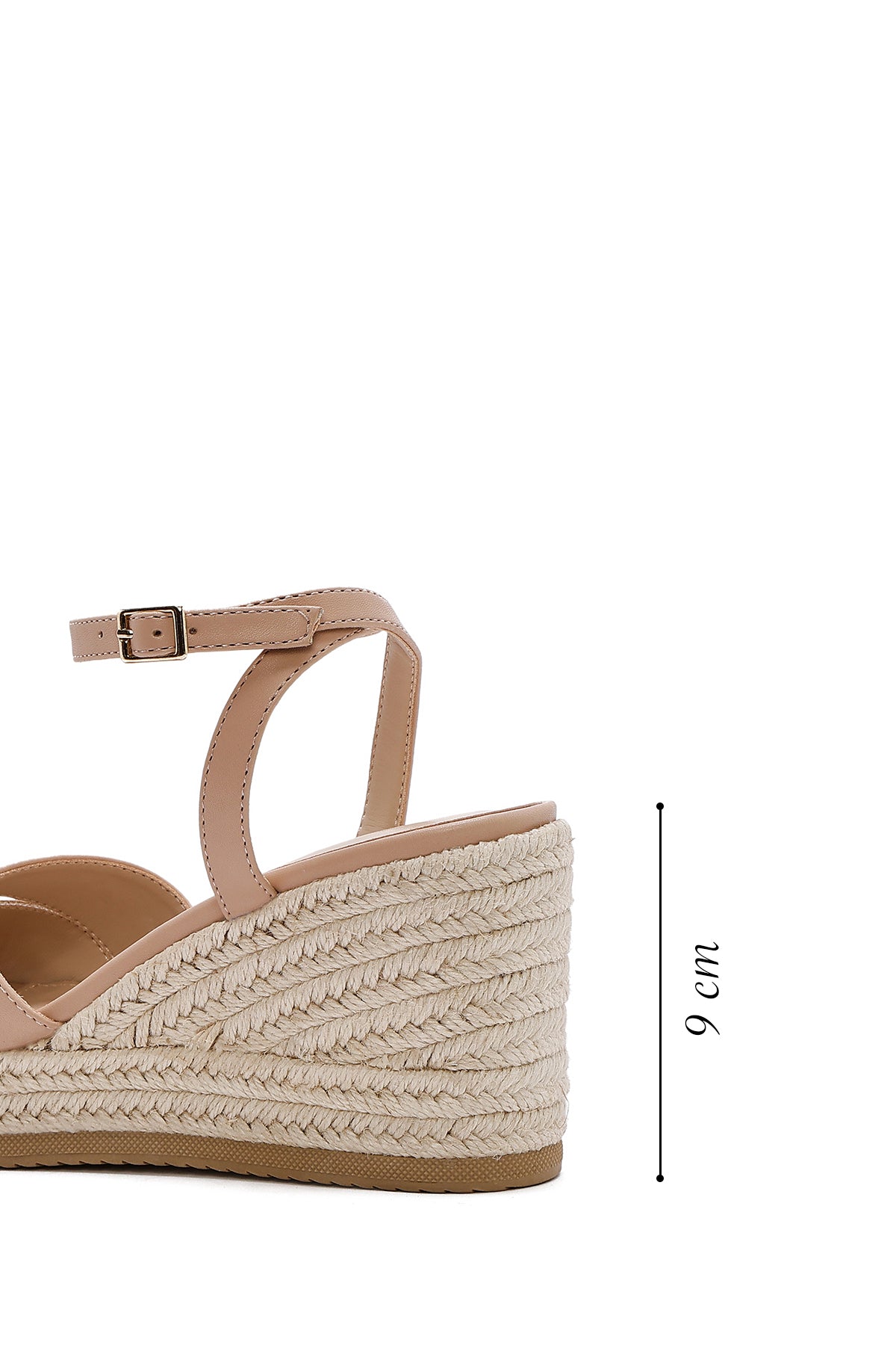 Kadın Bej Bilekten Tokalı Dolgu Topuklu Espadril Sandalet