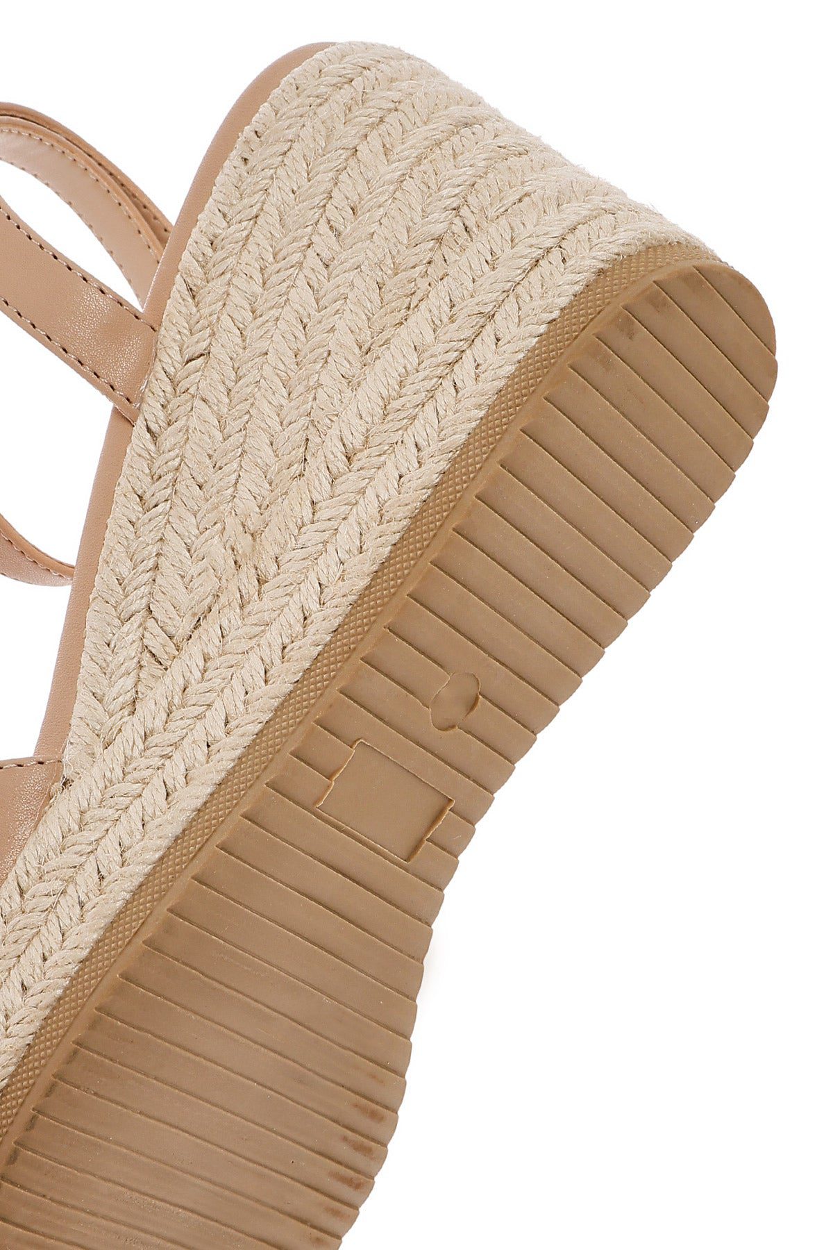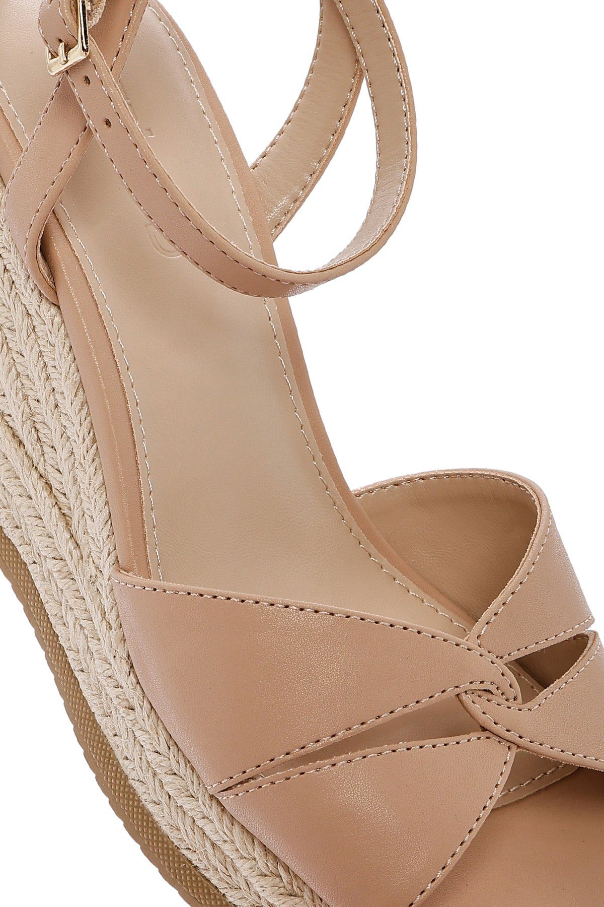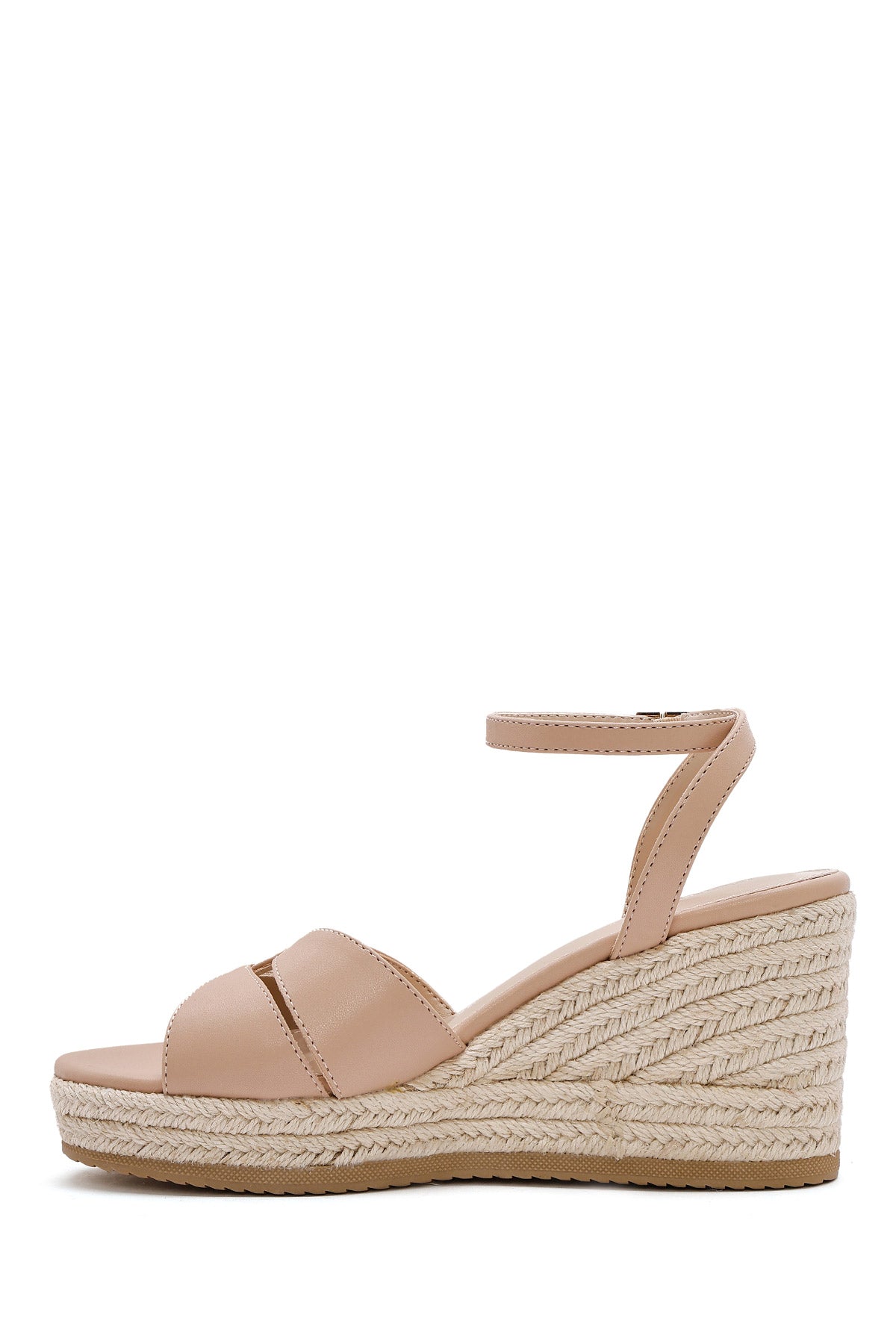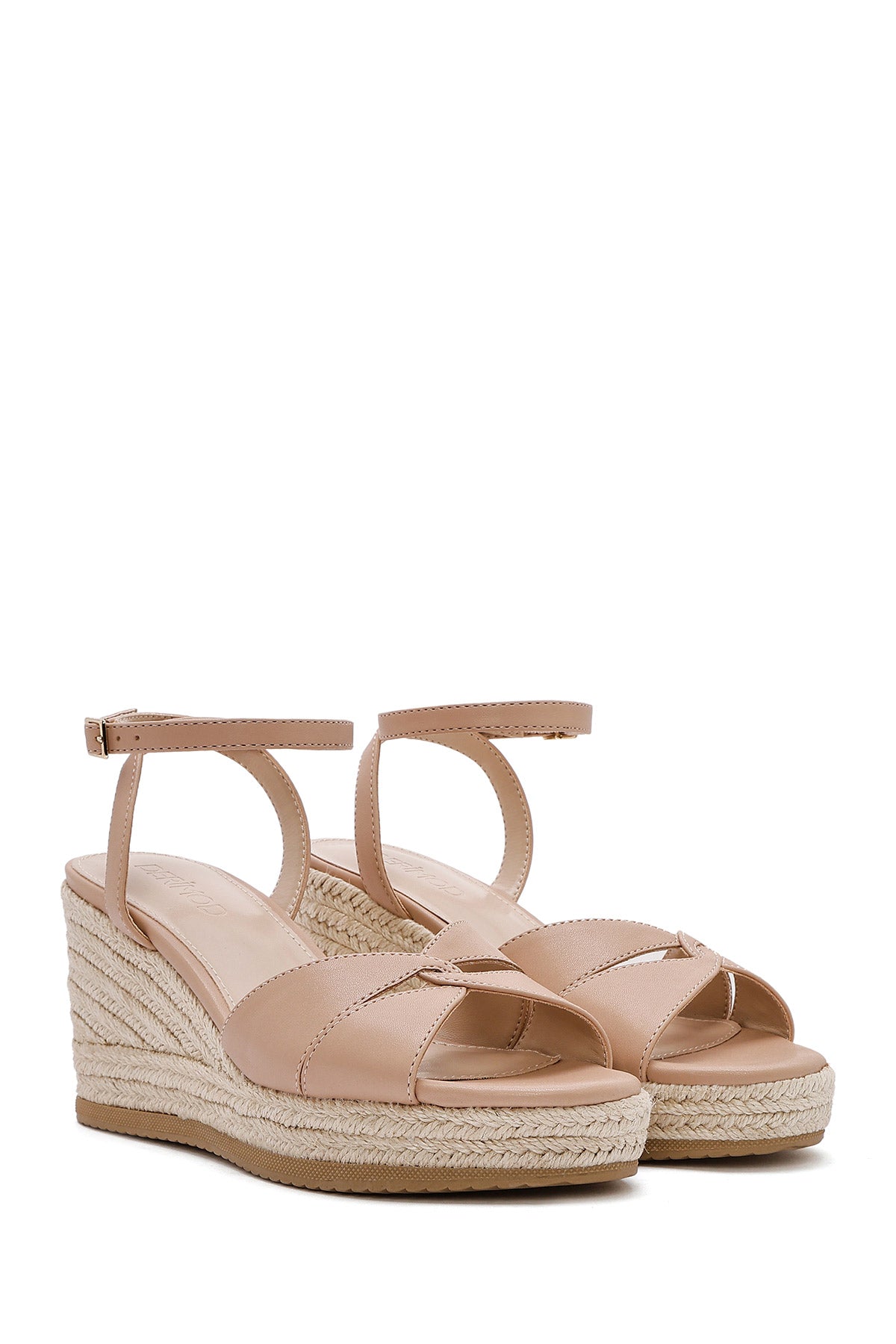 Kadın Bej Bilekten Tokalı Dolgu Topuklu Espadril Sandalet