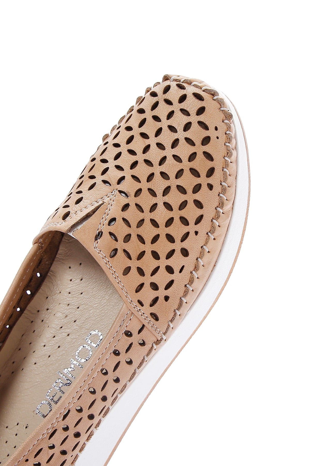 Kadın Bej Kalın Tabanlı Deri Comfort Loafer