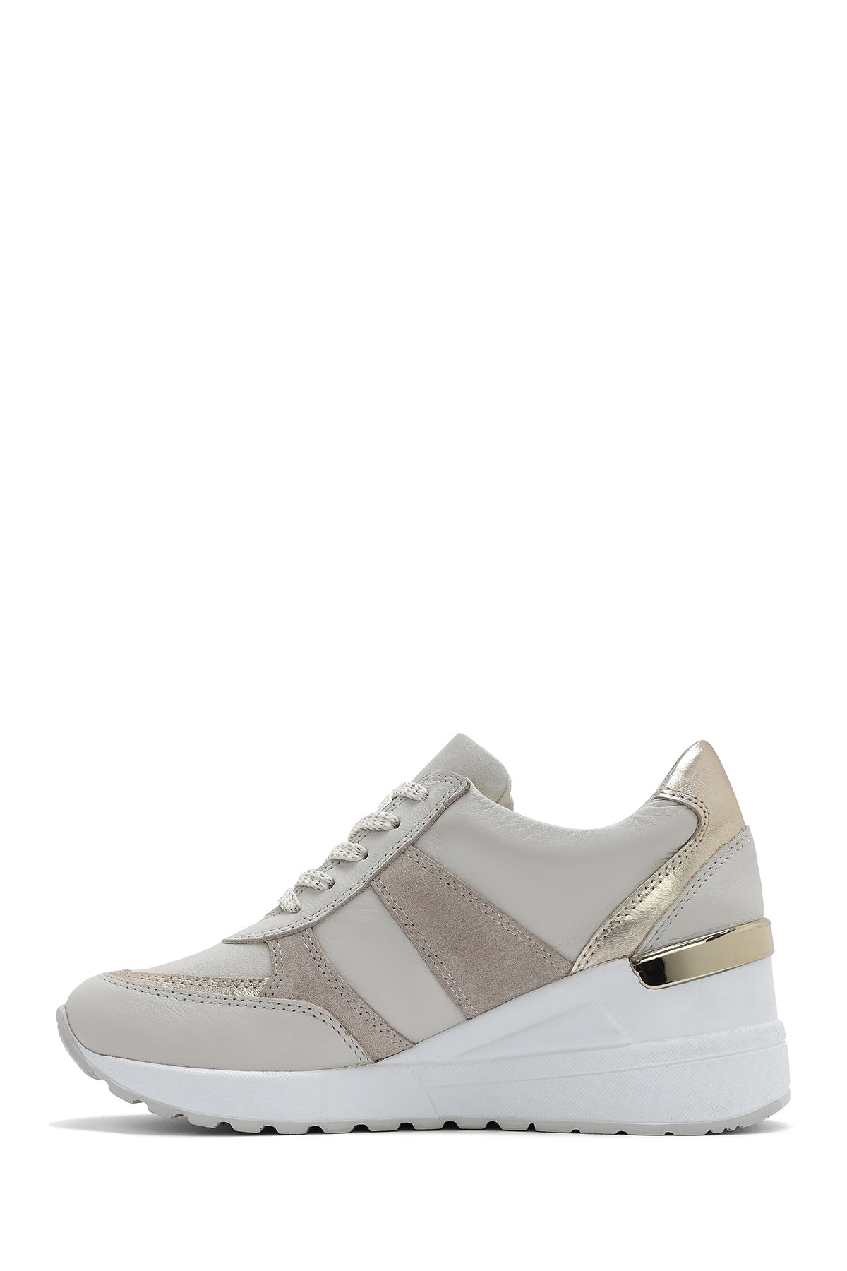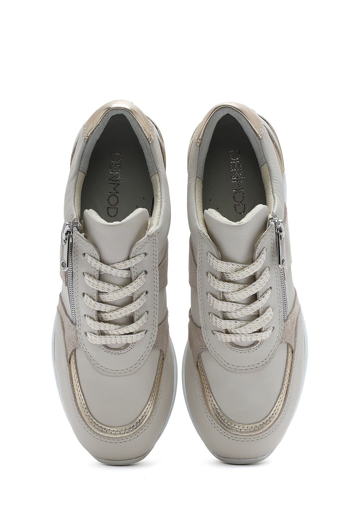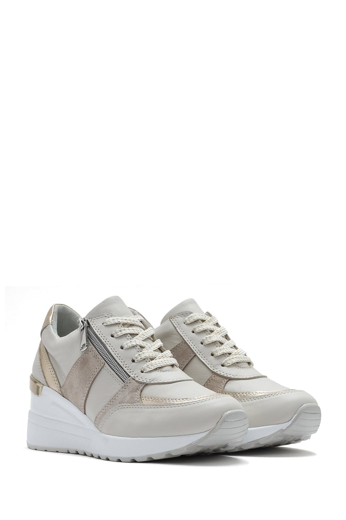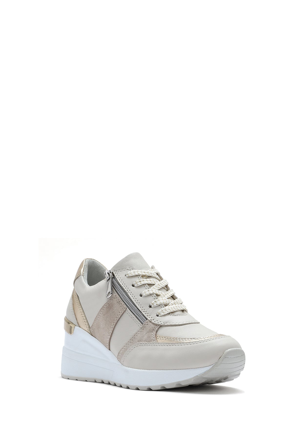 Kadın Bej Dolgu Topuklu Yandan Fermuarlı Deri Sneaker
