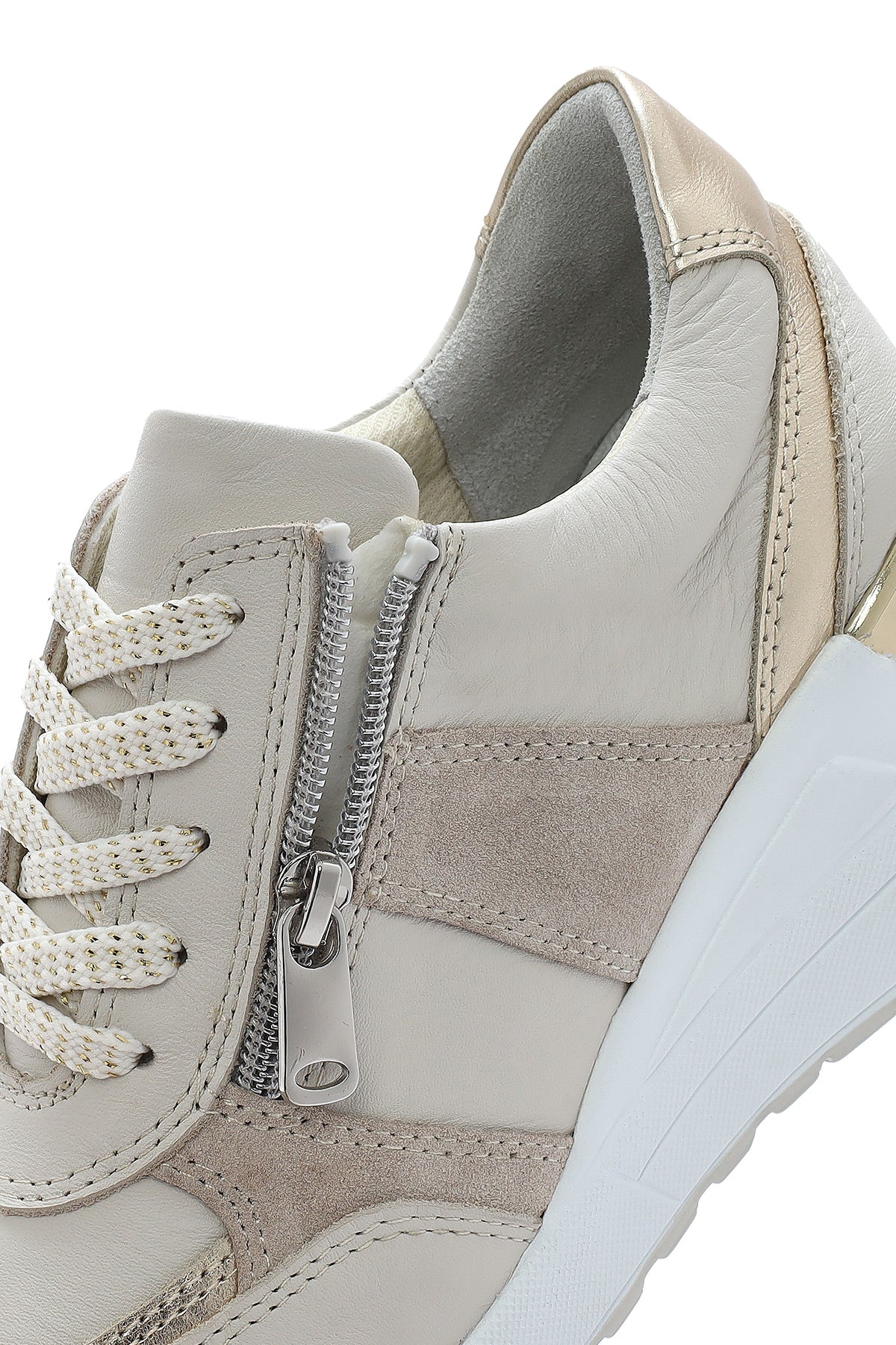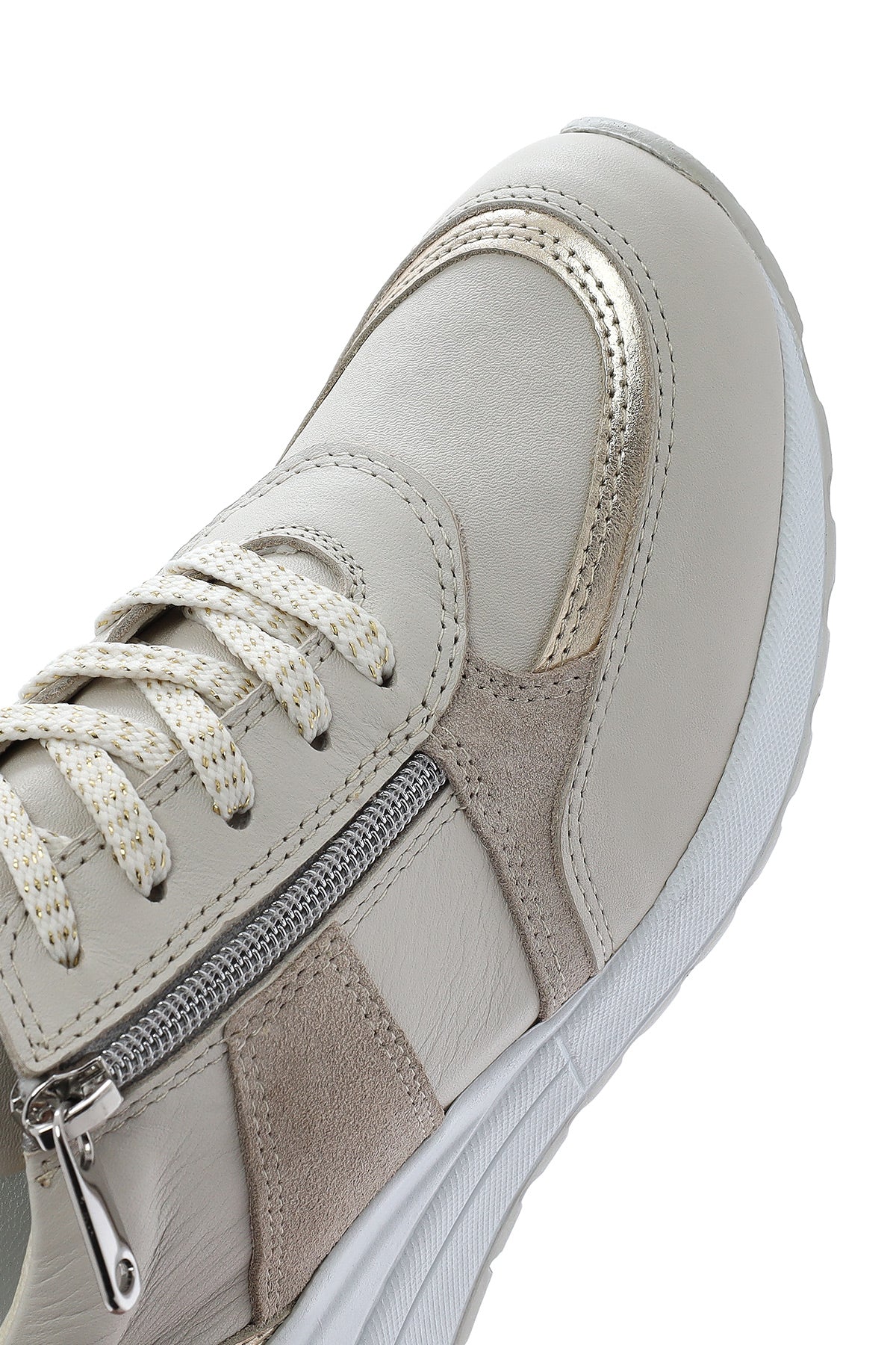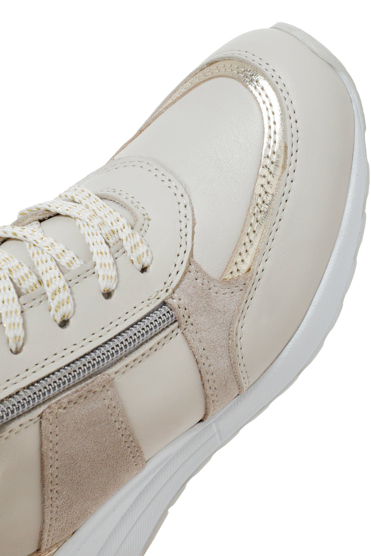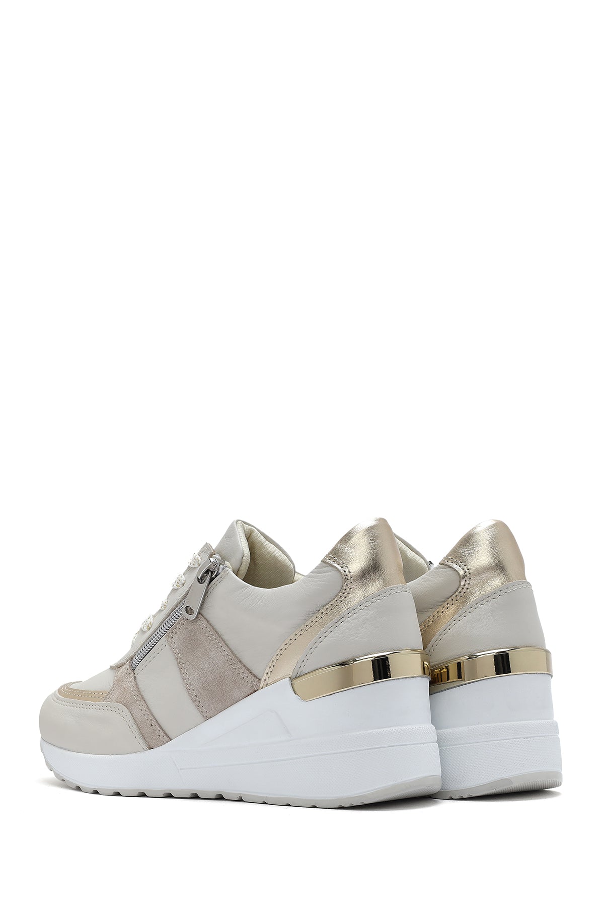 Kadın Bej Dolgu Topuklu Yandan Fermuarlı Deri Sneaker