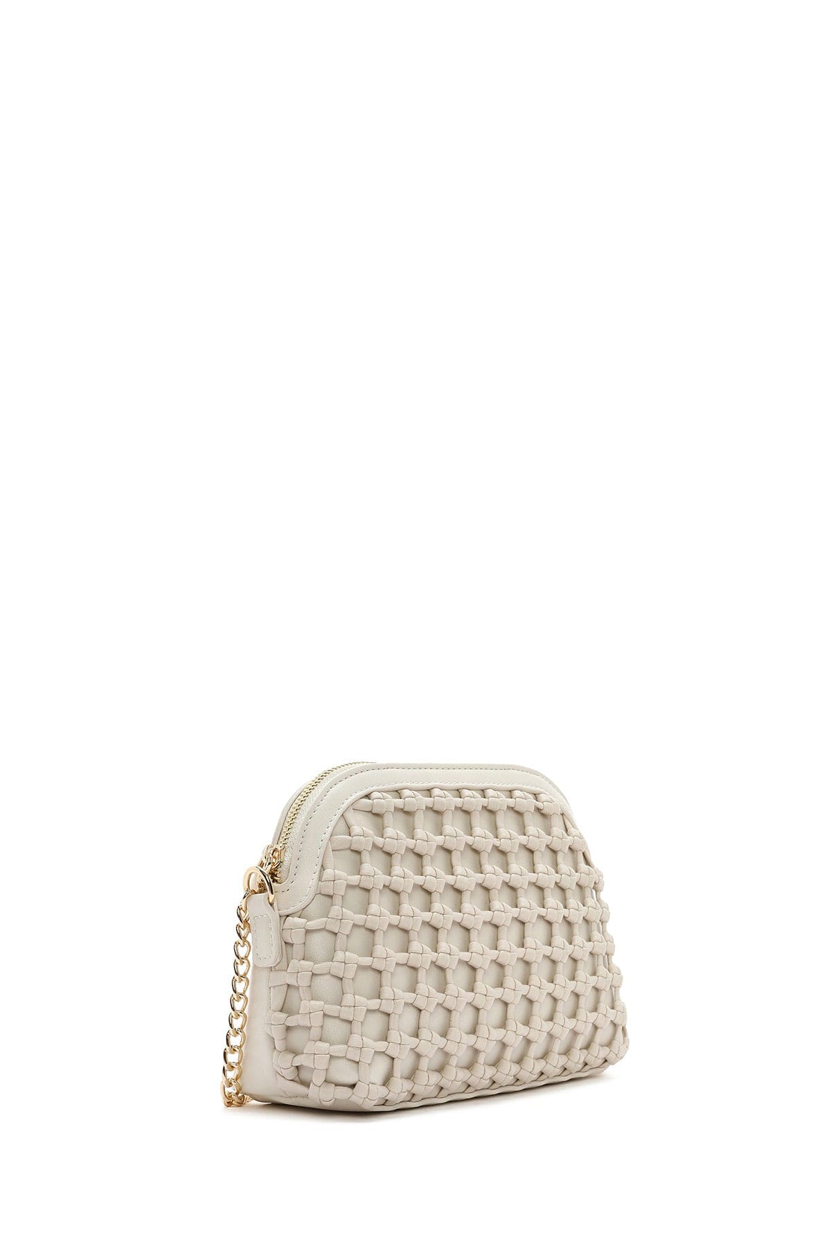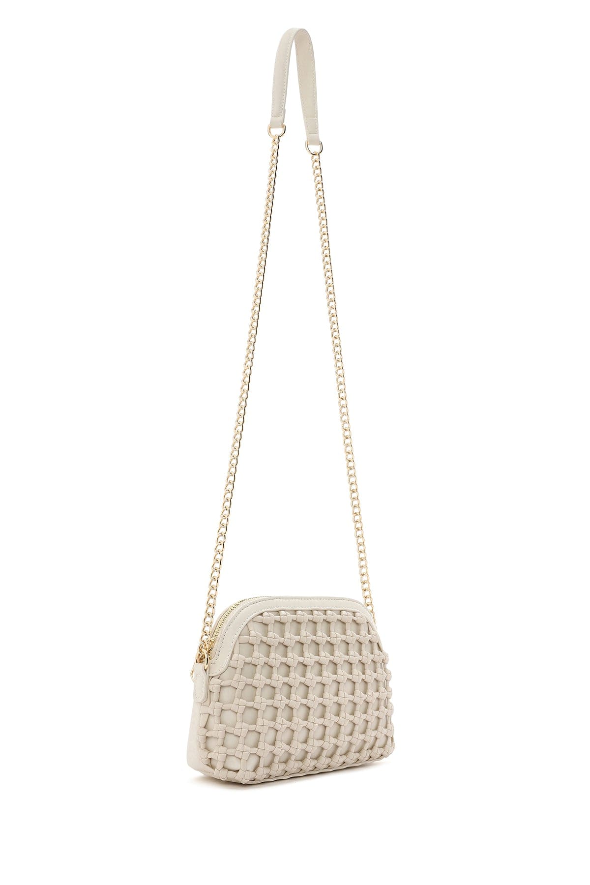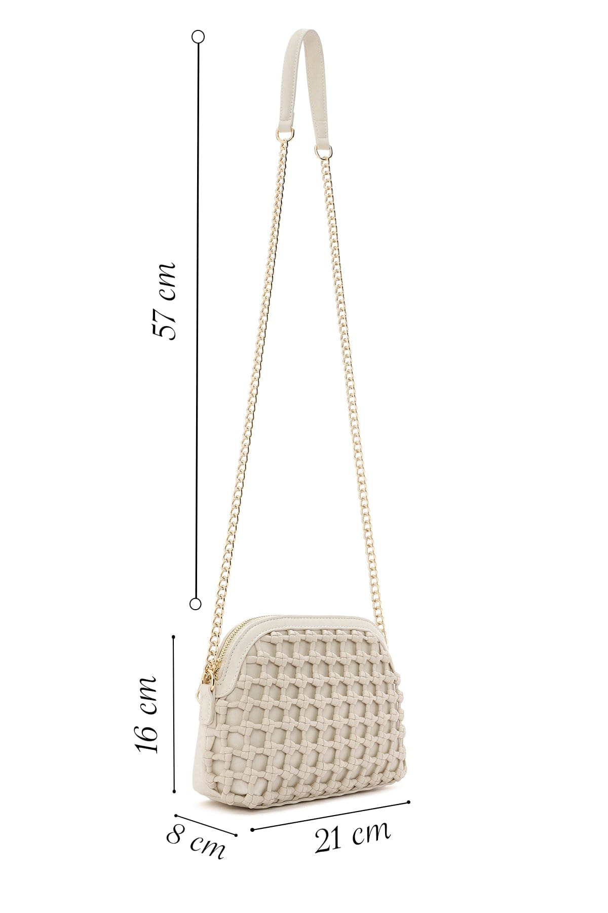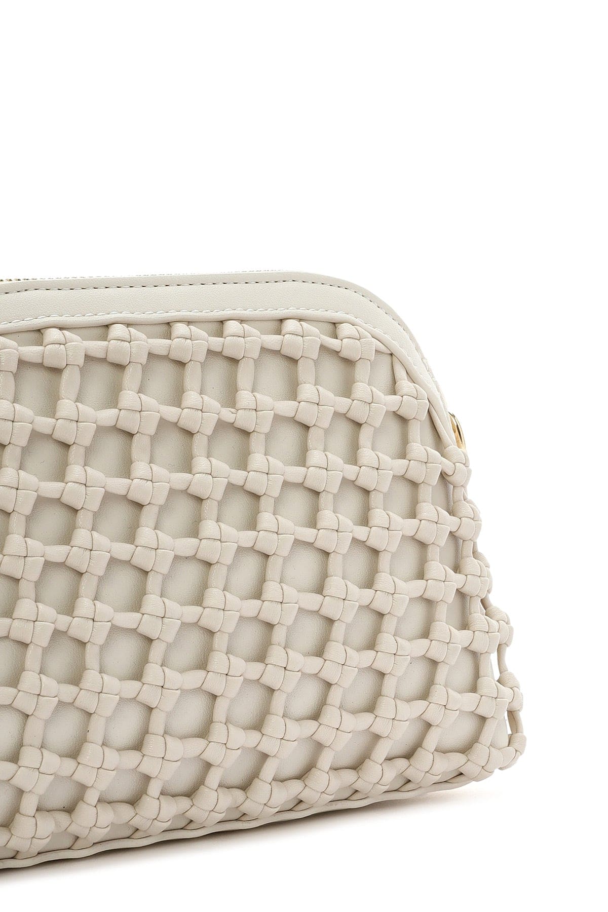 Kadın Bej Örgü Desenli Uzun Askılı Çapraz Çanta