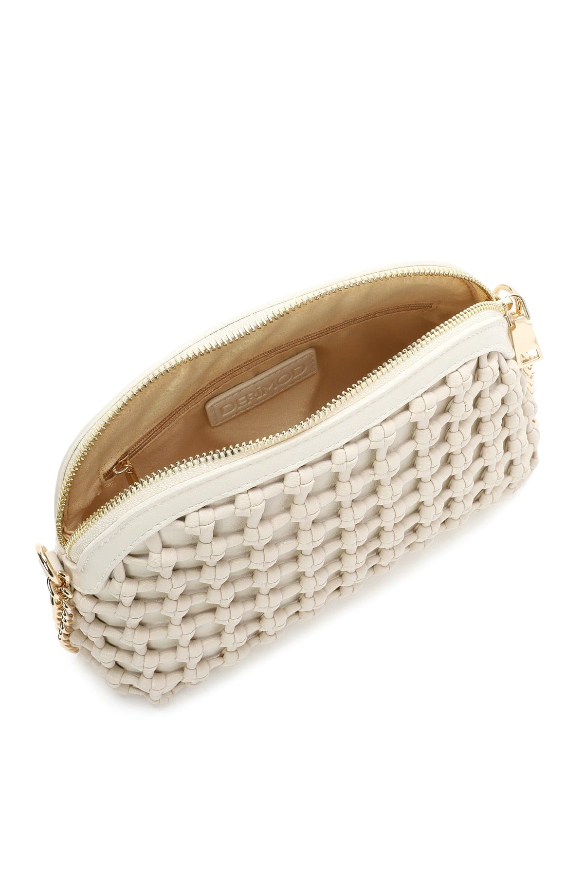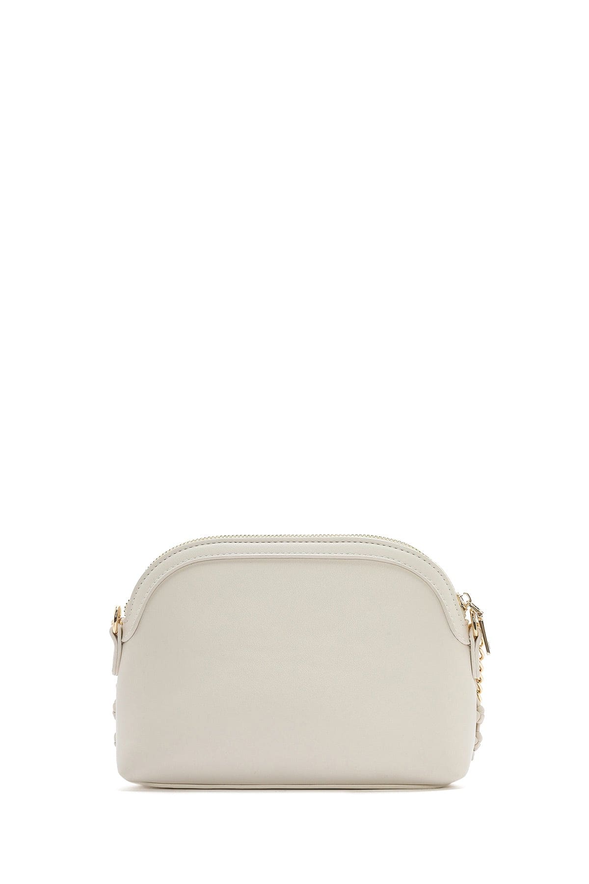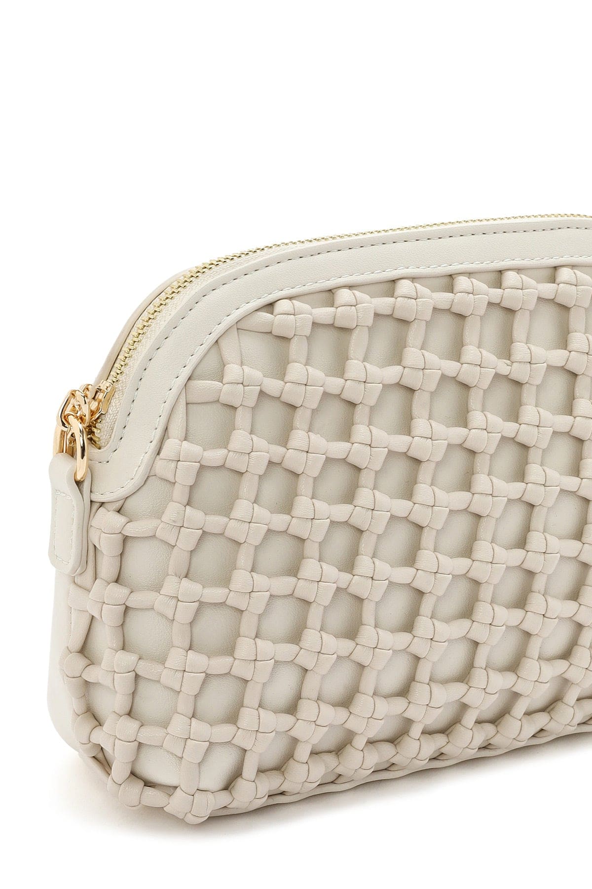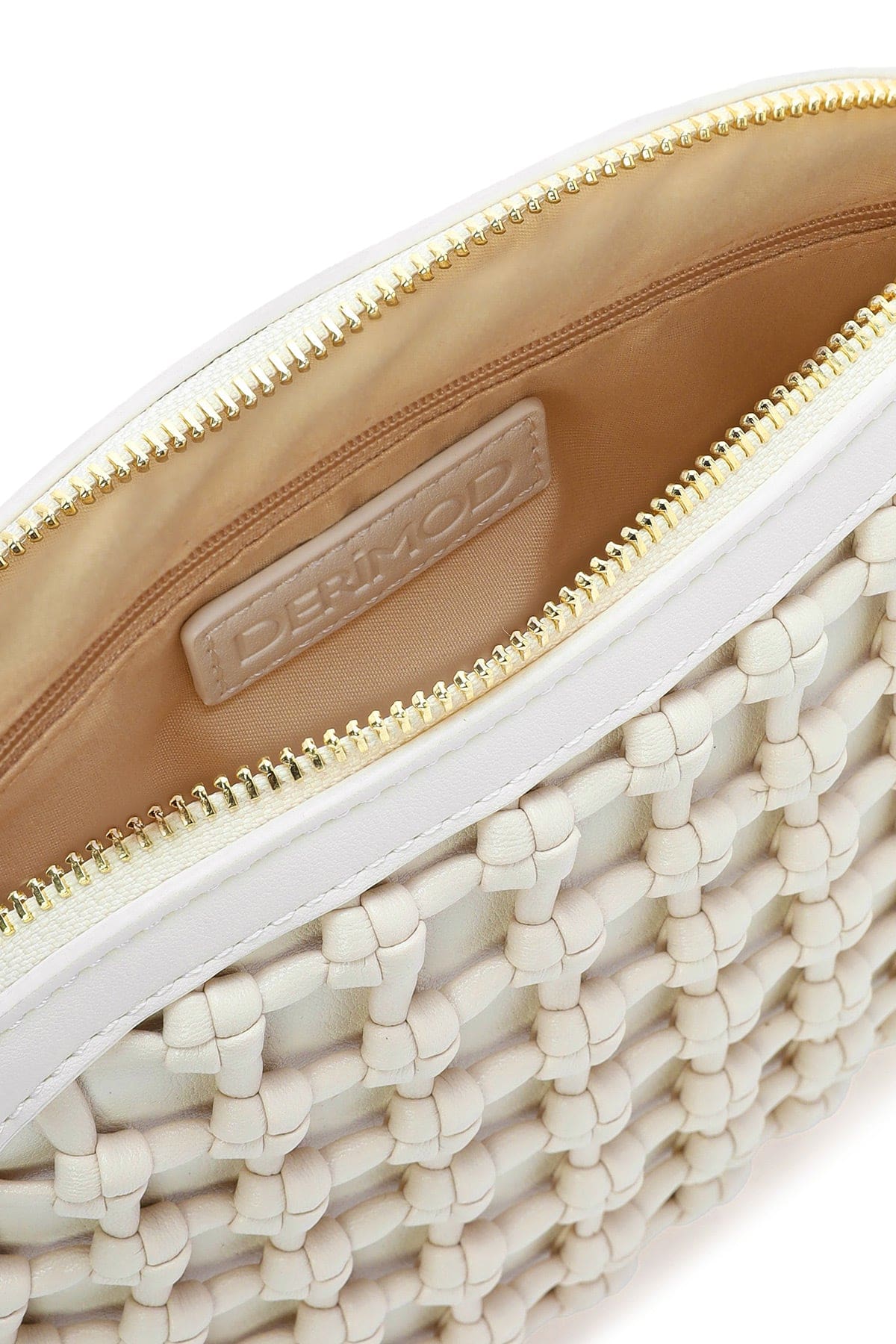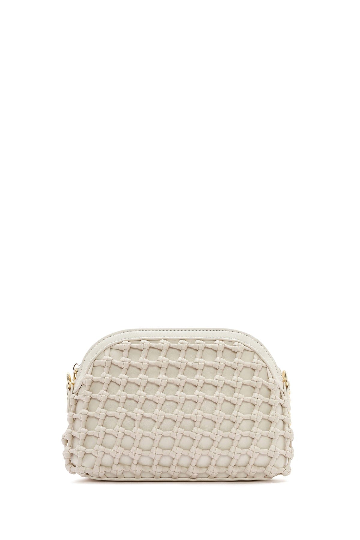 Kadın Bej Örgü Desenli Uzun Askılı Çapraz Çanta