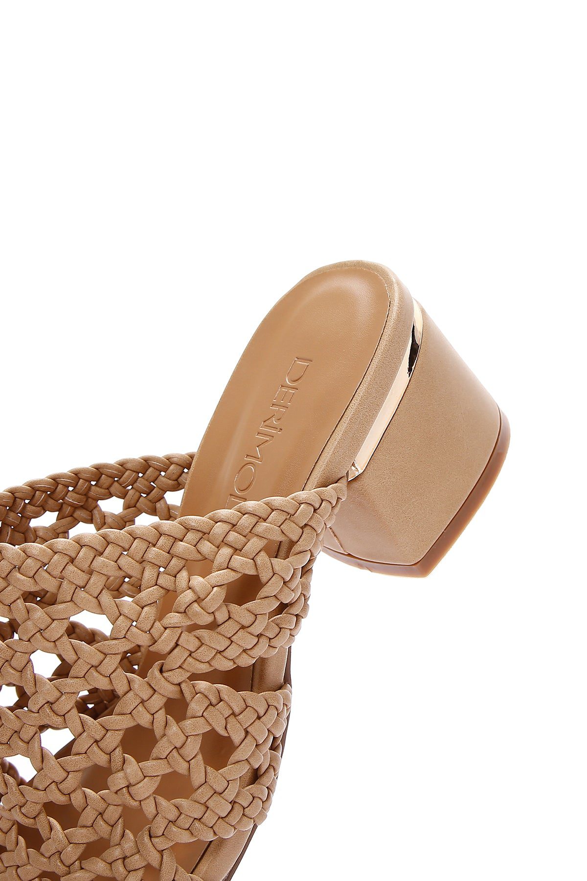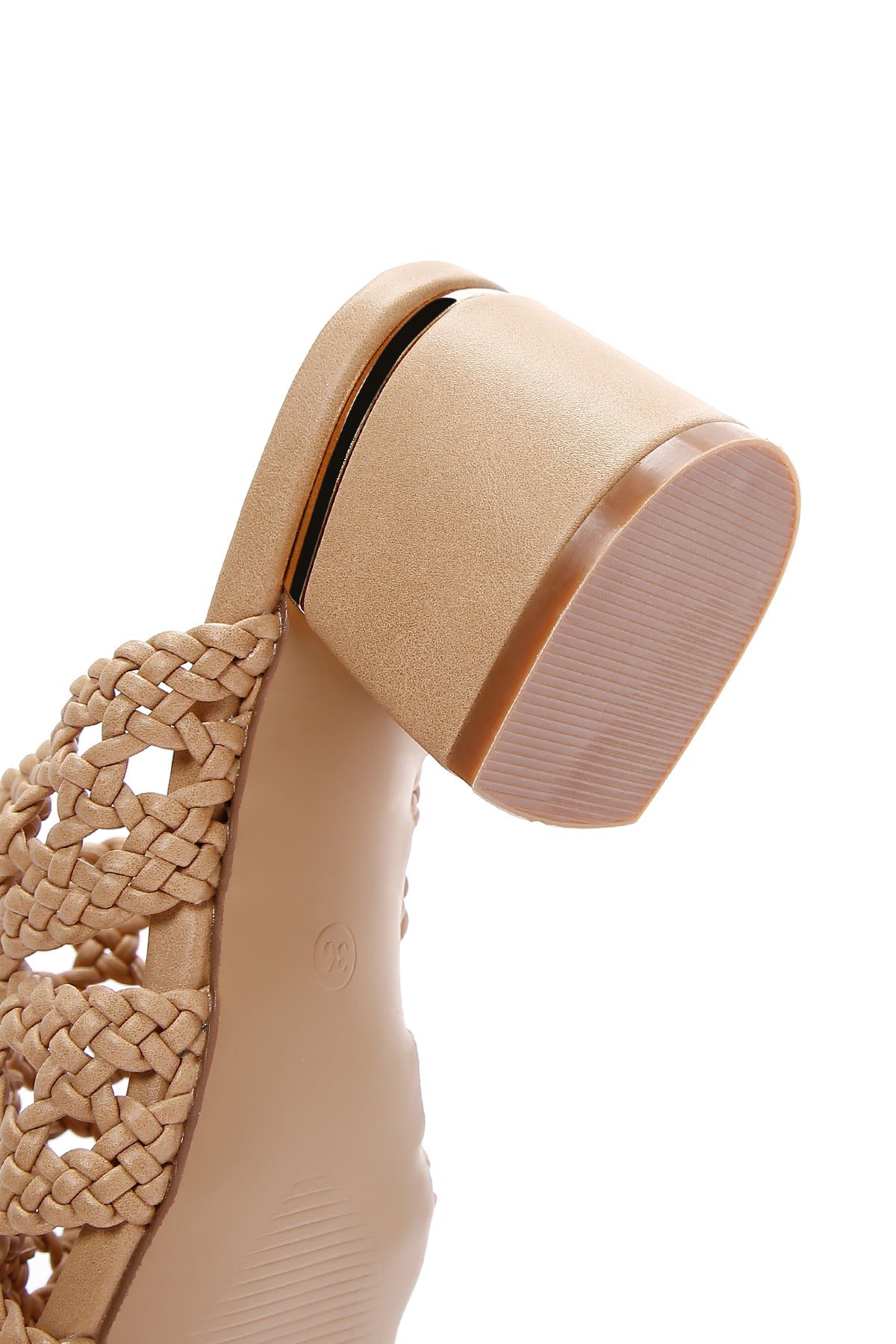 صندل زنانه بژ بافتدار پاشنهضخیم کوتاه دری مد