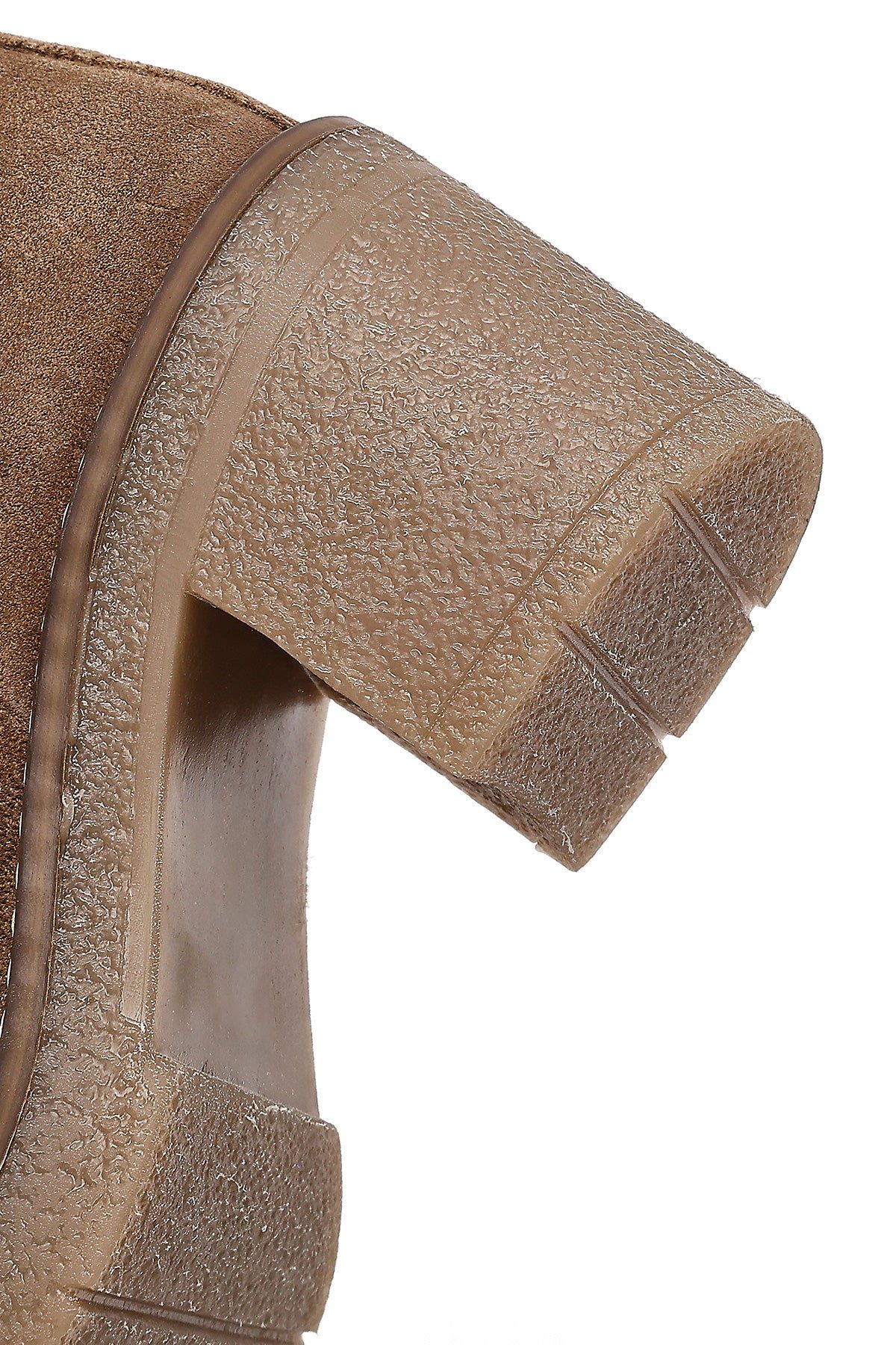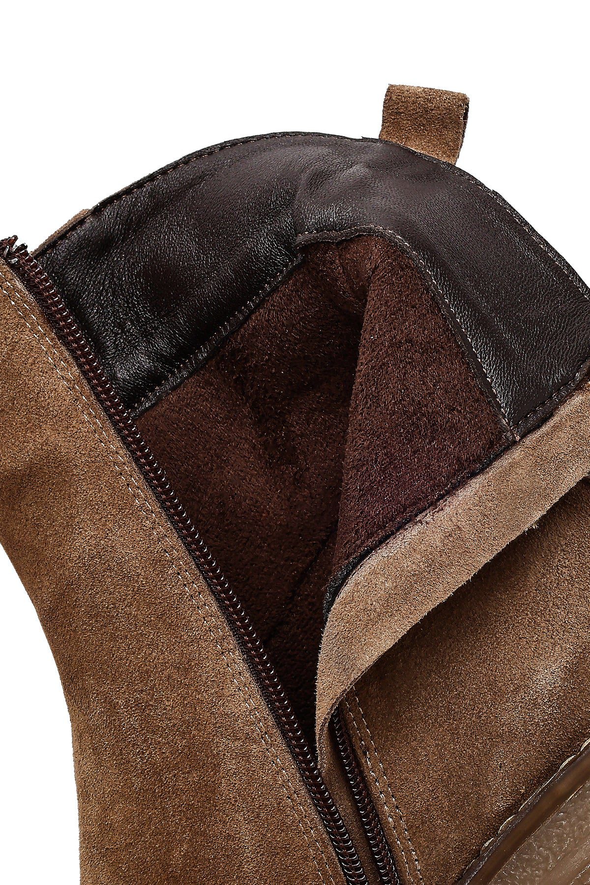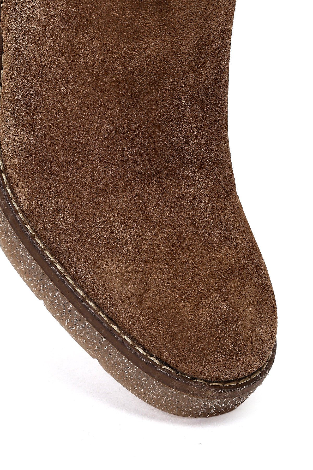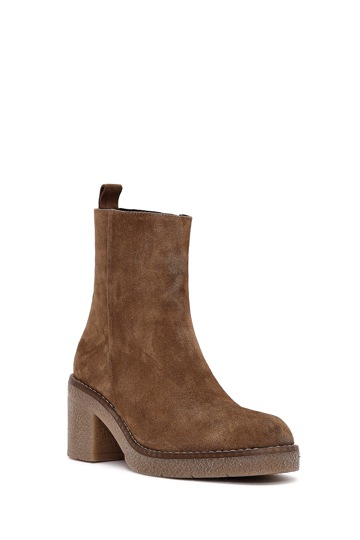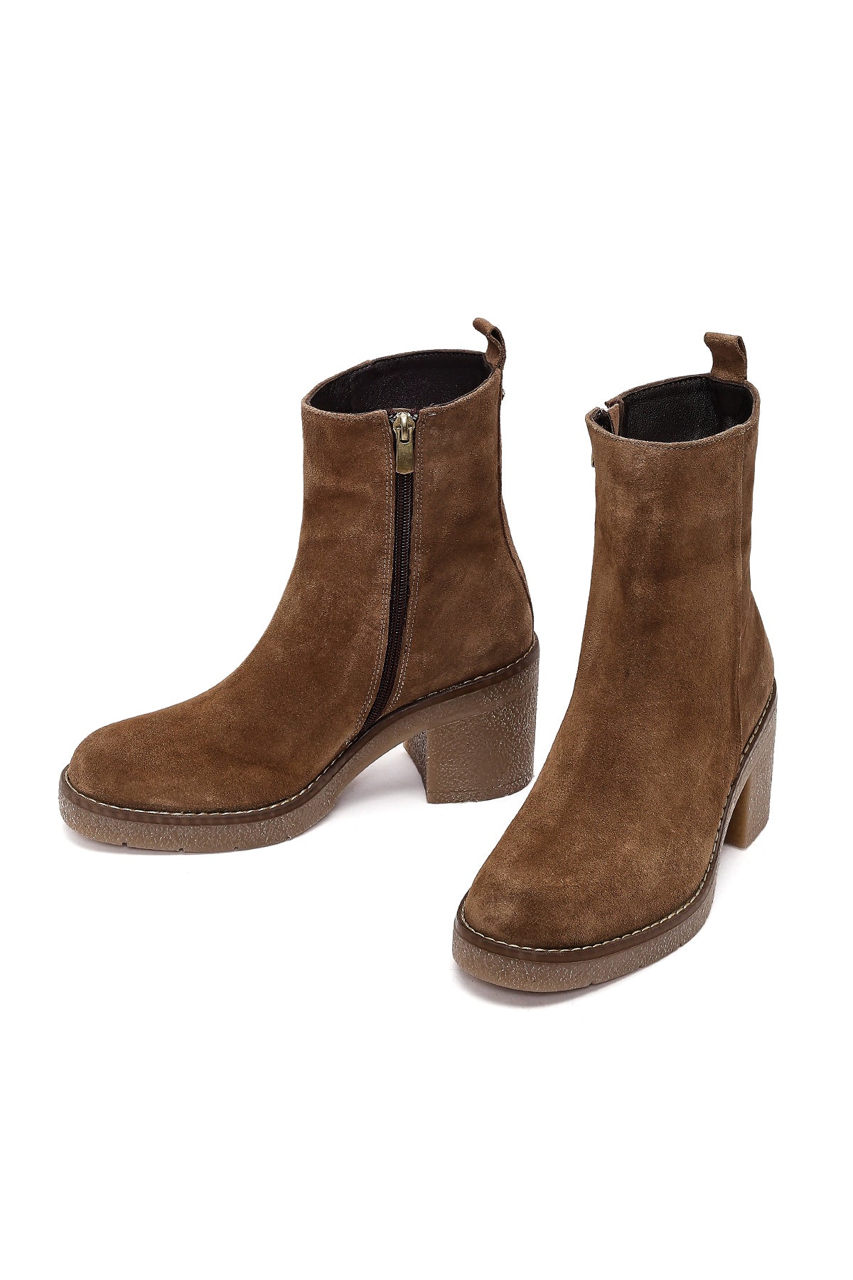 Kadın Bej Fermuarlı Kalın Topuklu Süet Deri Bot