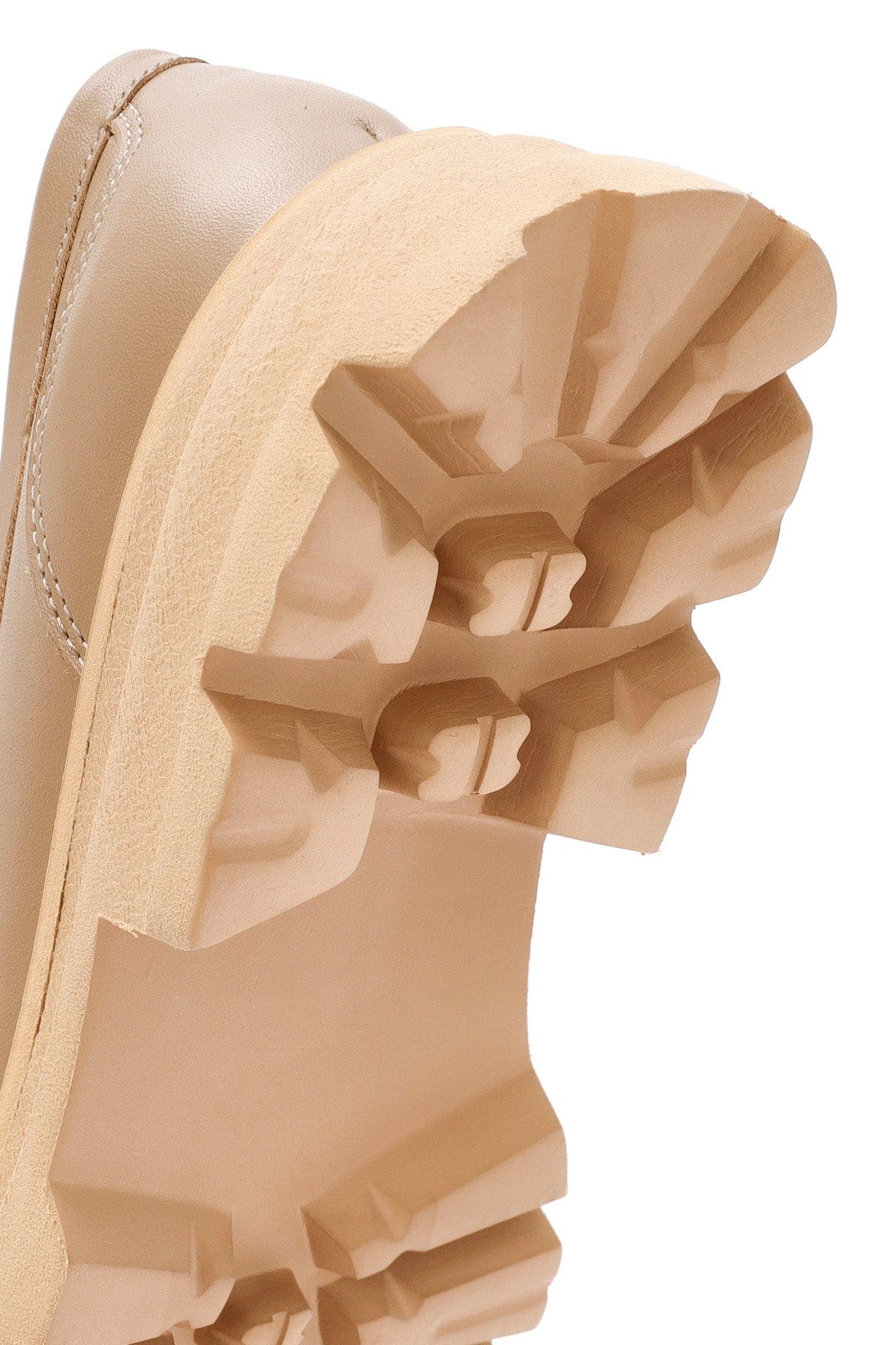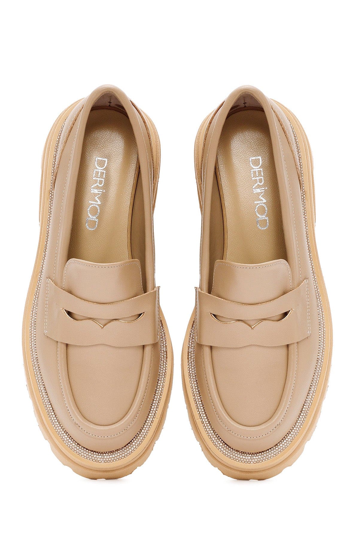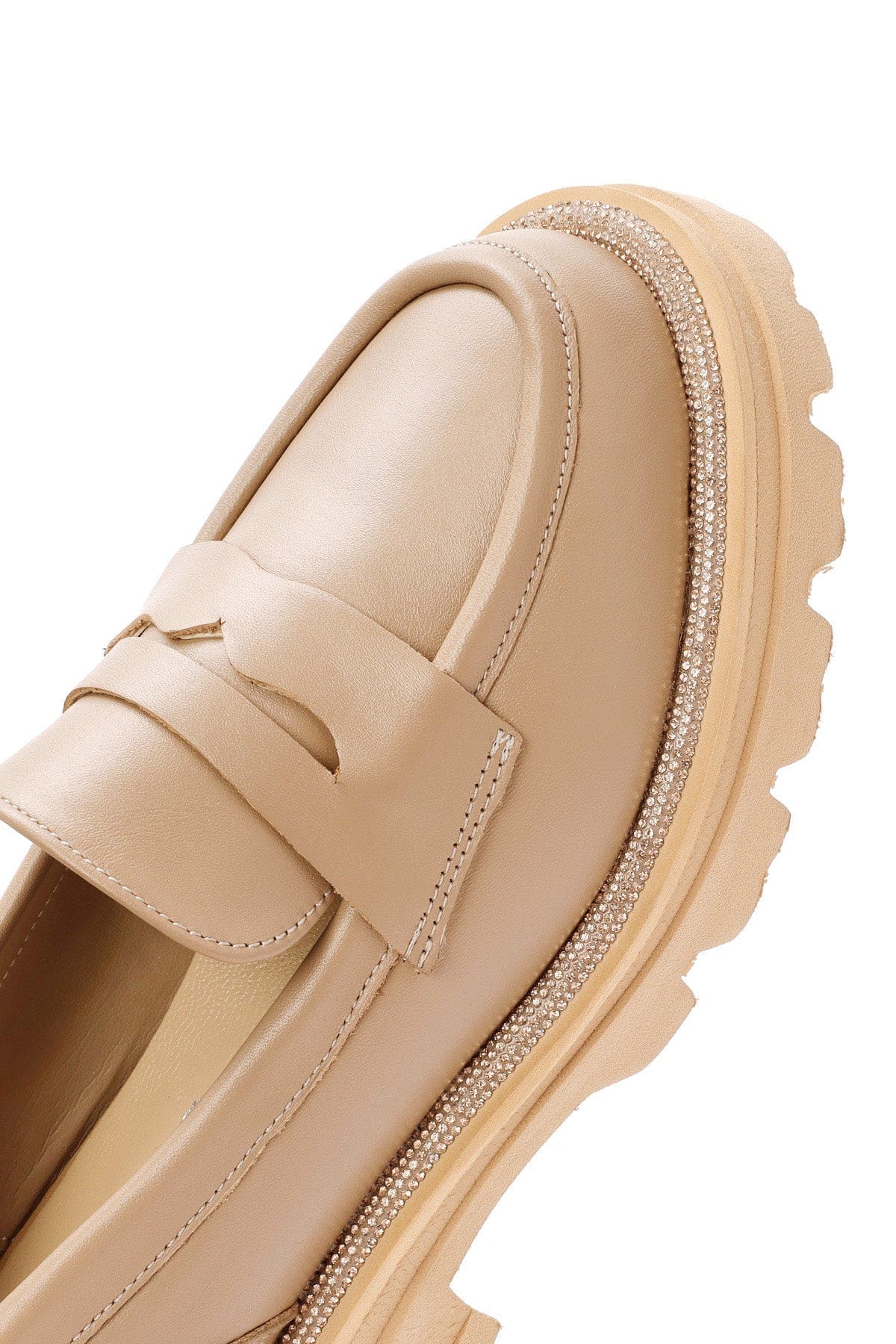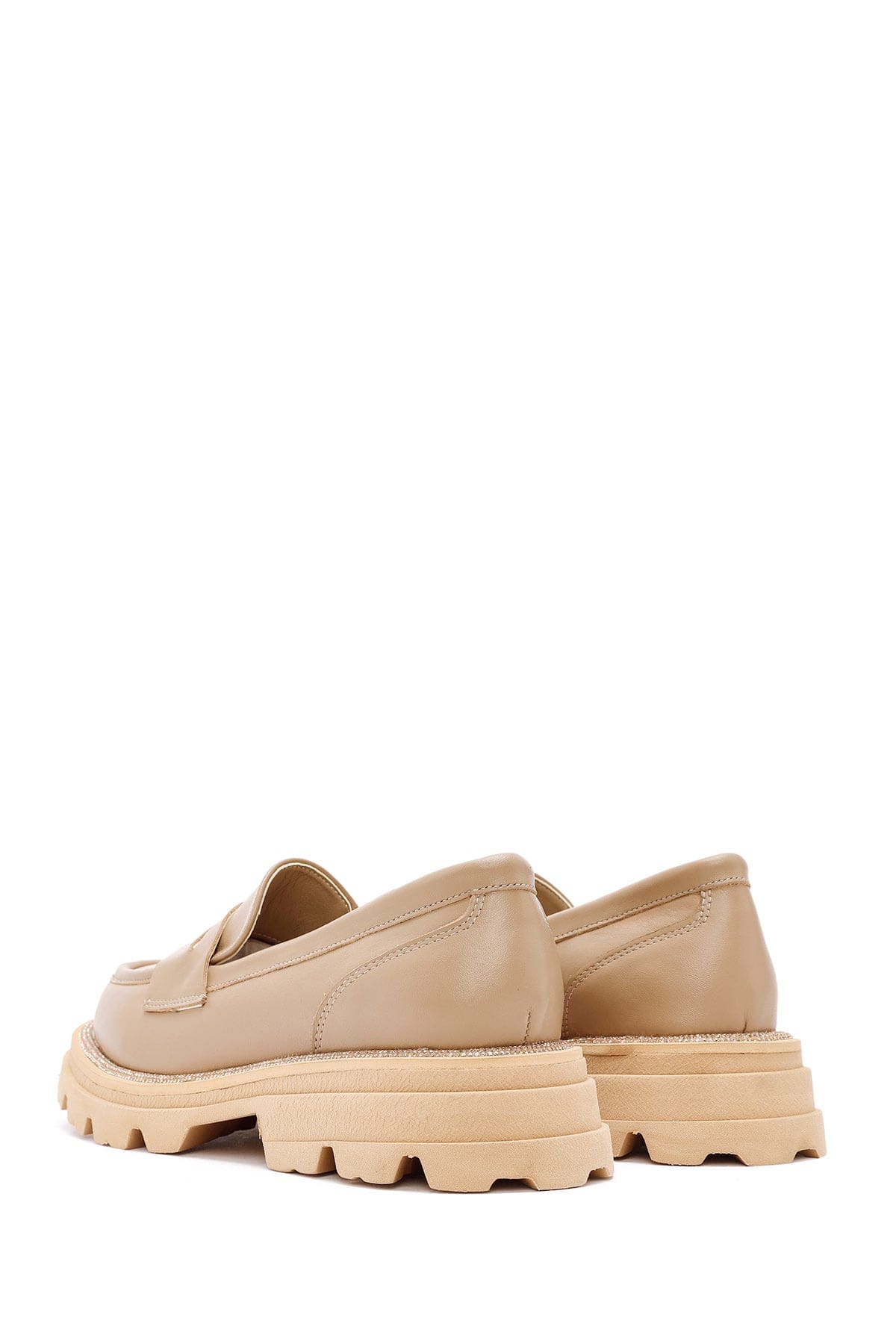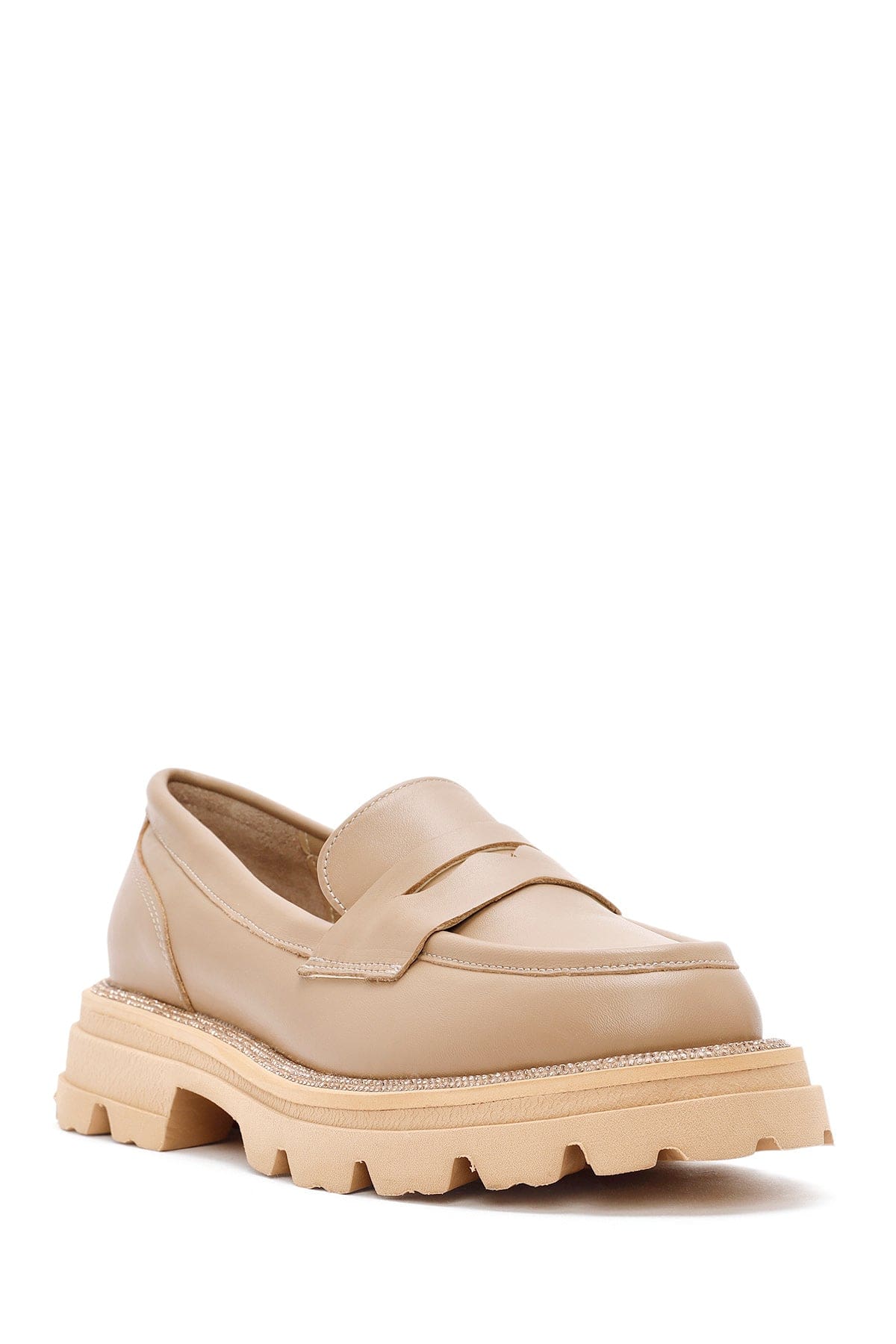 Kadın Bej Kalın Tabanlı Deri Maskülen Loafer