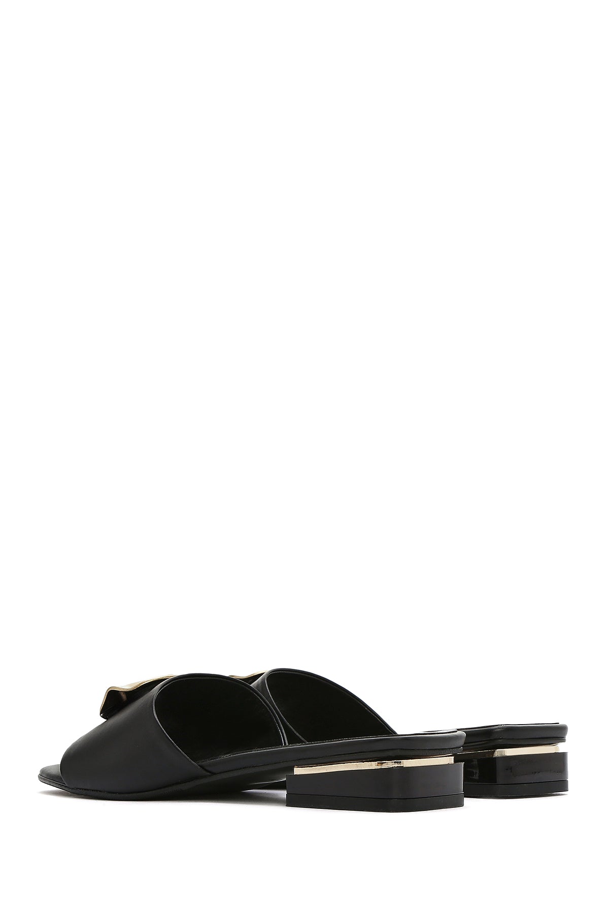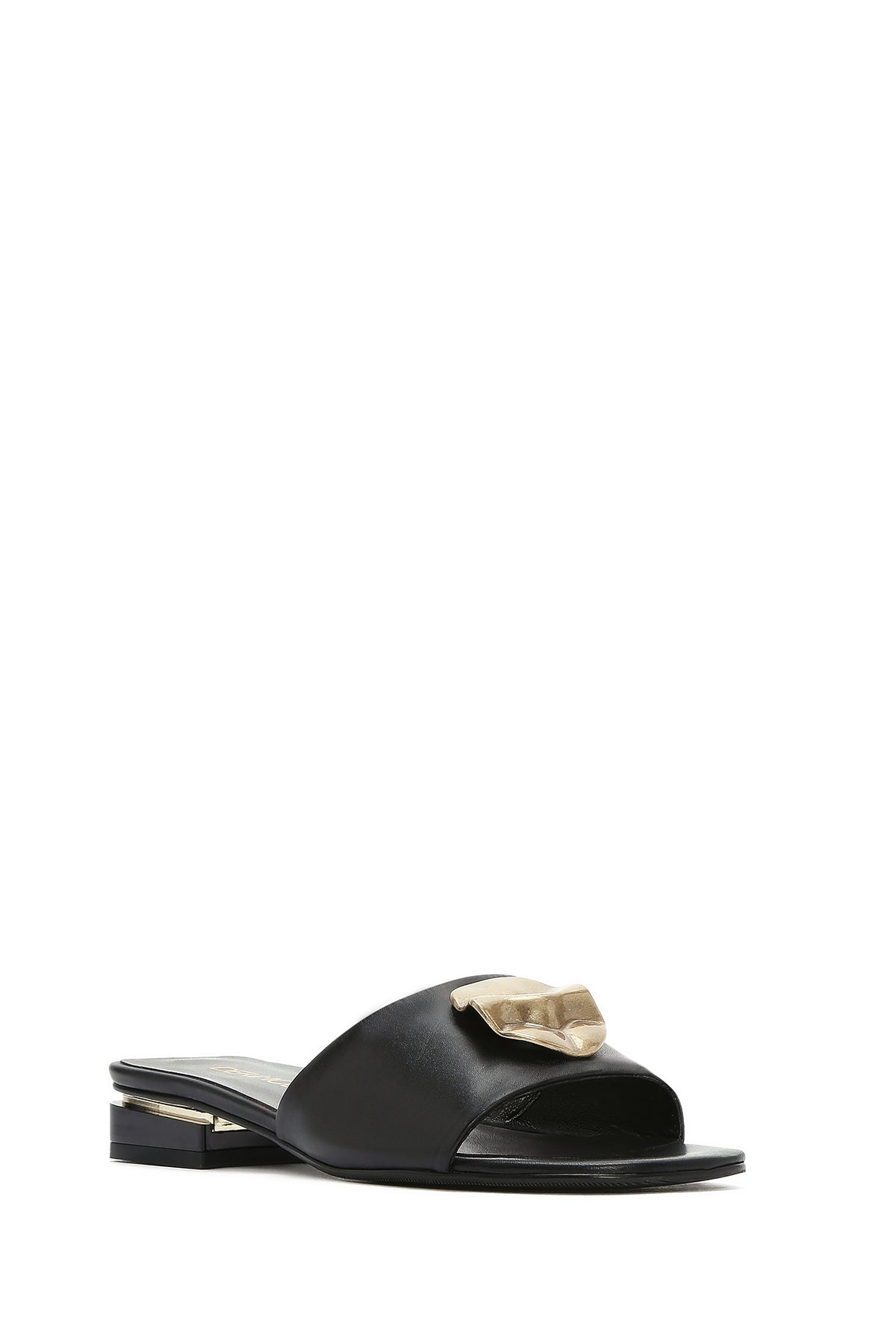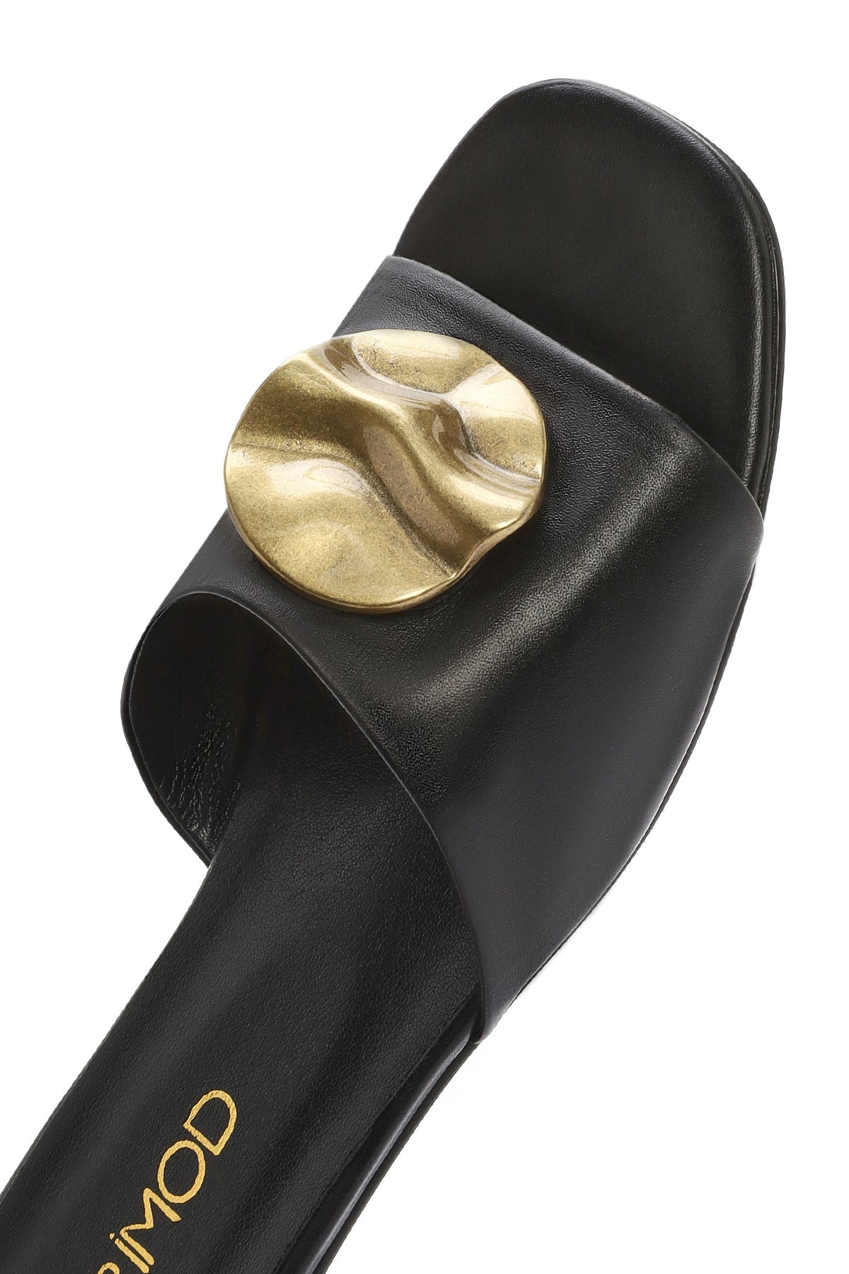 دمپایی زنانه چرم مشکی با تزئینات دری مد