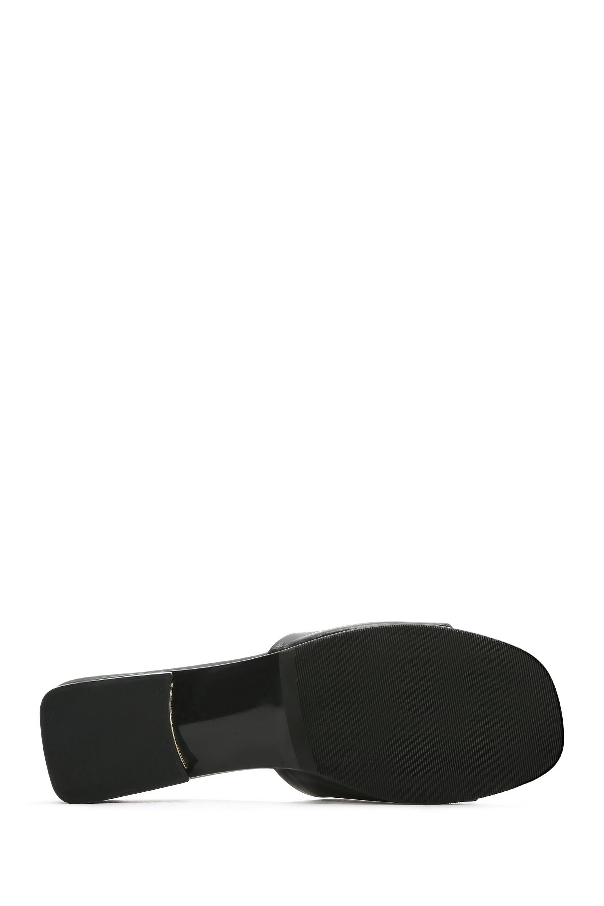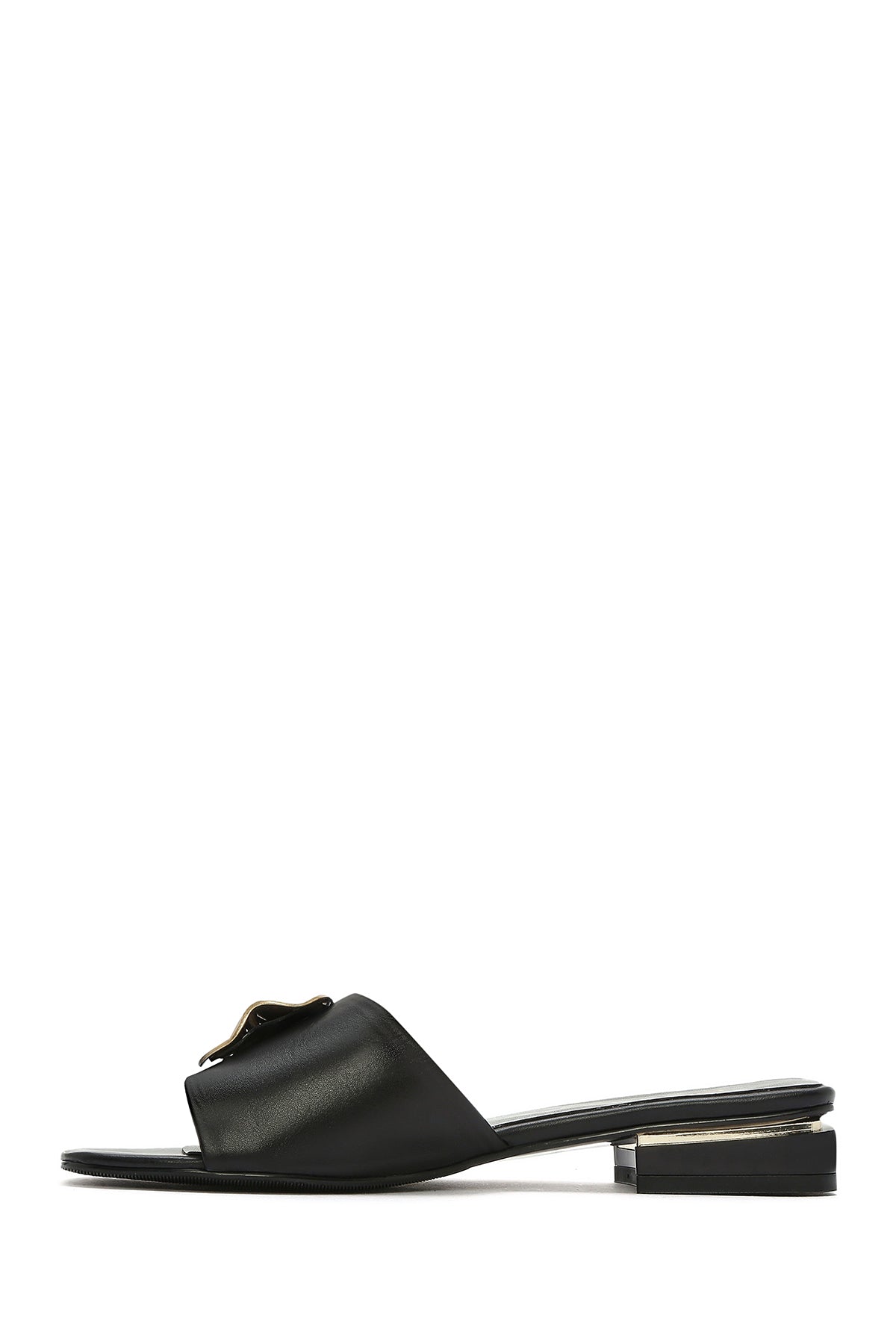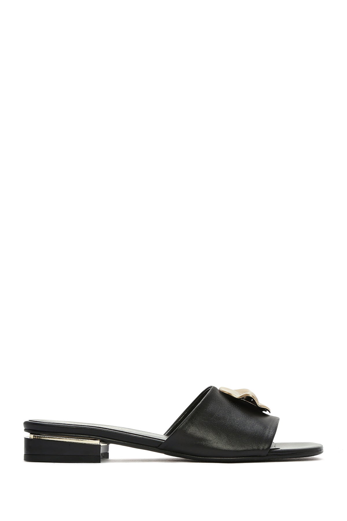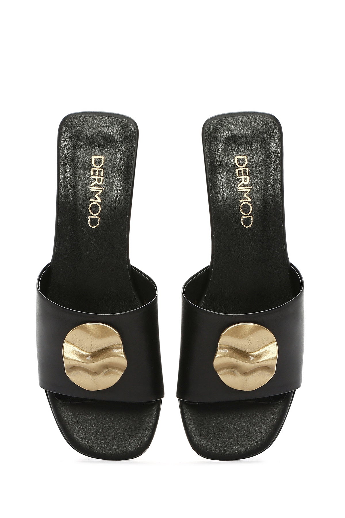 دمپایی زنانه چرم مشکی با تزئینات دری مد