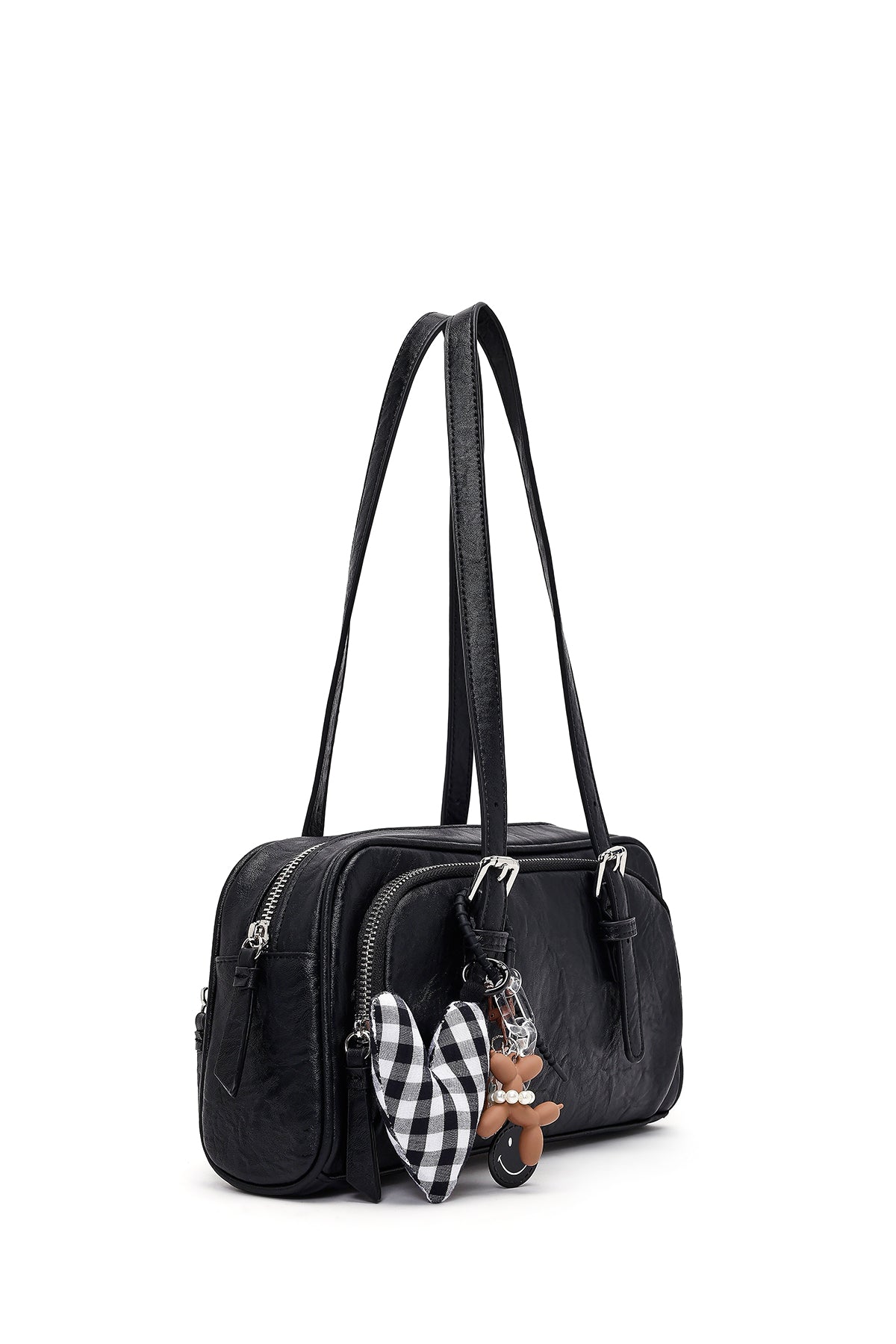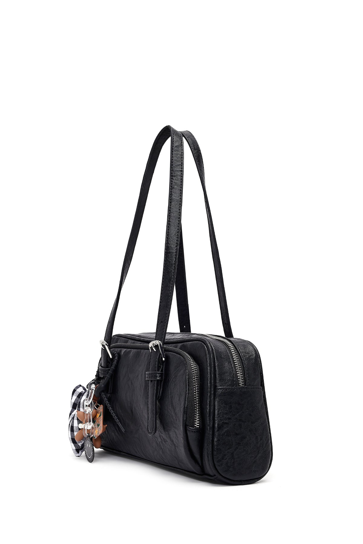کیف زنانه مشکی بنددار با اکسسوری دری مد