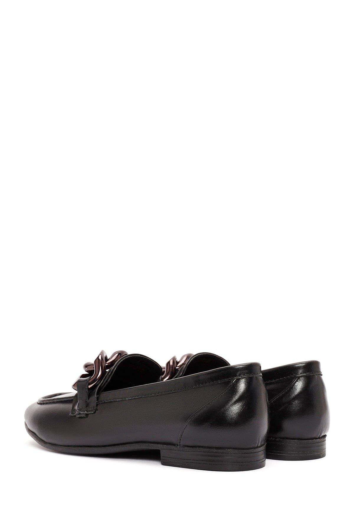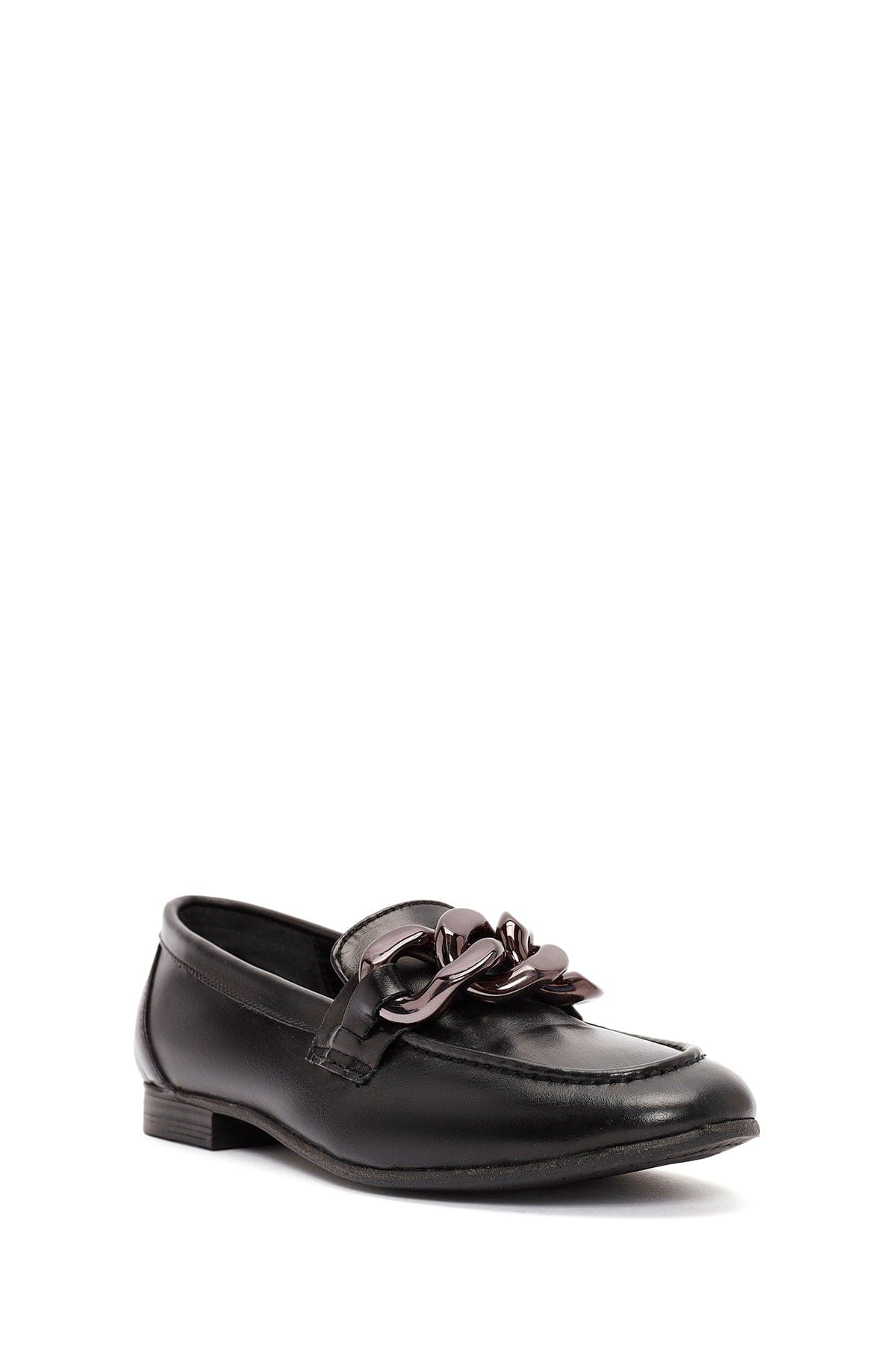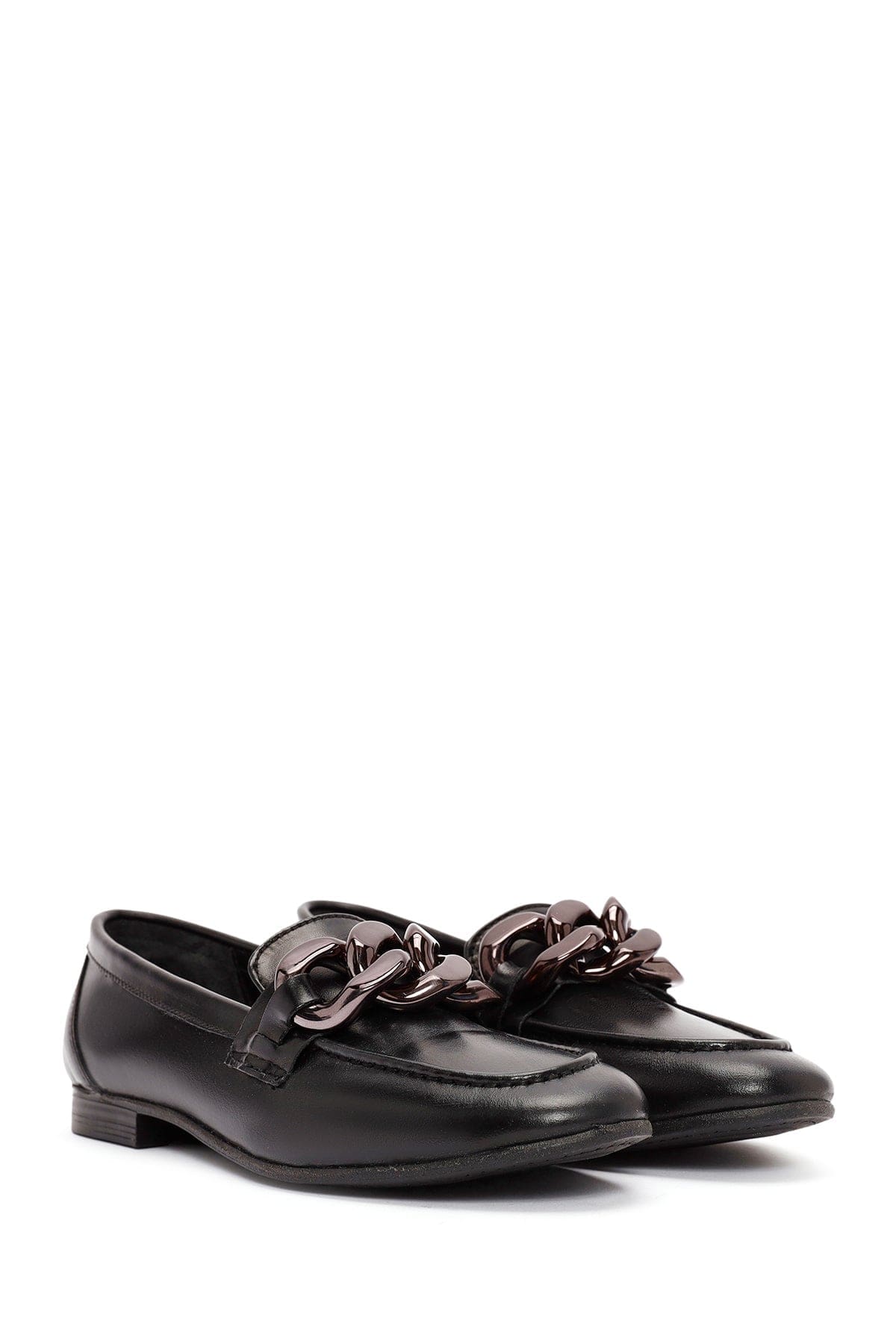 Kadın Siyah Aksesuar Detaylı Deri Maskülen Loafer