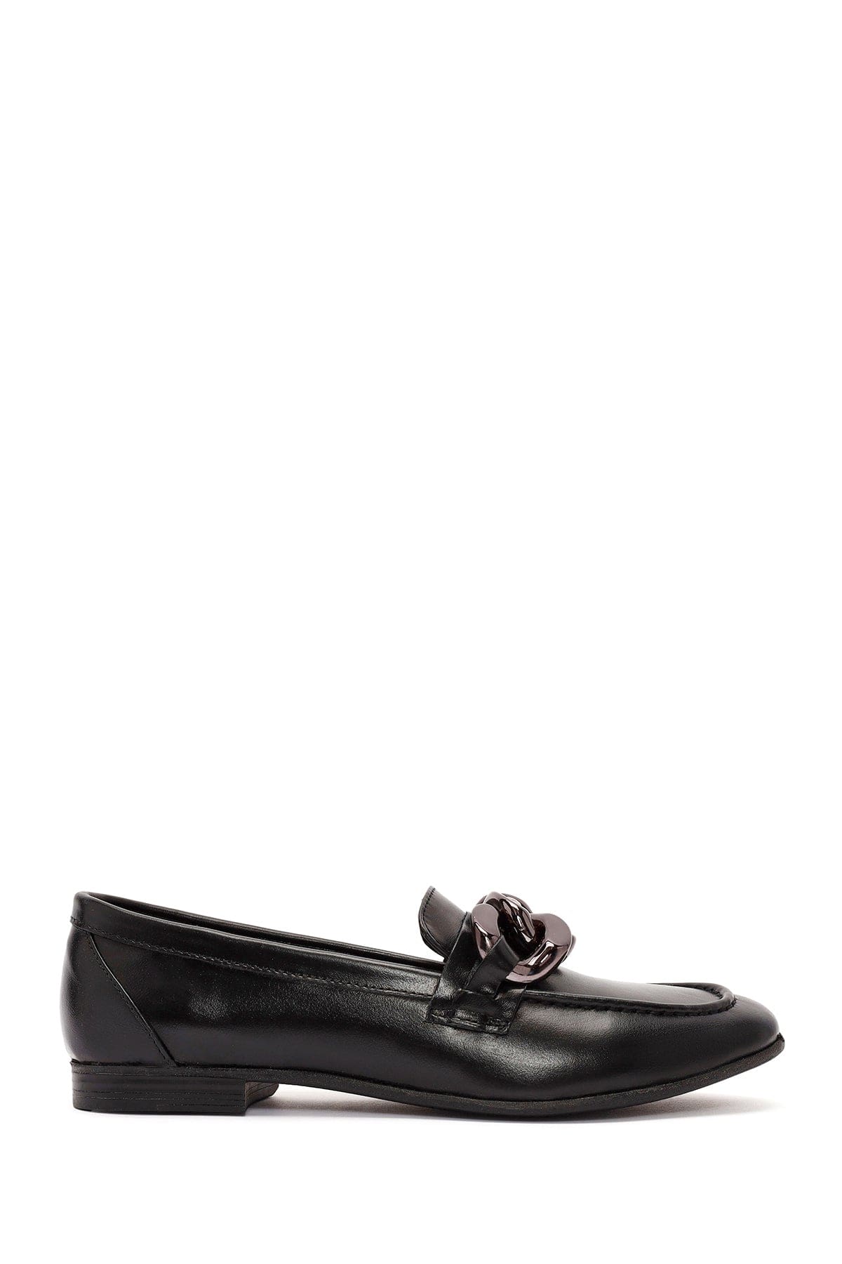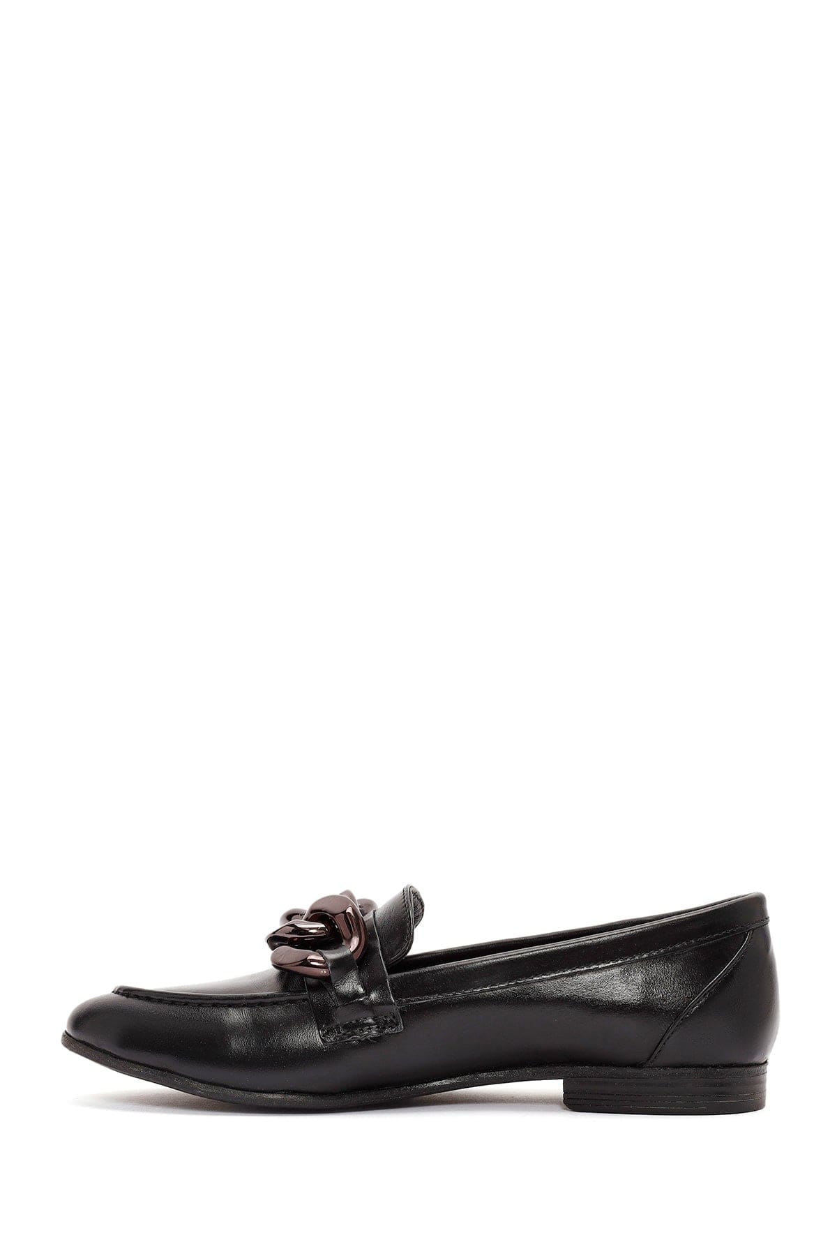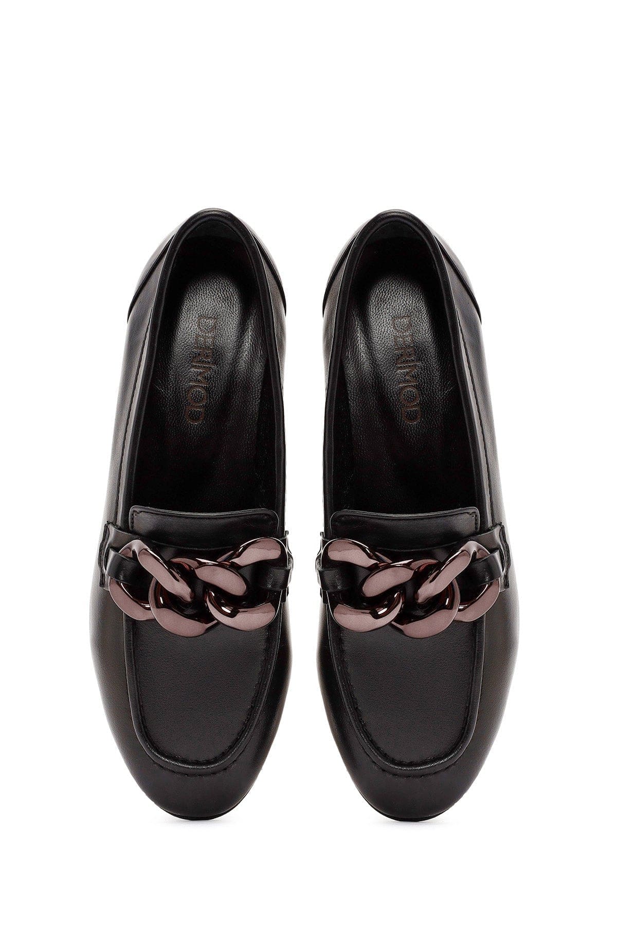 Kadın Siyah Aksesuar Detaylı Deri Maskülen Loafer