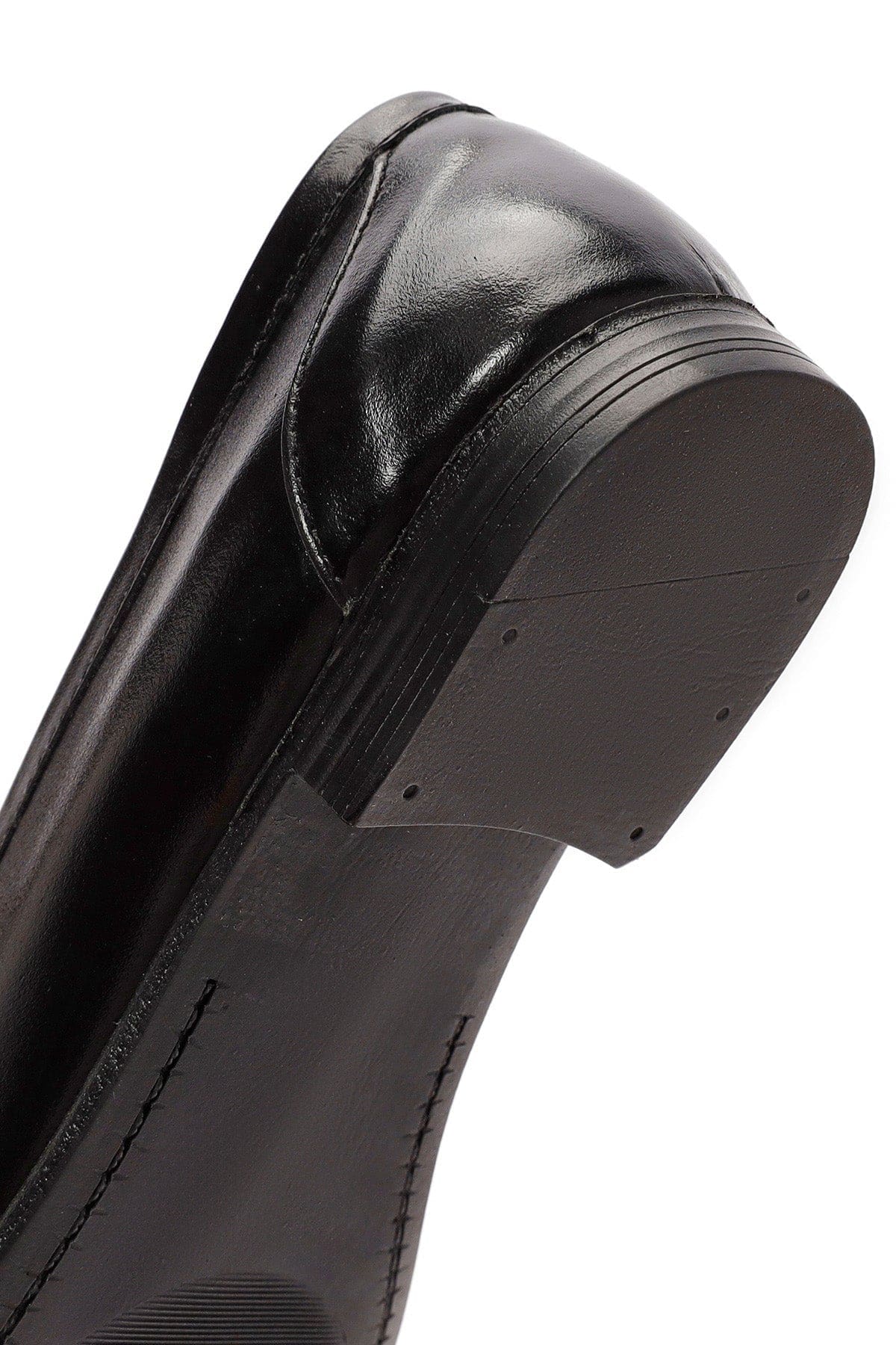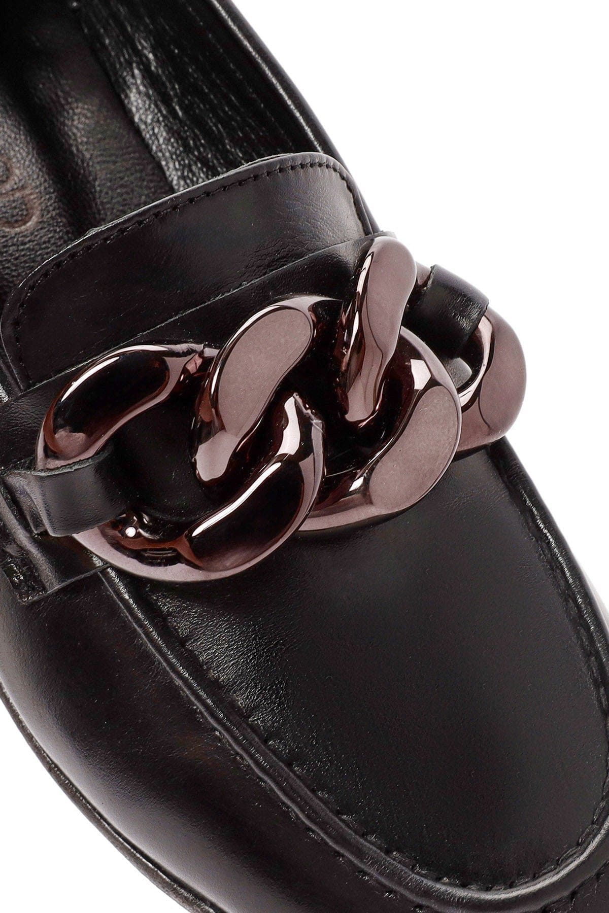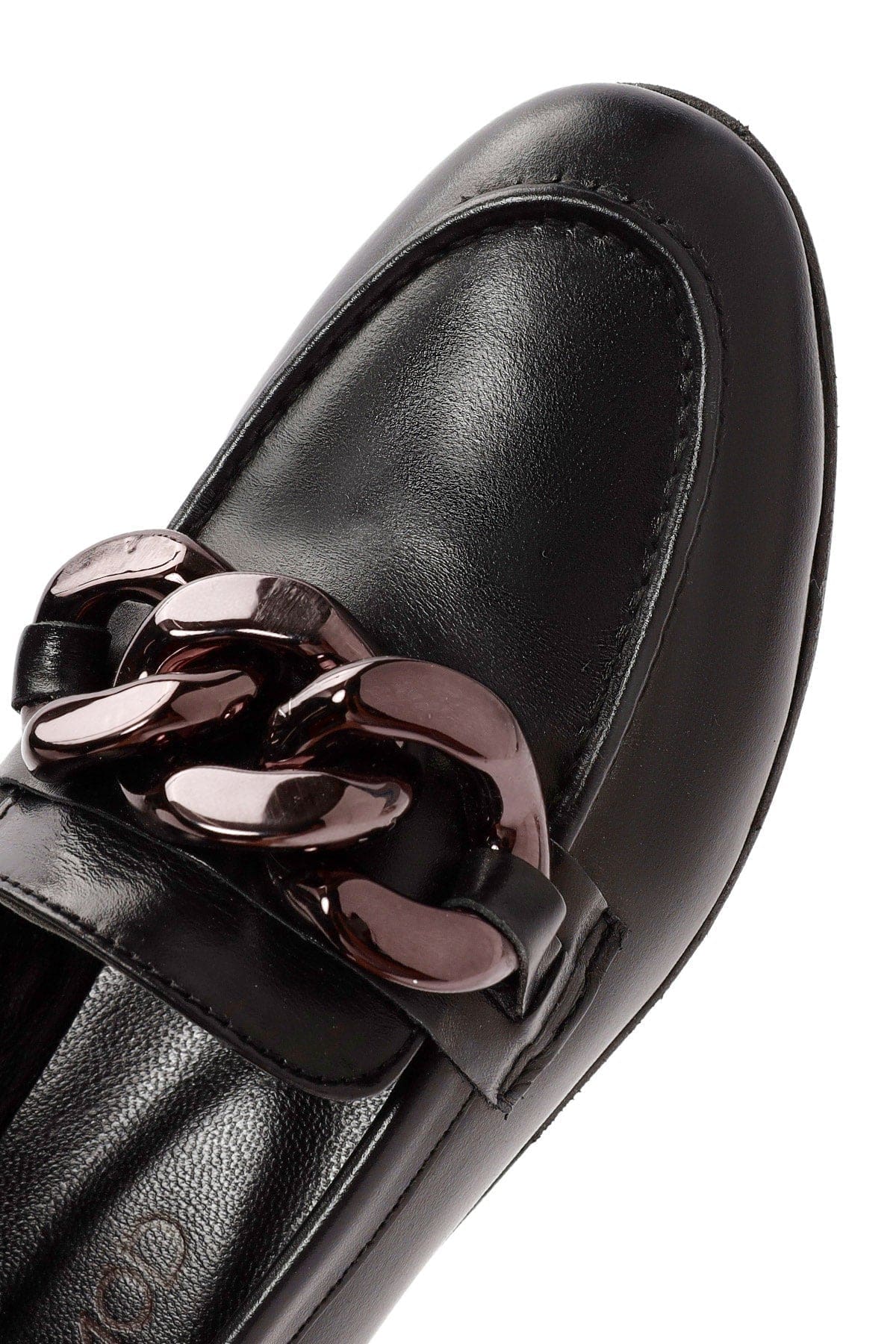 کفش لوفر زنانه مشکی چرمی با اکسسوری دری مد