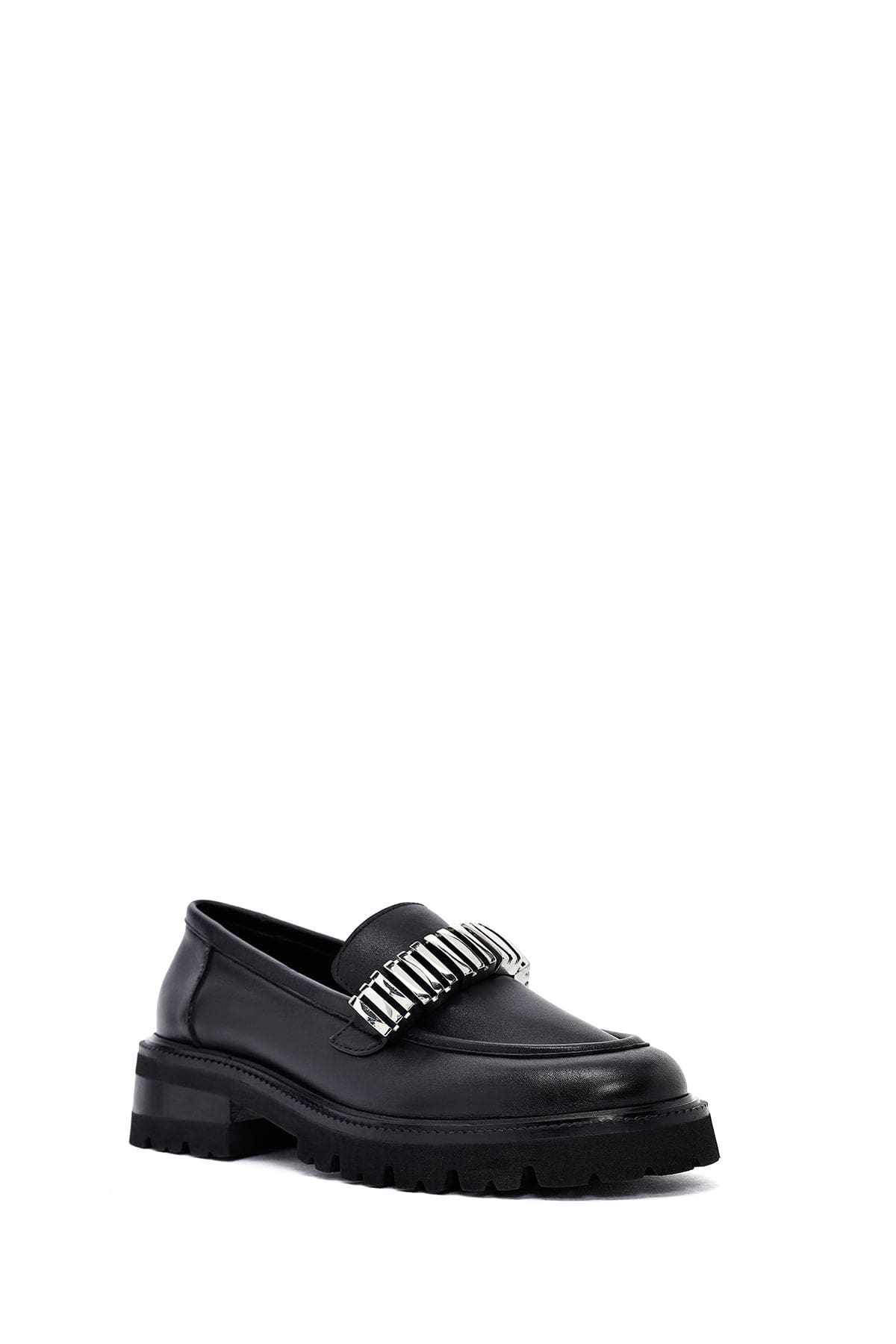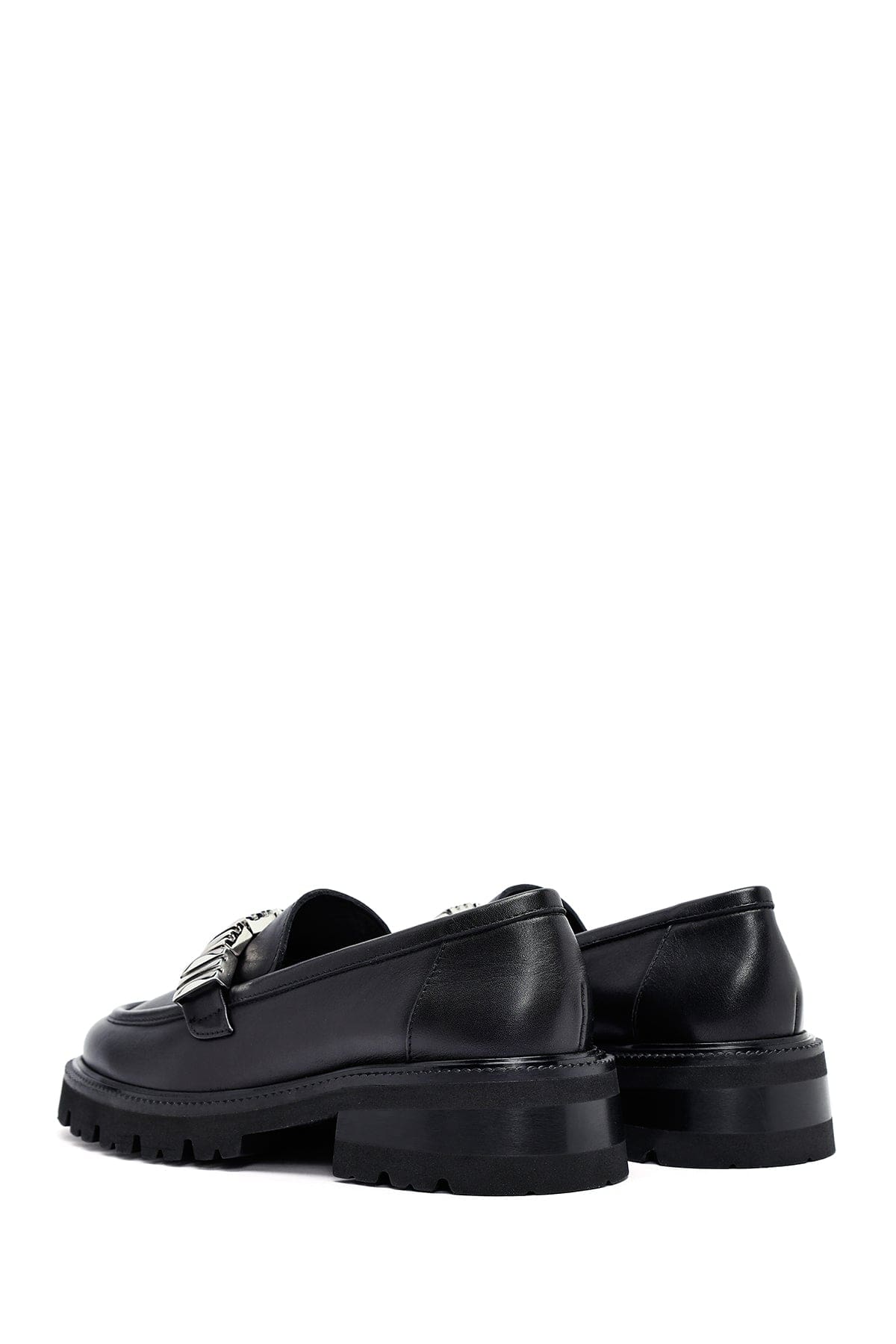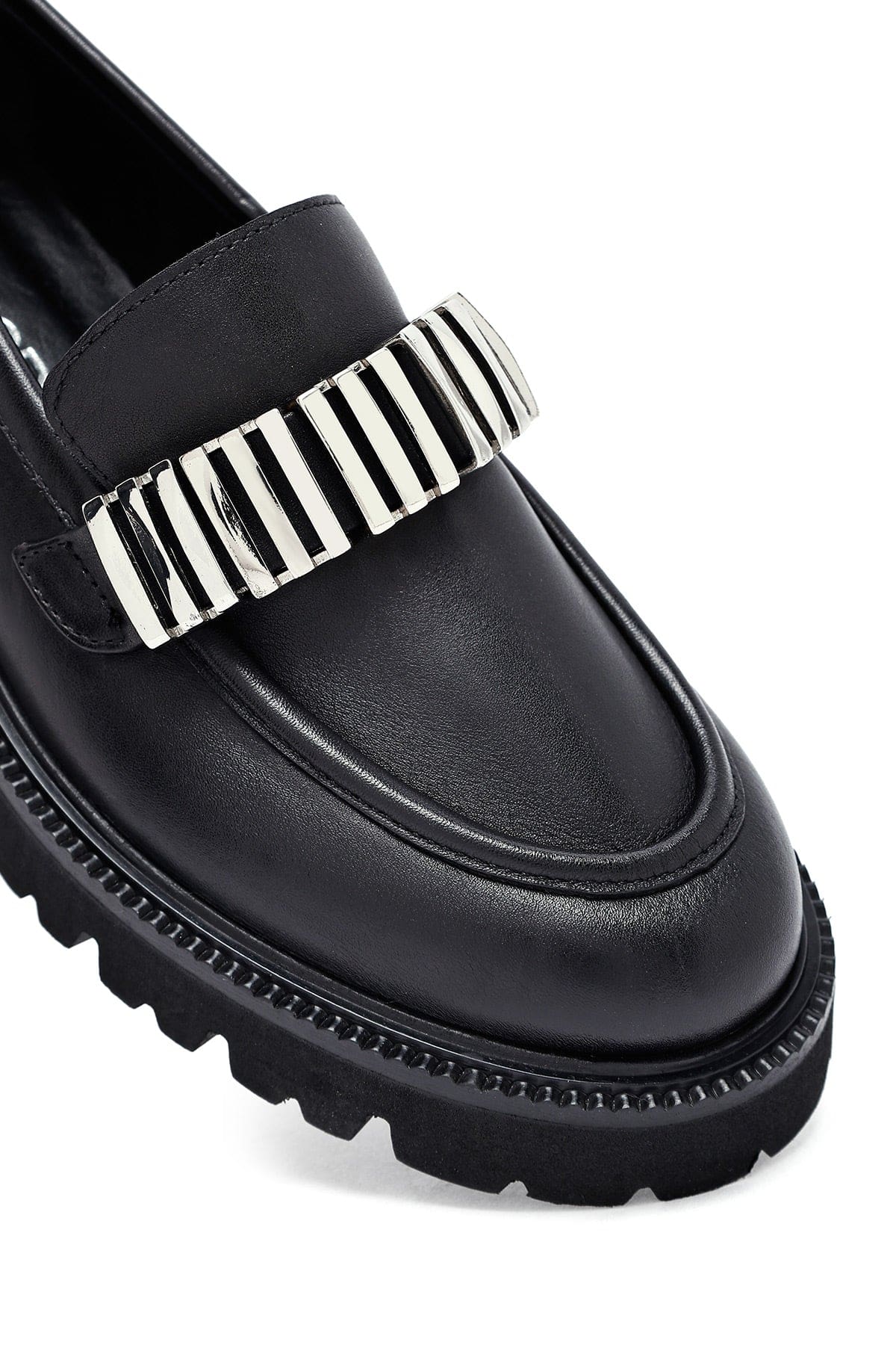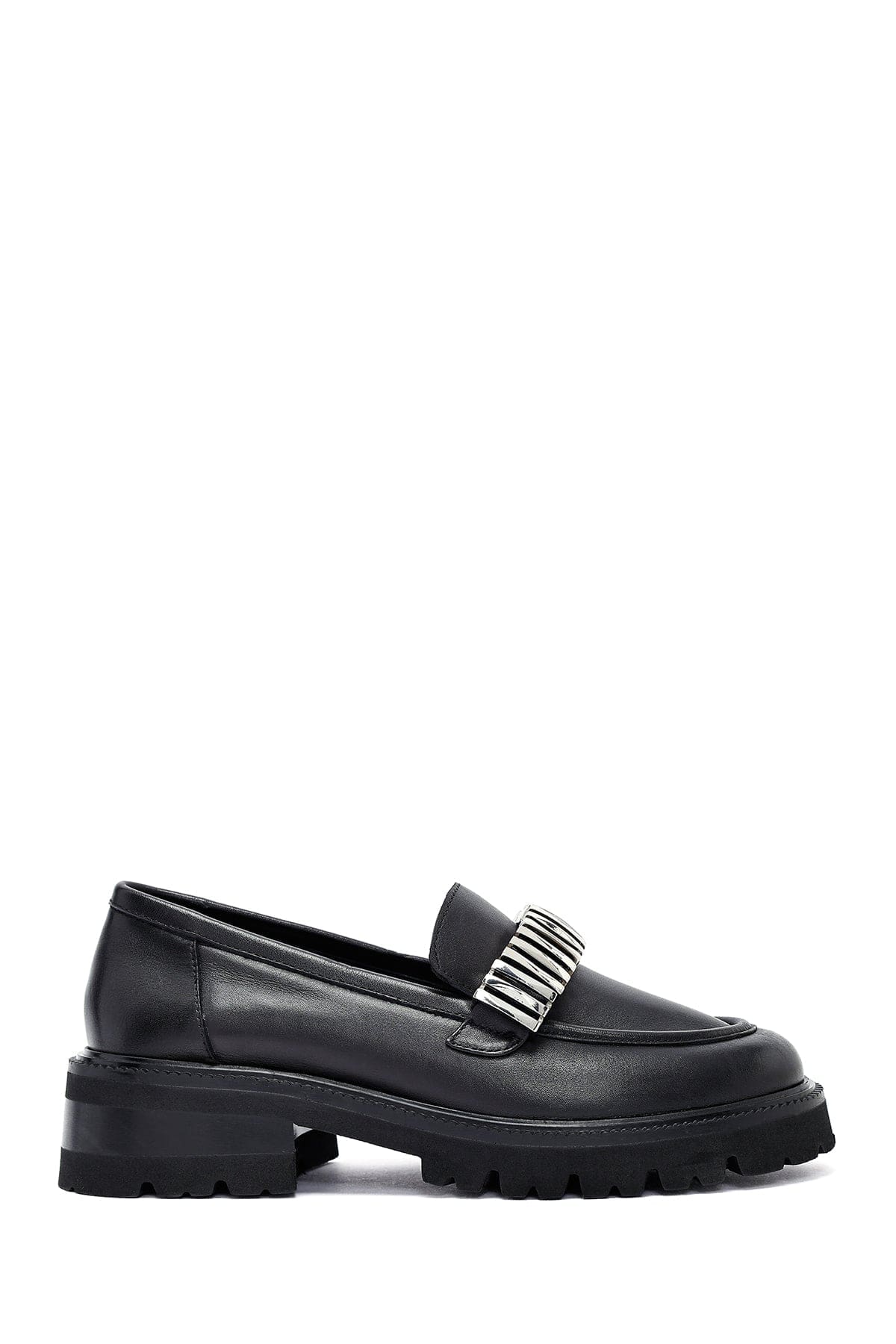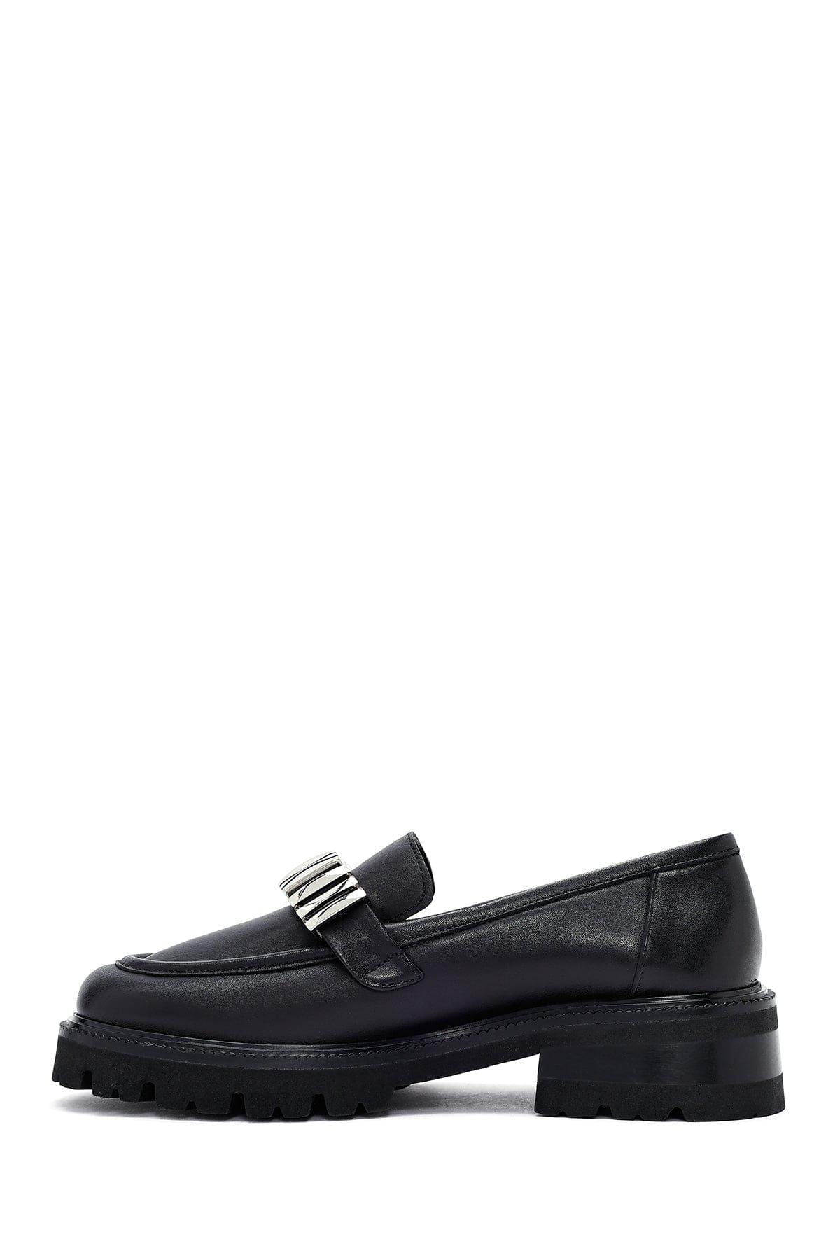 Kadın Siyah Aksesuarlı Deri Maskülen Loafer