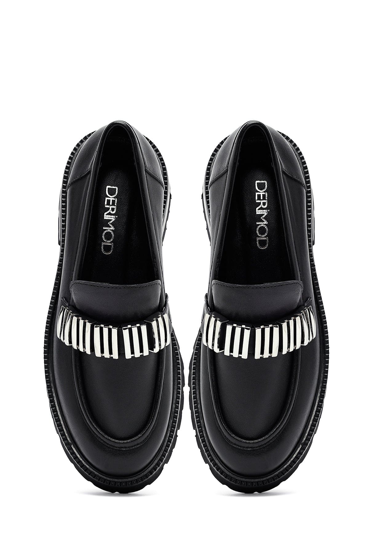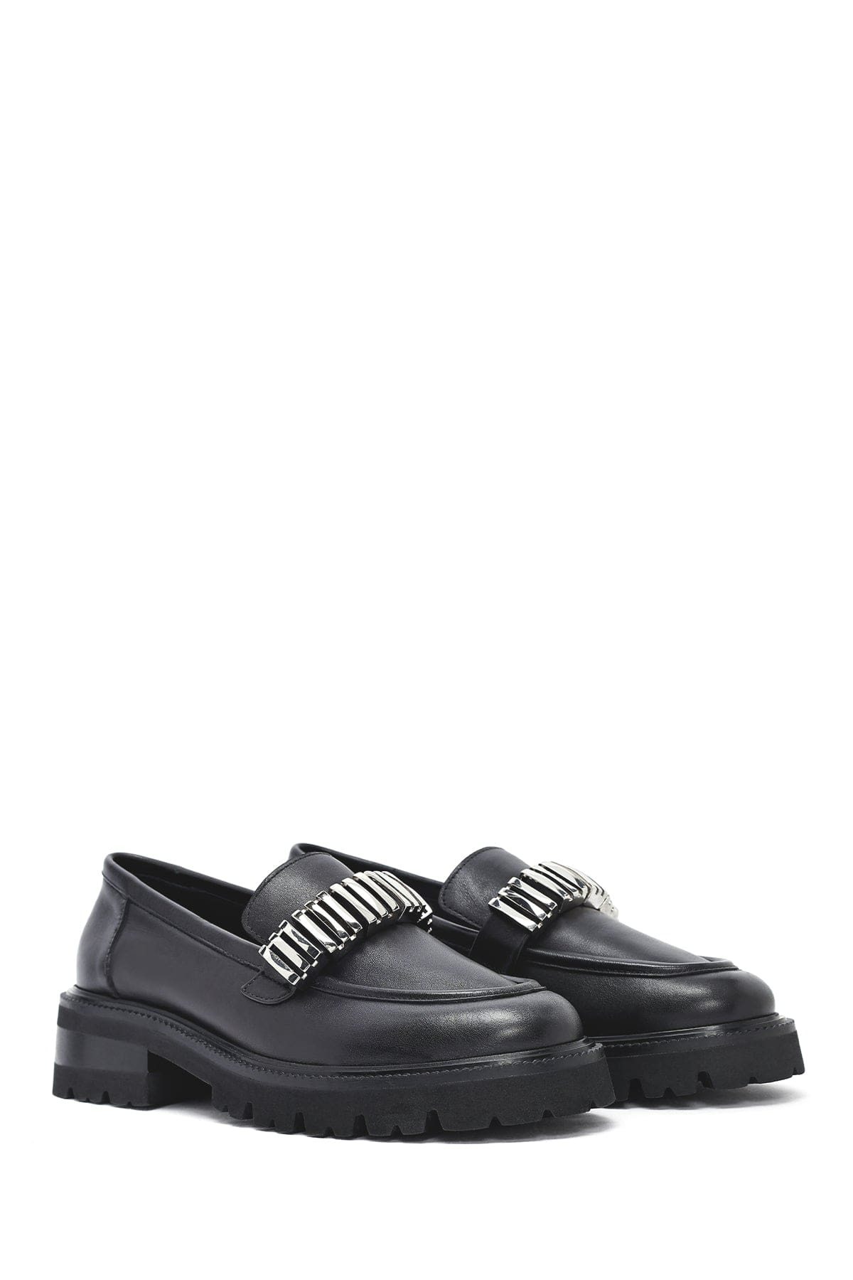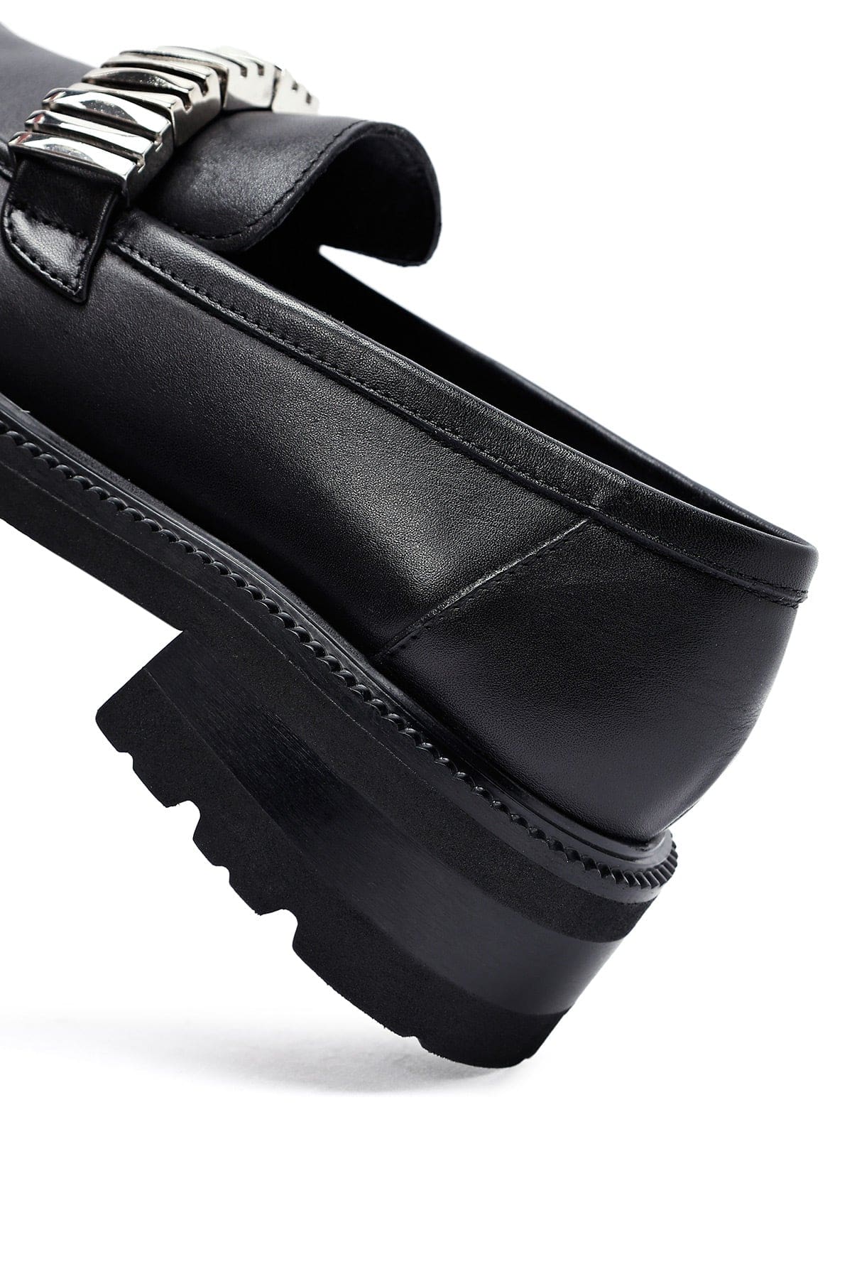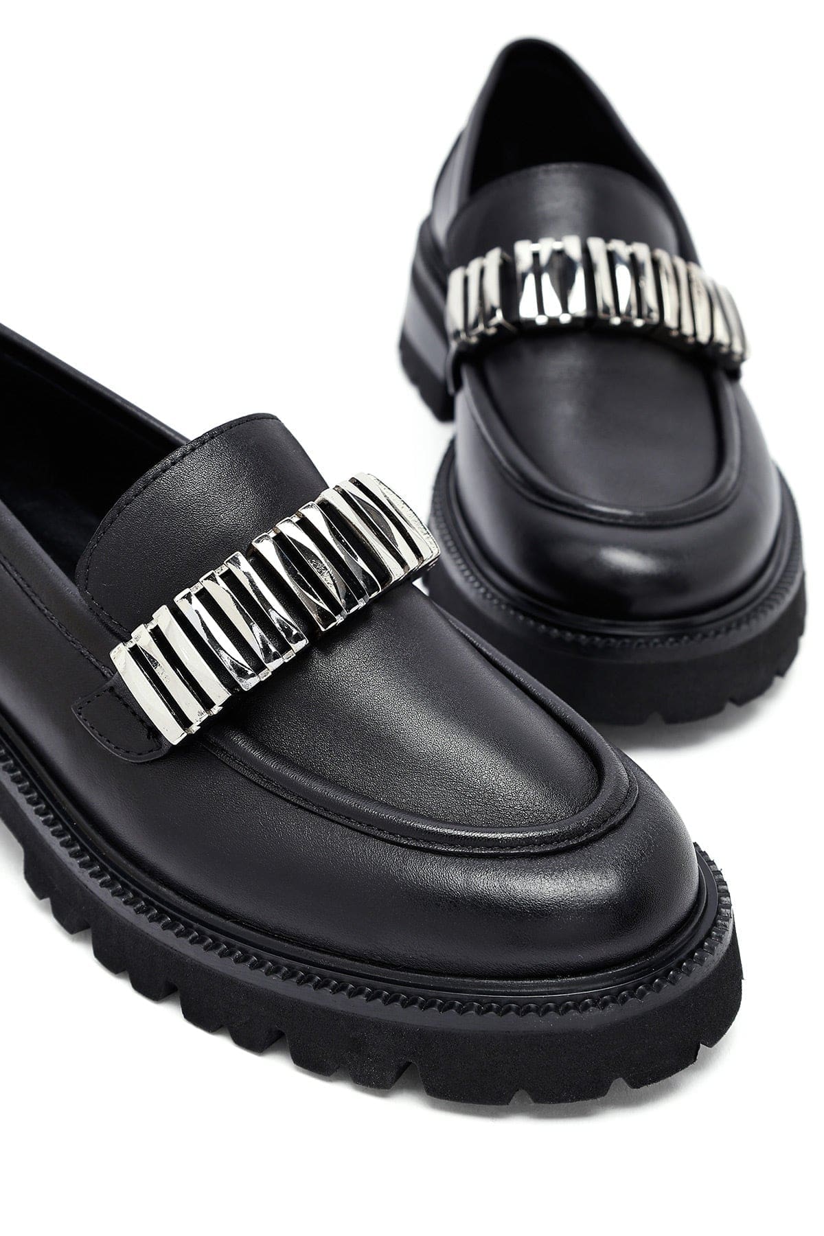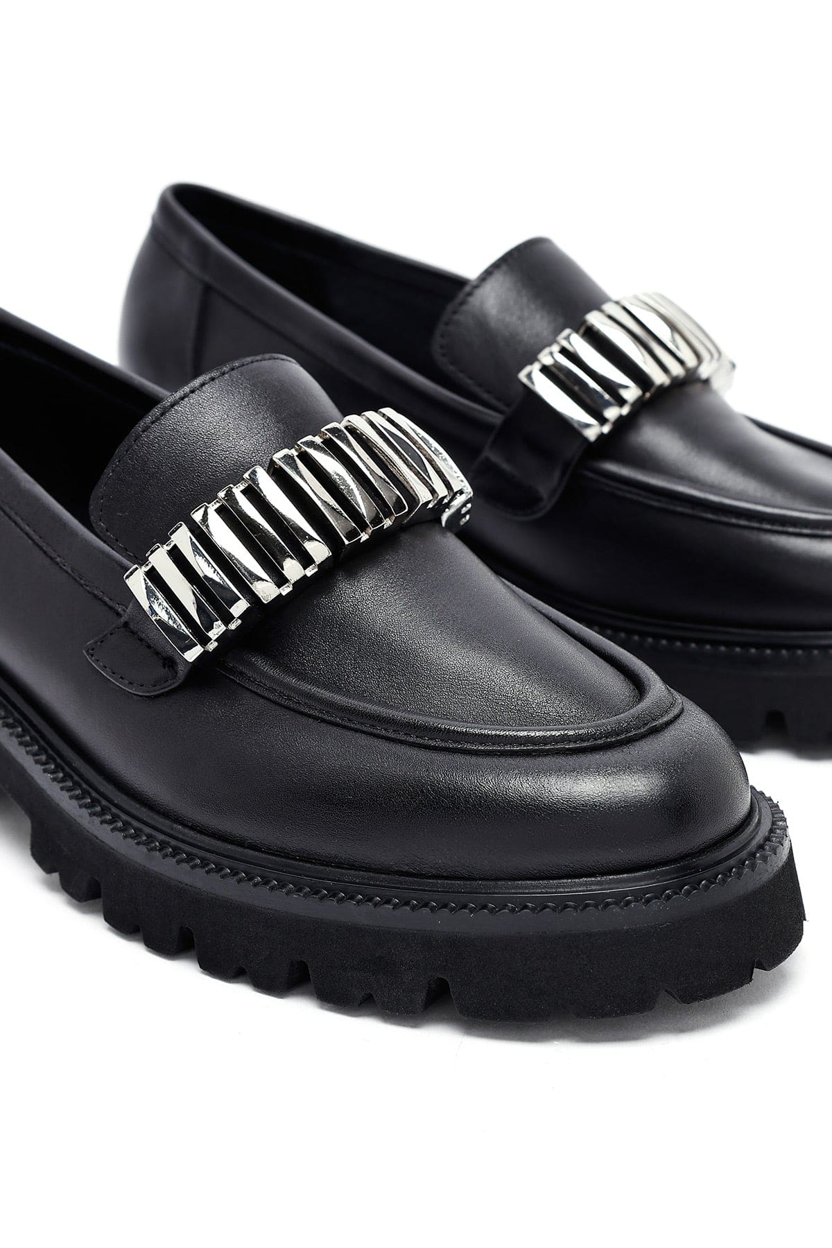 Kadın Siyah Aksesuarlı Deri Maskülen Loafer