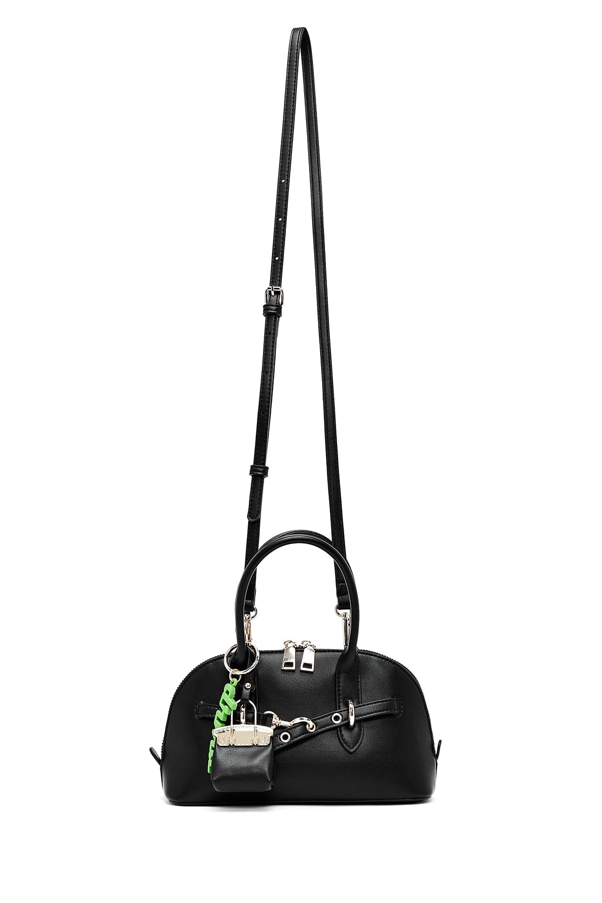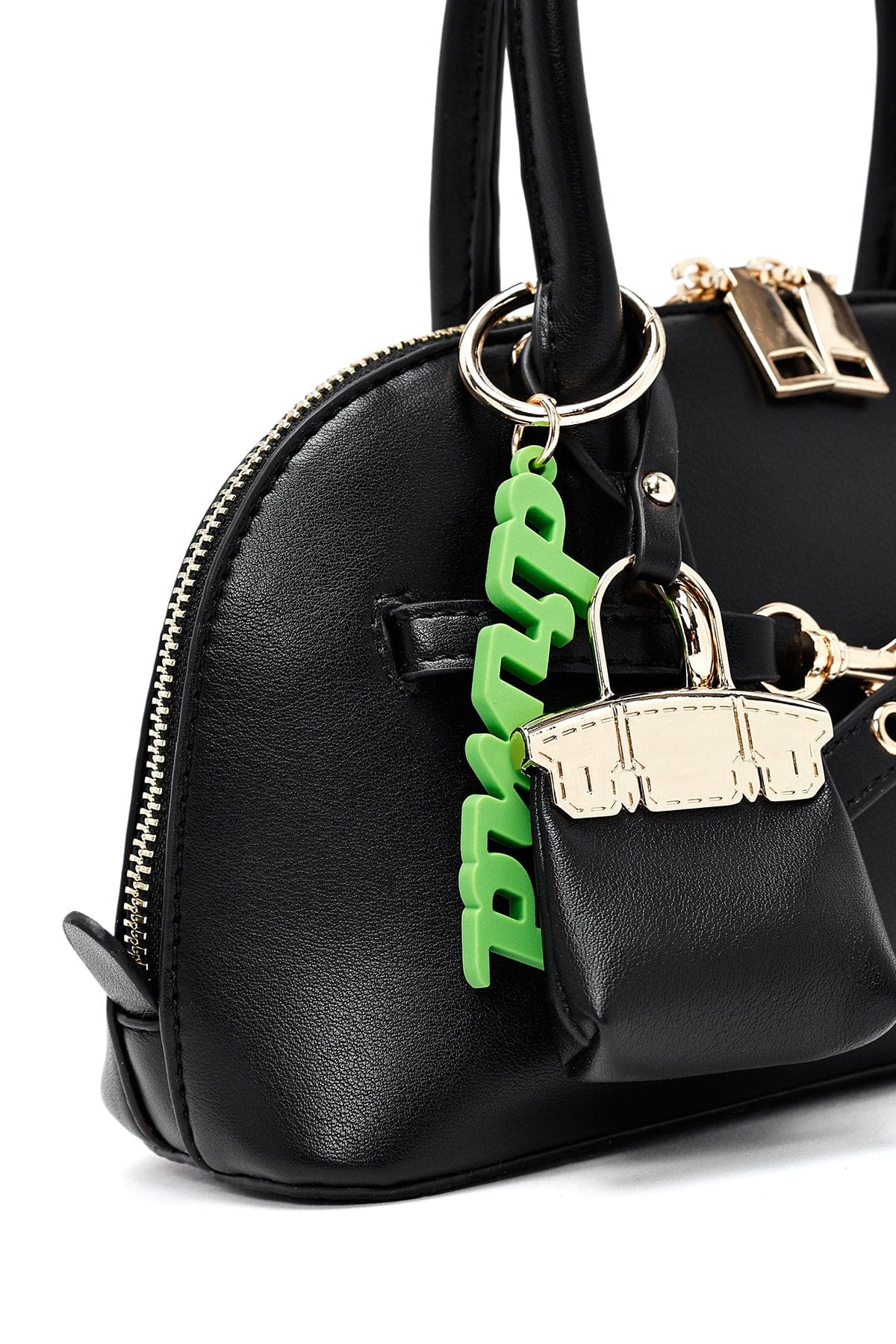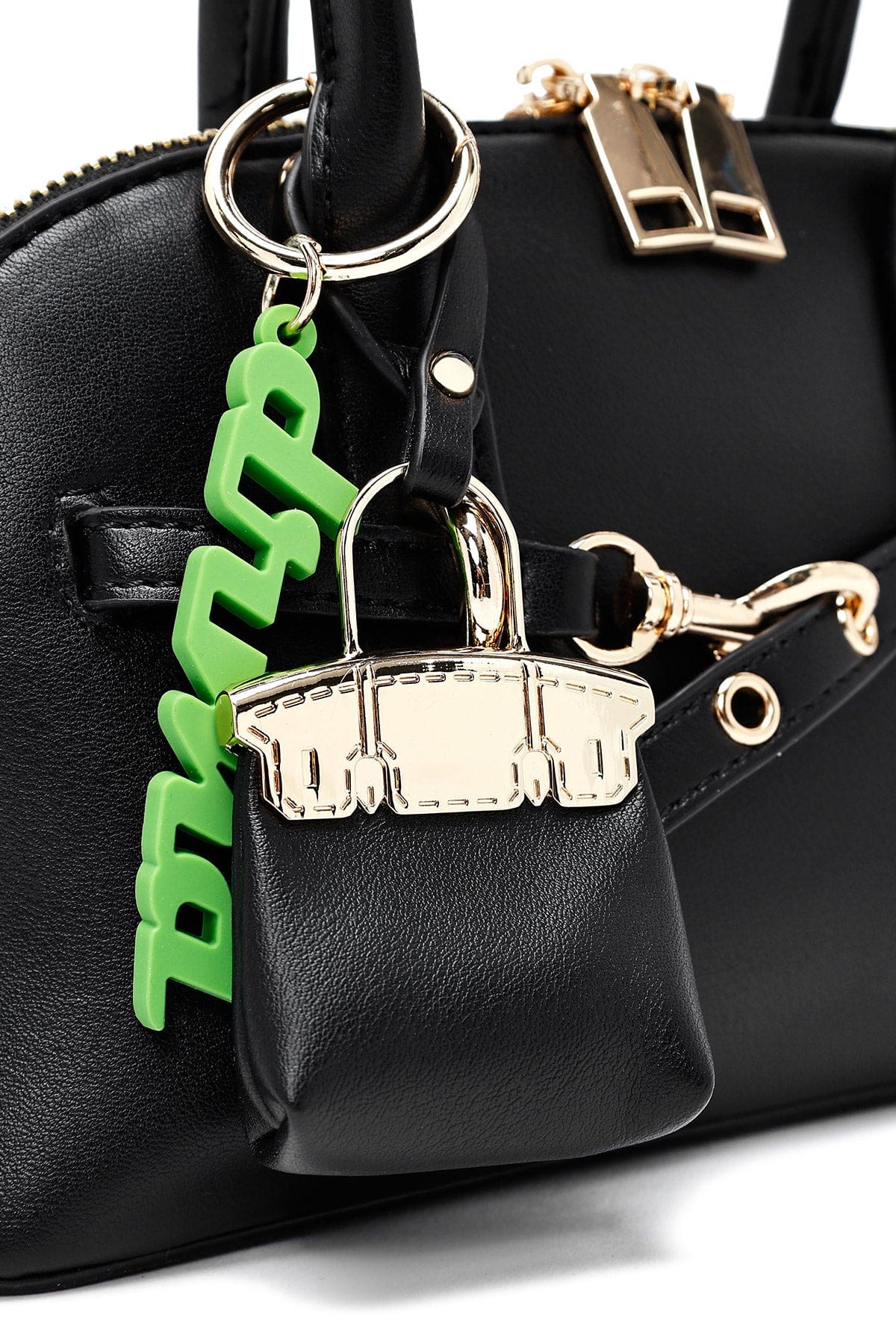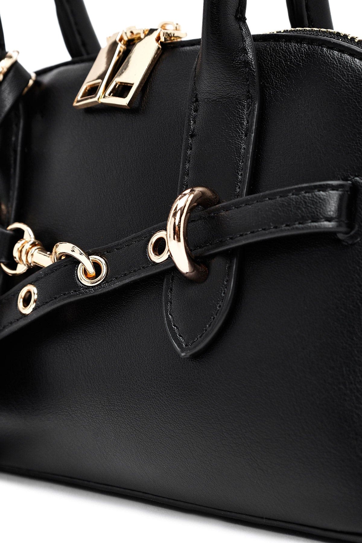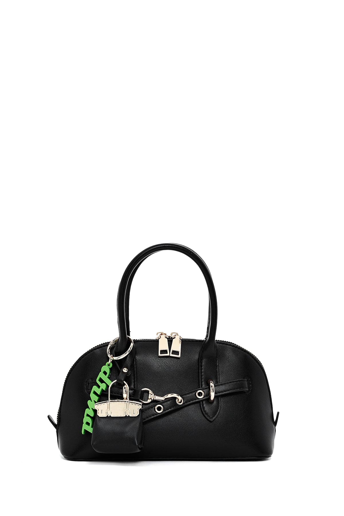 کیف زنانه مینی دستی مشکی بند بلند با اکسسوری دری مد