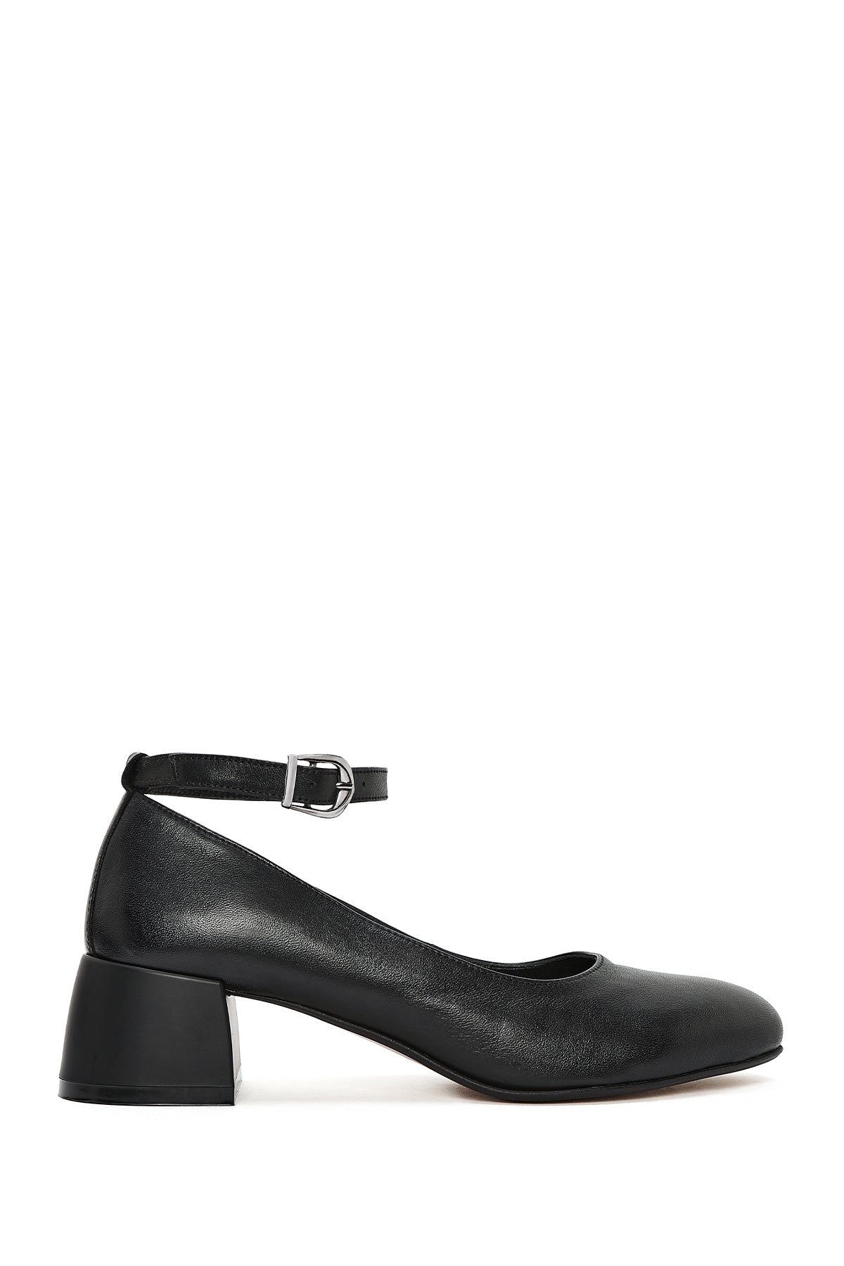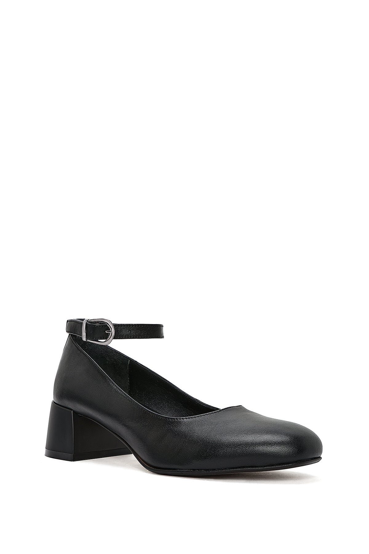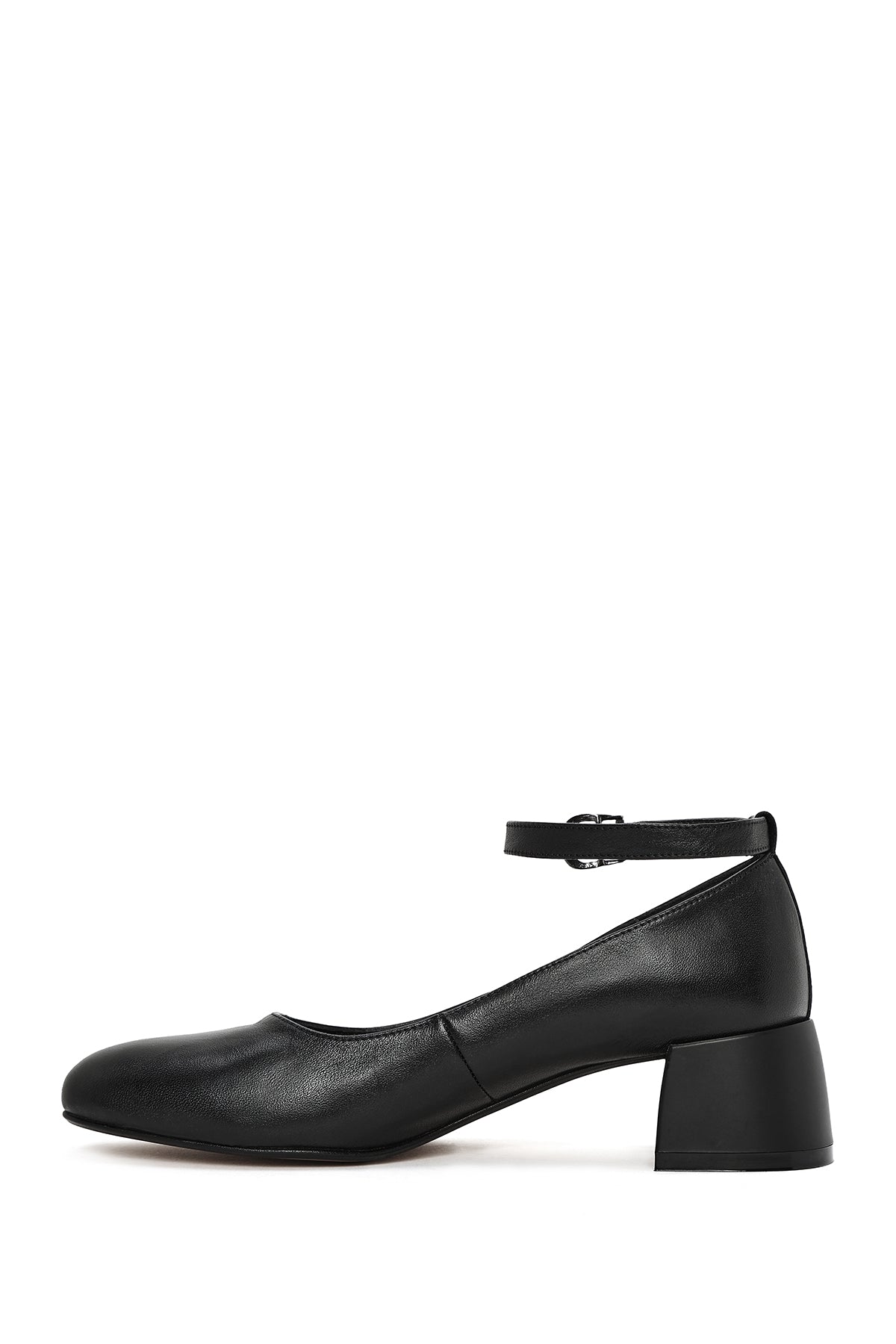 Kadın Siyah Bilekten Tokalı Kalın Kısa Topuklu Deri Ayakkabı