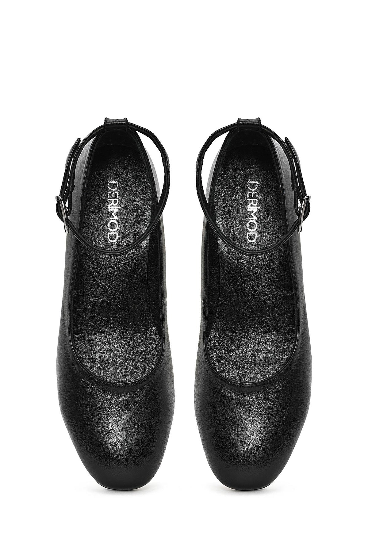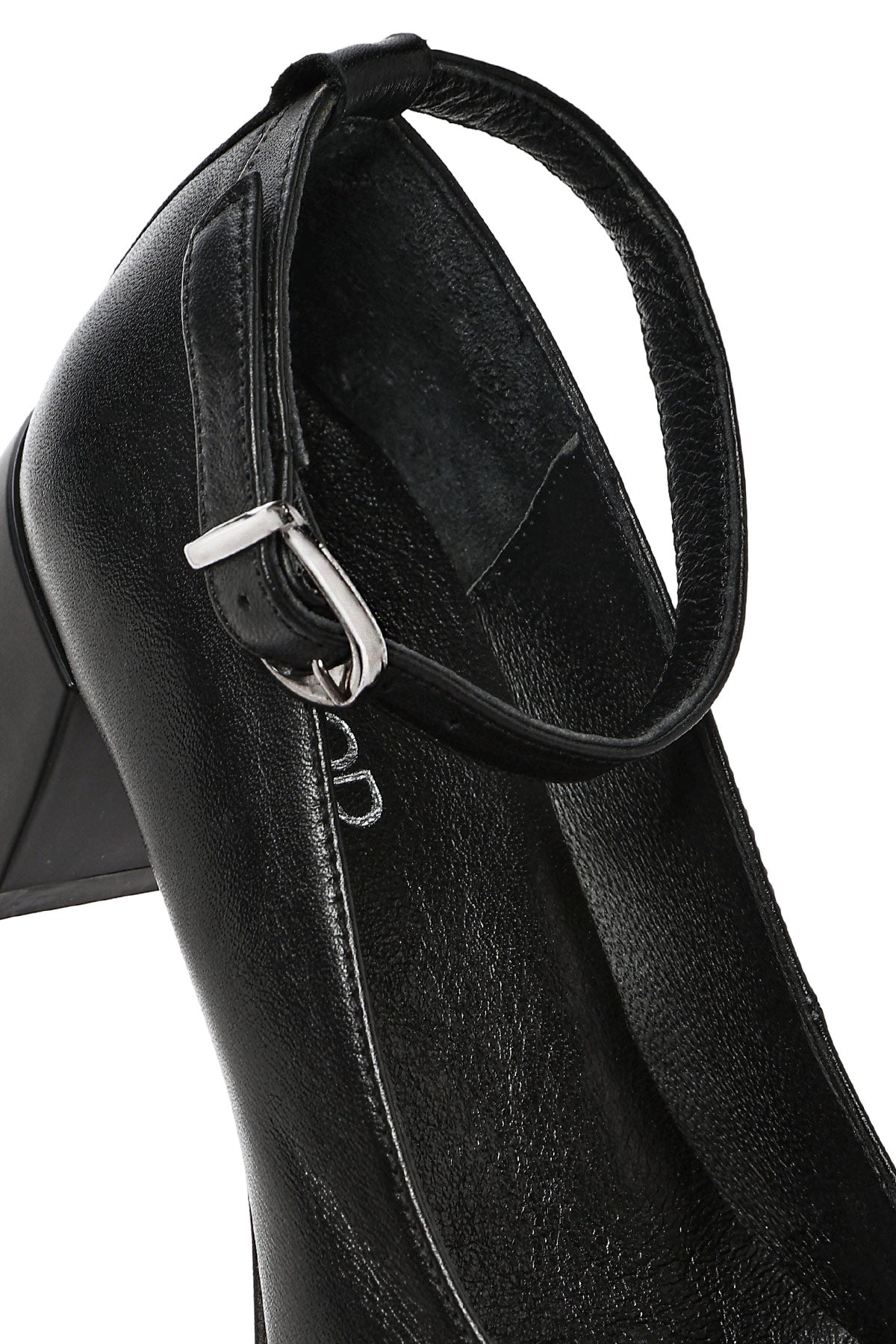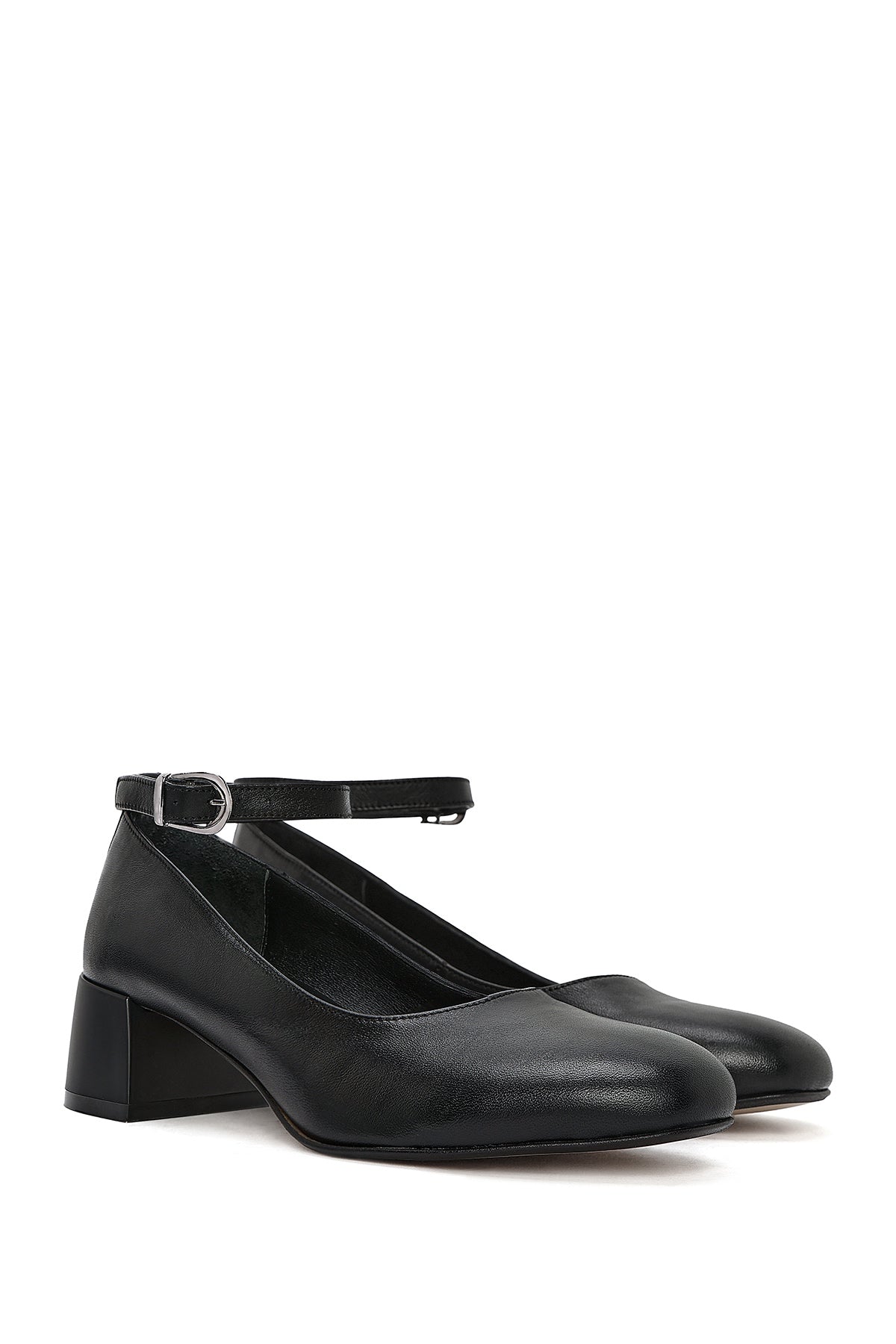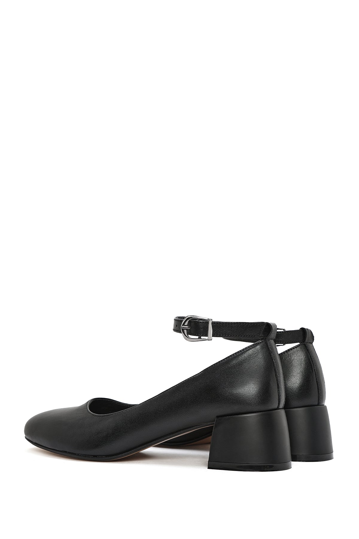 Kadın Siyah Bilekten Tokalı Kalın Kısa Topuklu Deri Ayakkabı