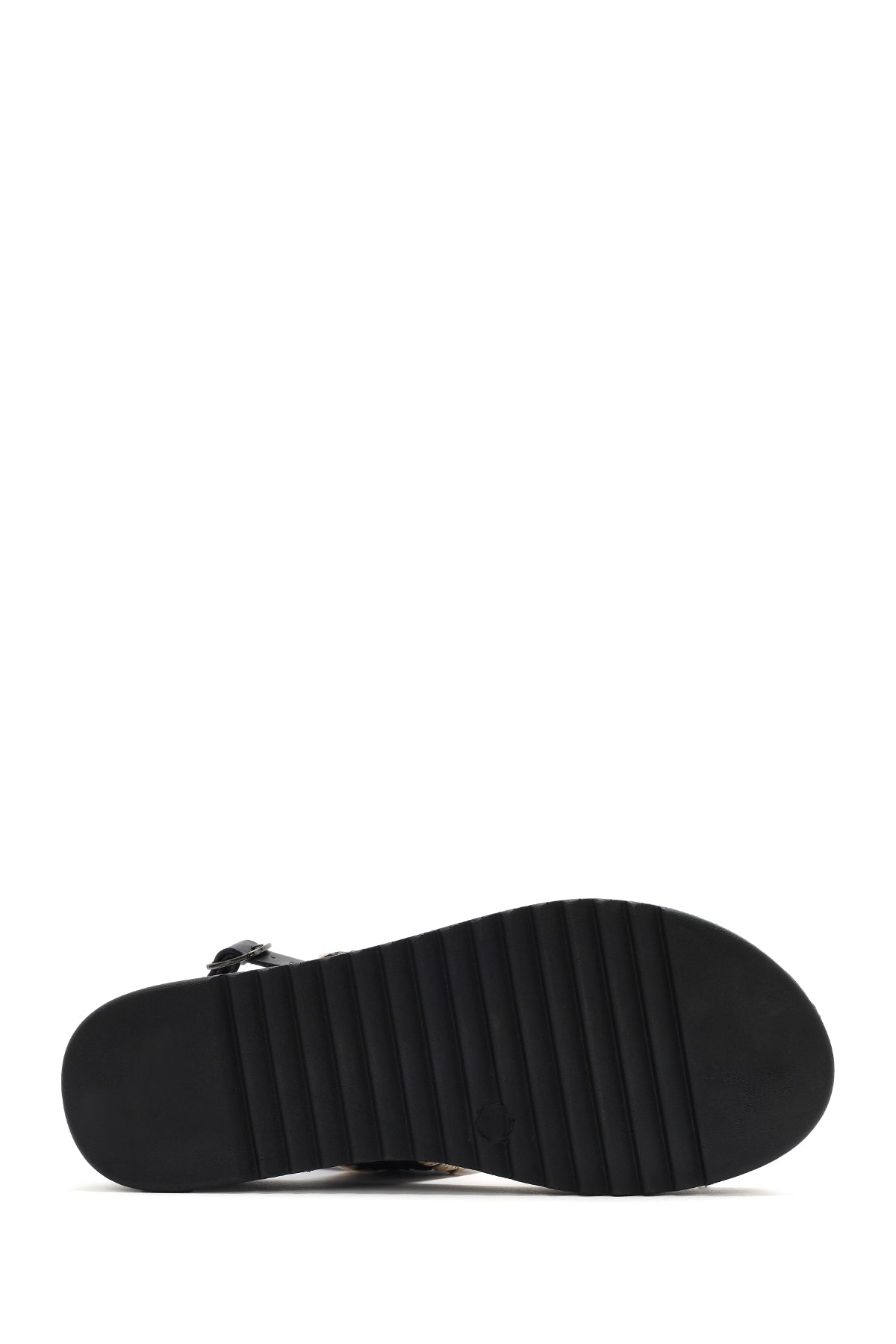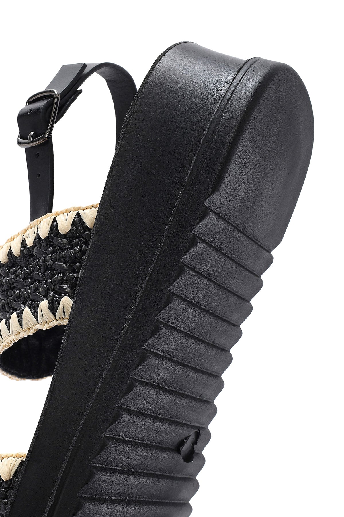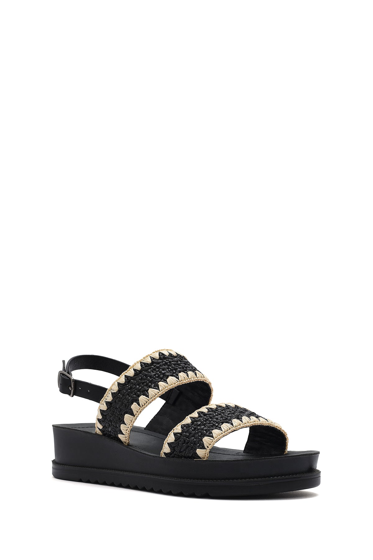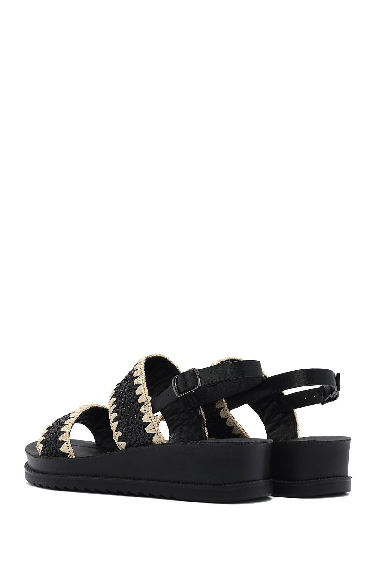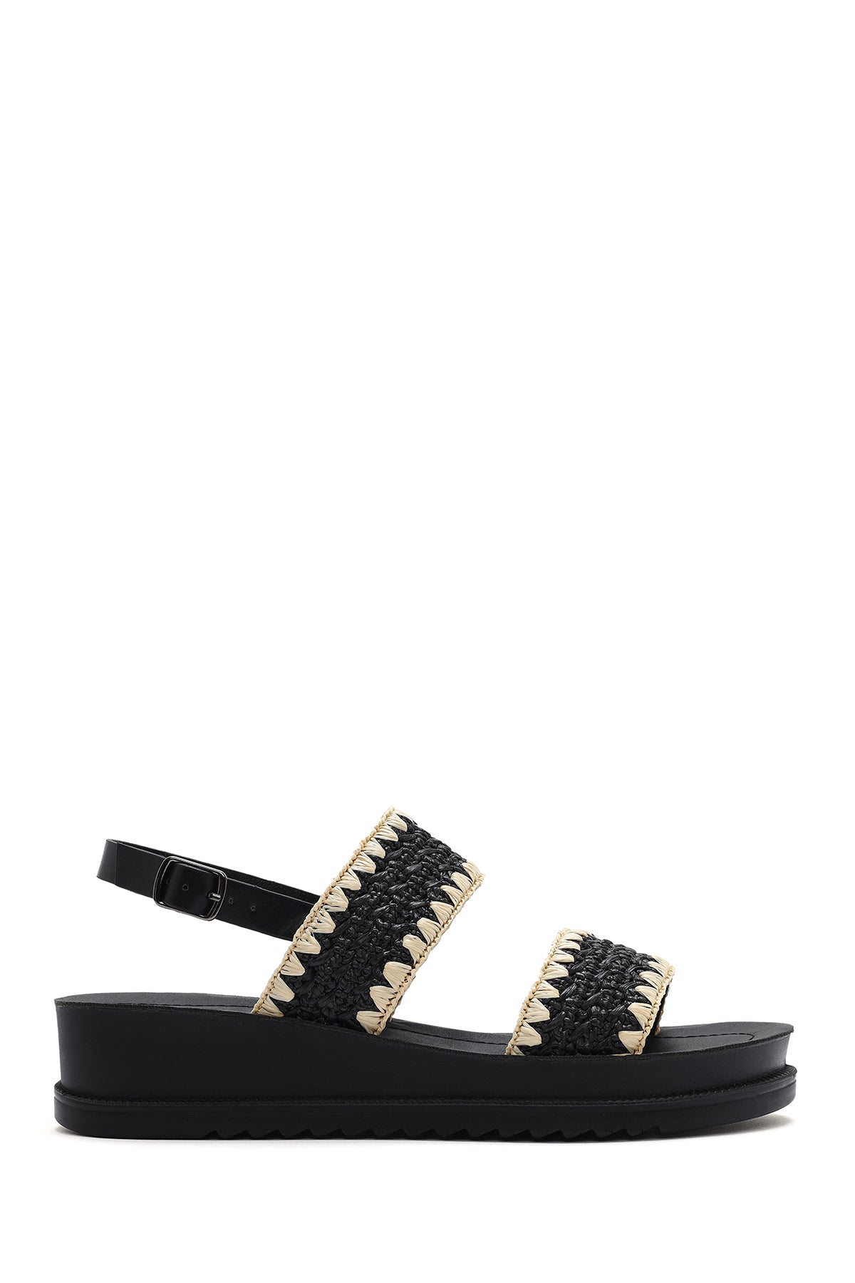 Kadın Siyah Bilekten Tokalı Kalın Tabanlı Hasır Sandalet