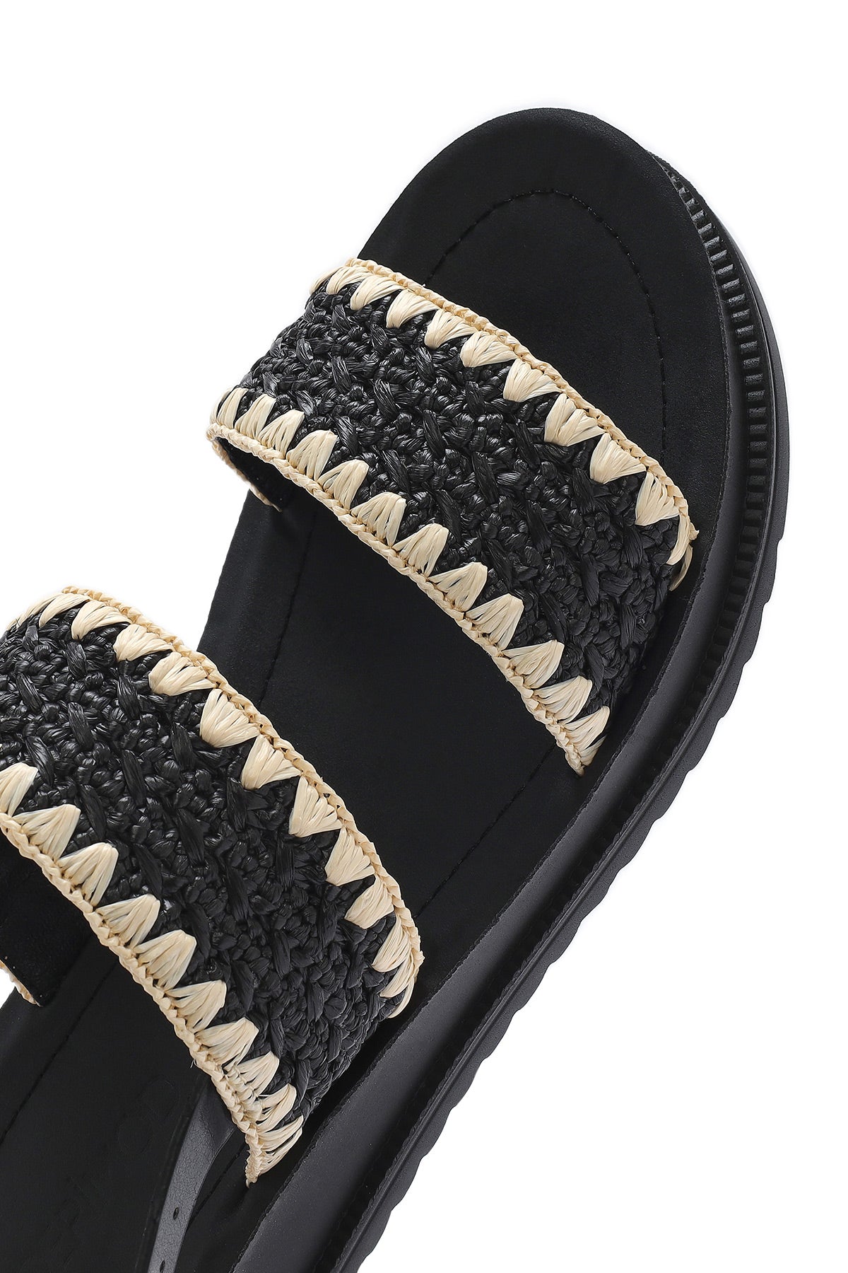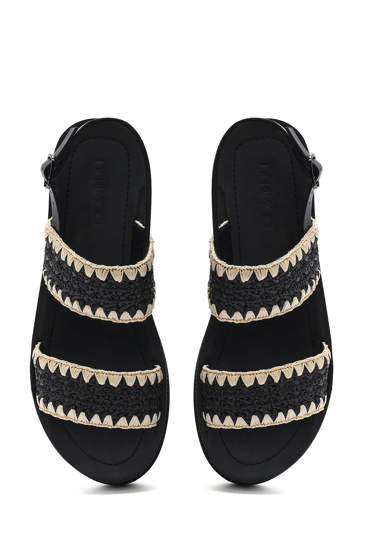 صندل زنانه مشکی بنددار کفی ضخیم حصیری دری مد